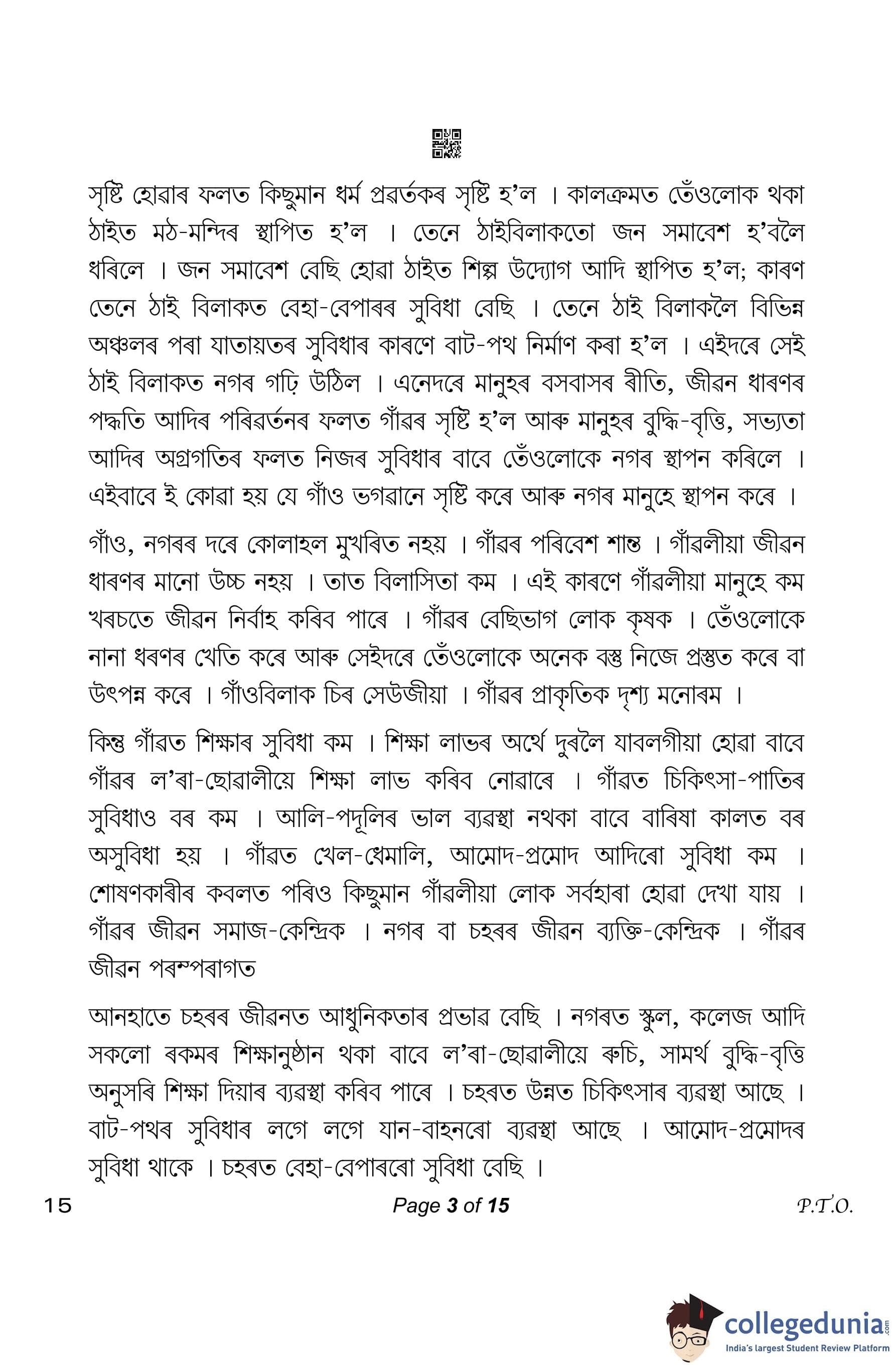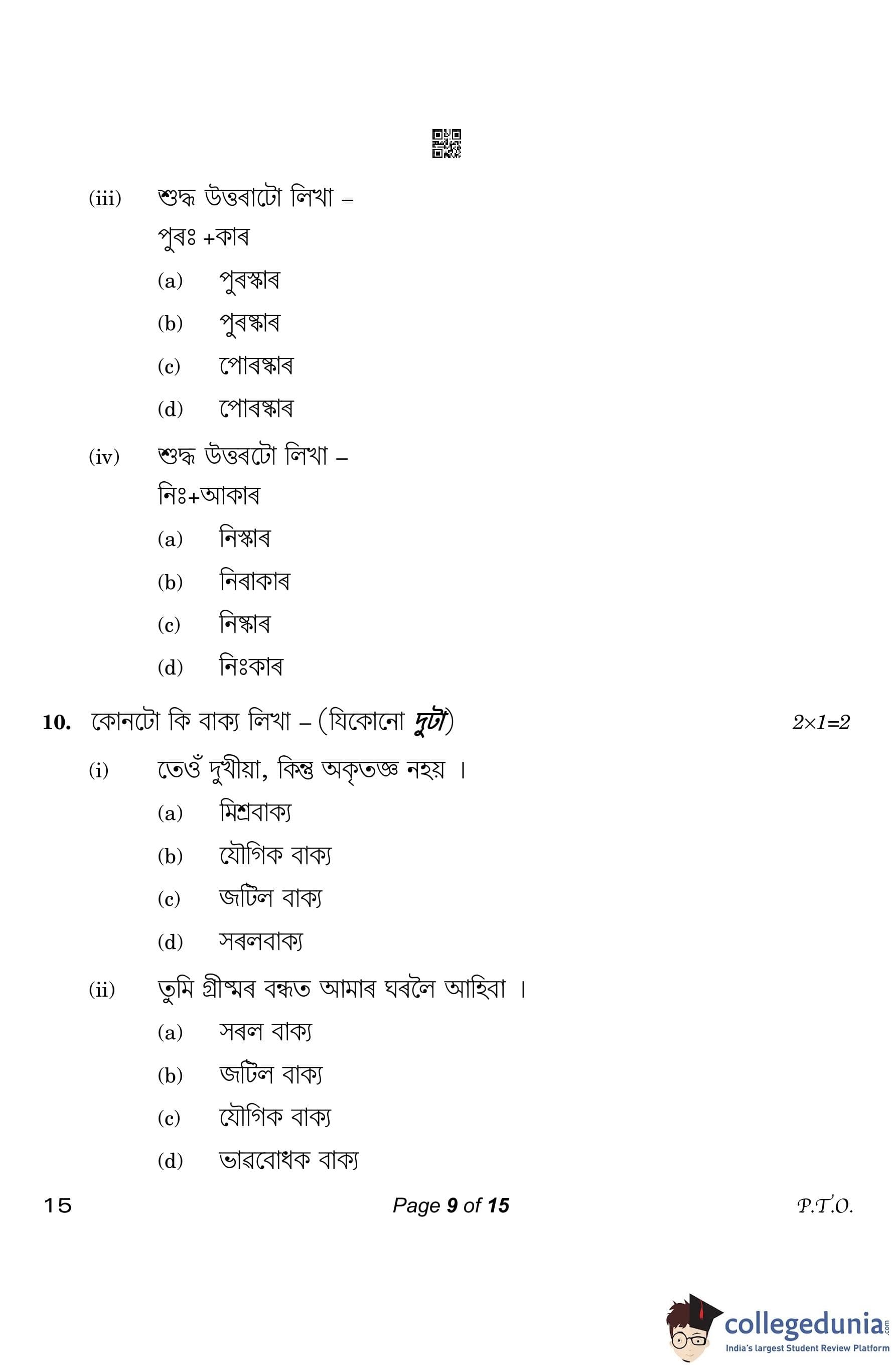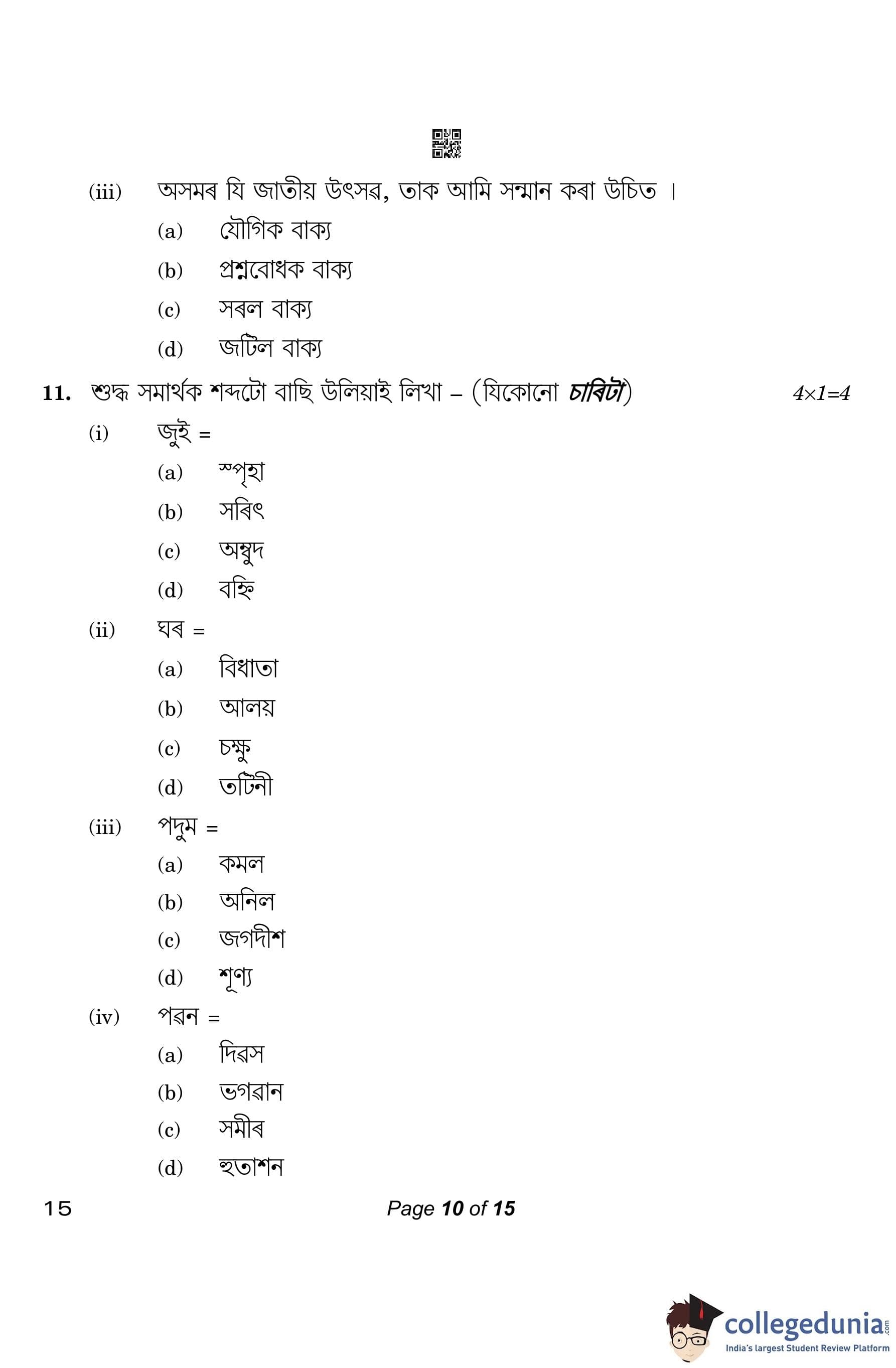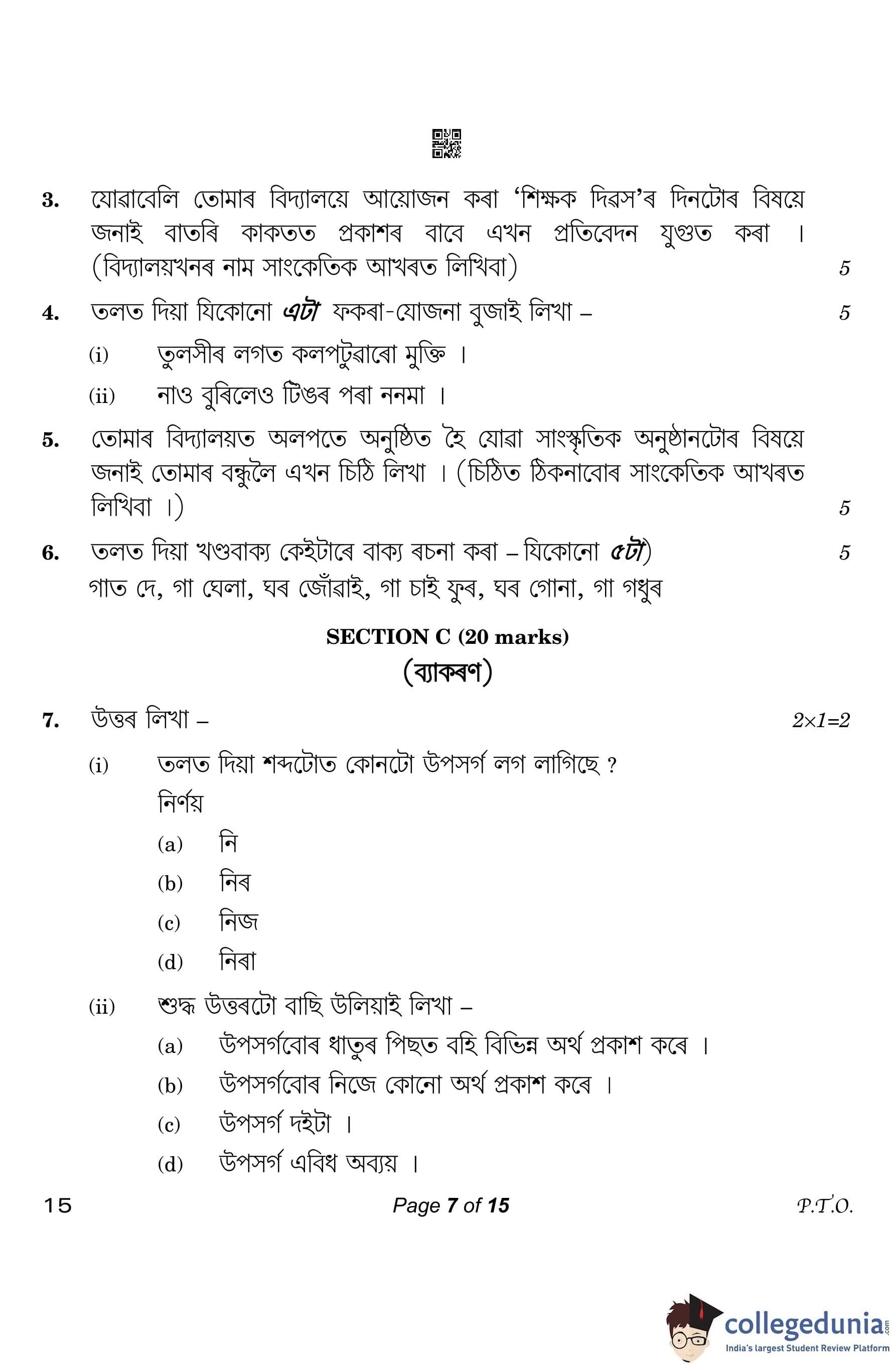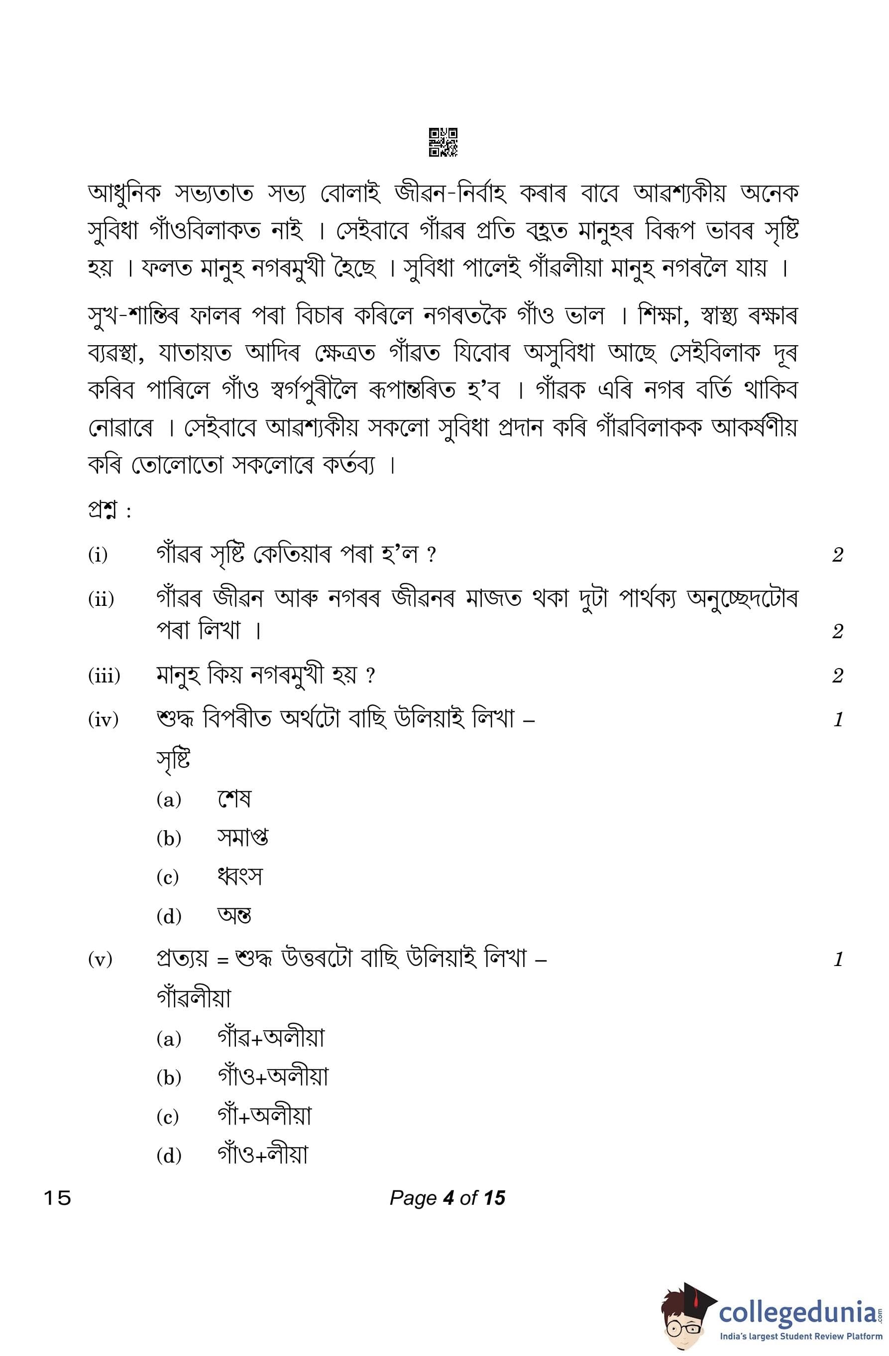 CBSE Class 10 Assamese Question Paper 2023 (Set 4- 15) with Answer Key pdf is available for download here. The exam was conducted by Central Board of Secondary Education on March 1, 2023. The question paper comprised a total of 20 questions divided among 4 sections.