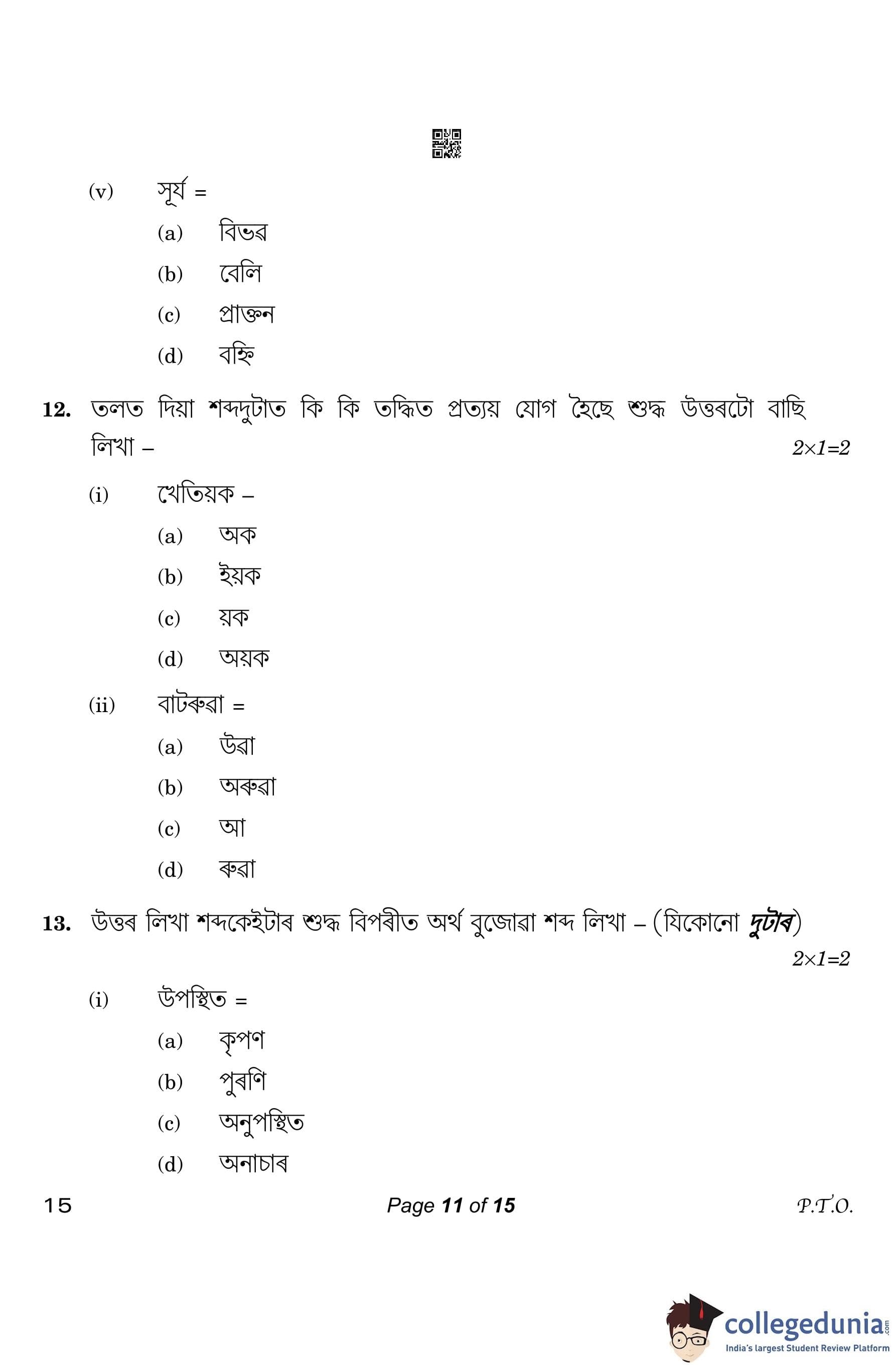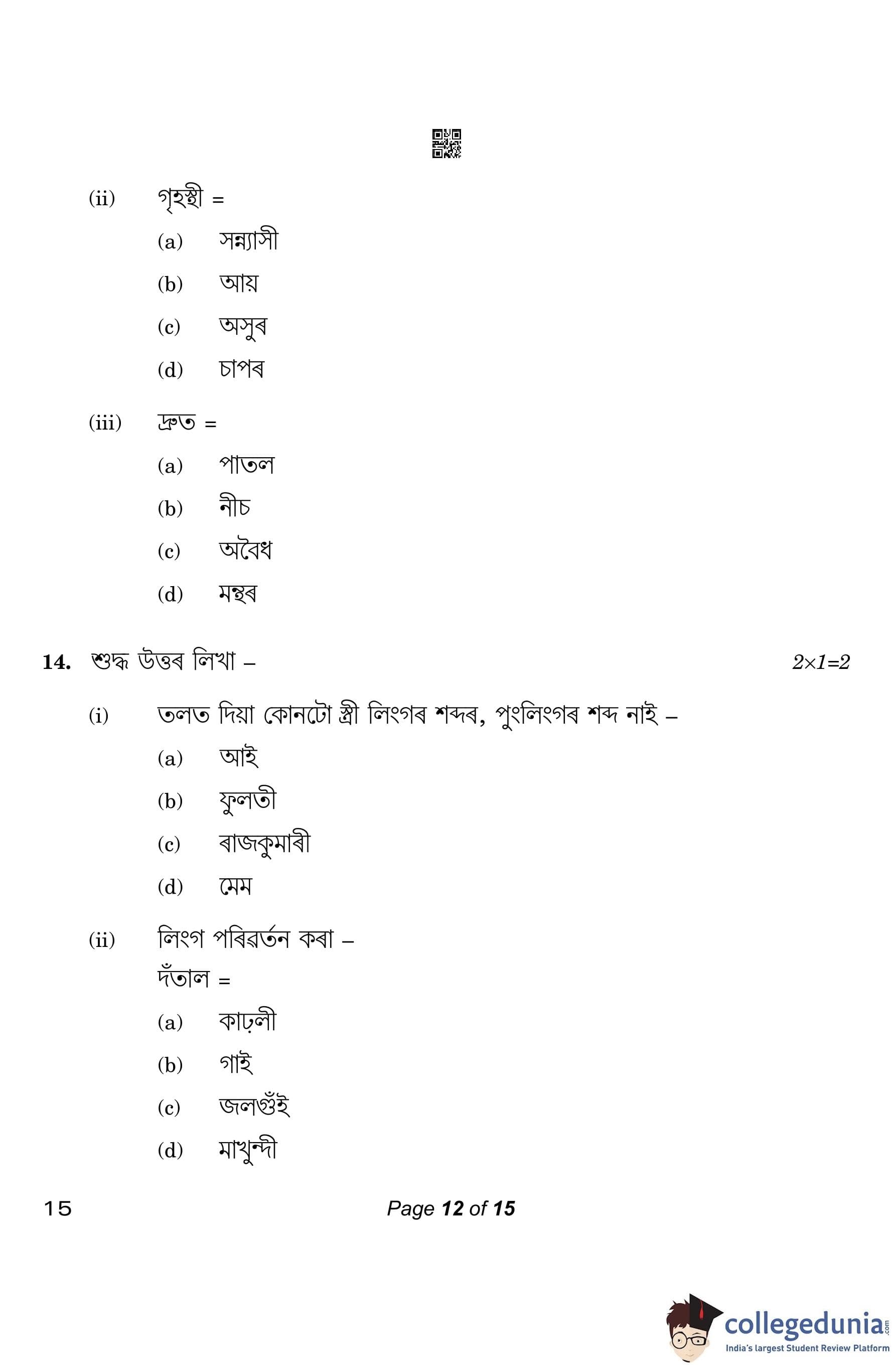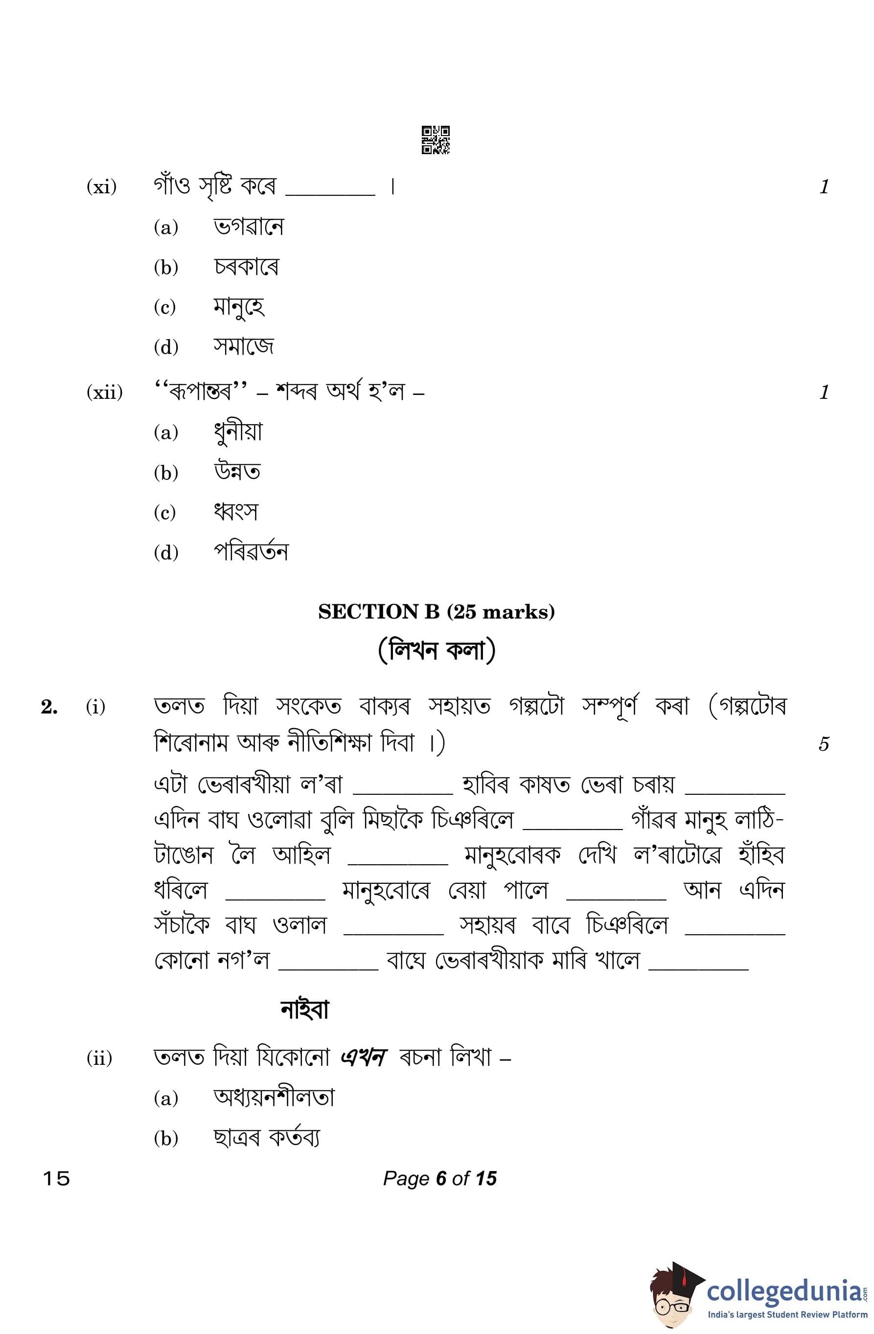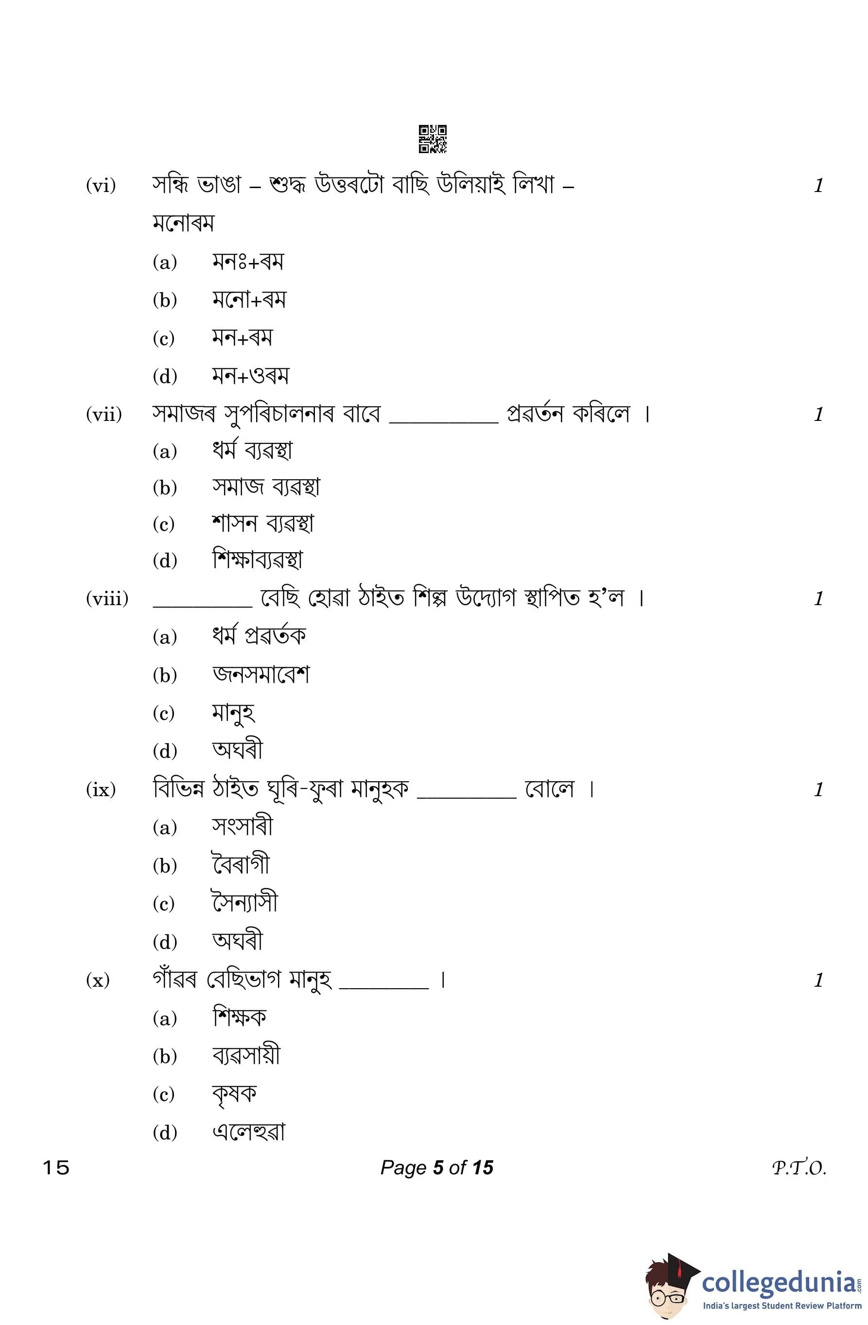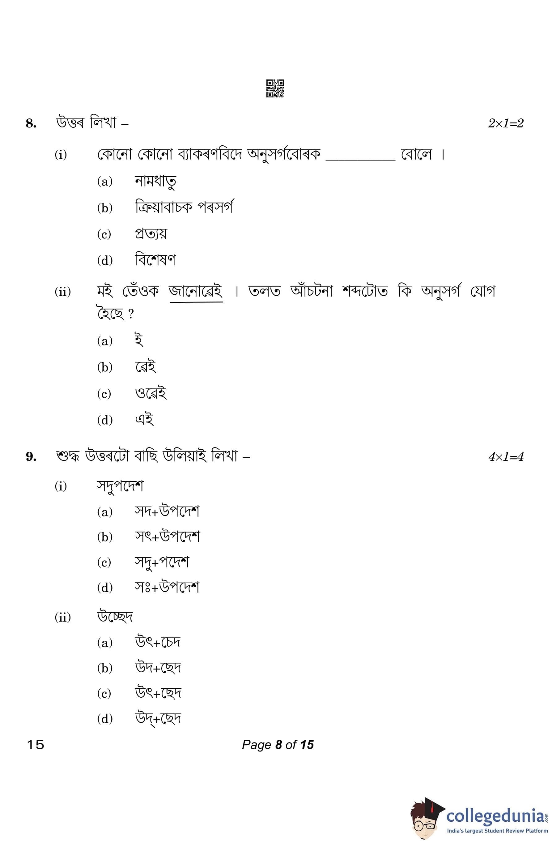 CBSE Class 10 Assamese Question Paper 2023 (Set 4- 15) with Answer Key pdf is available for download here. The exam was conducted by Central Board of Secondary Education on March 1, 2023. The question paper comprised a total of 20 questions divided among 4 sections.