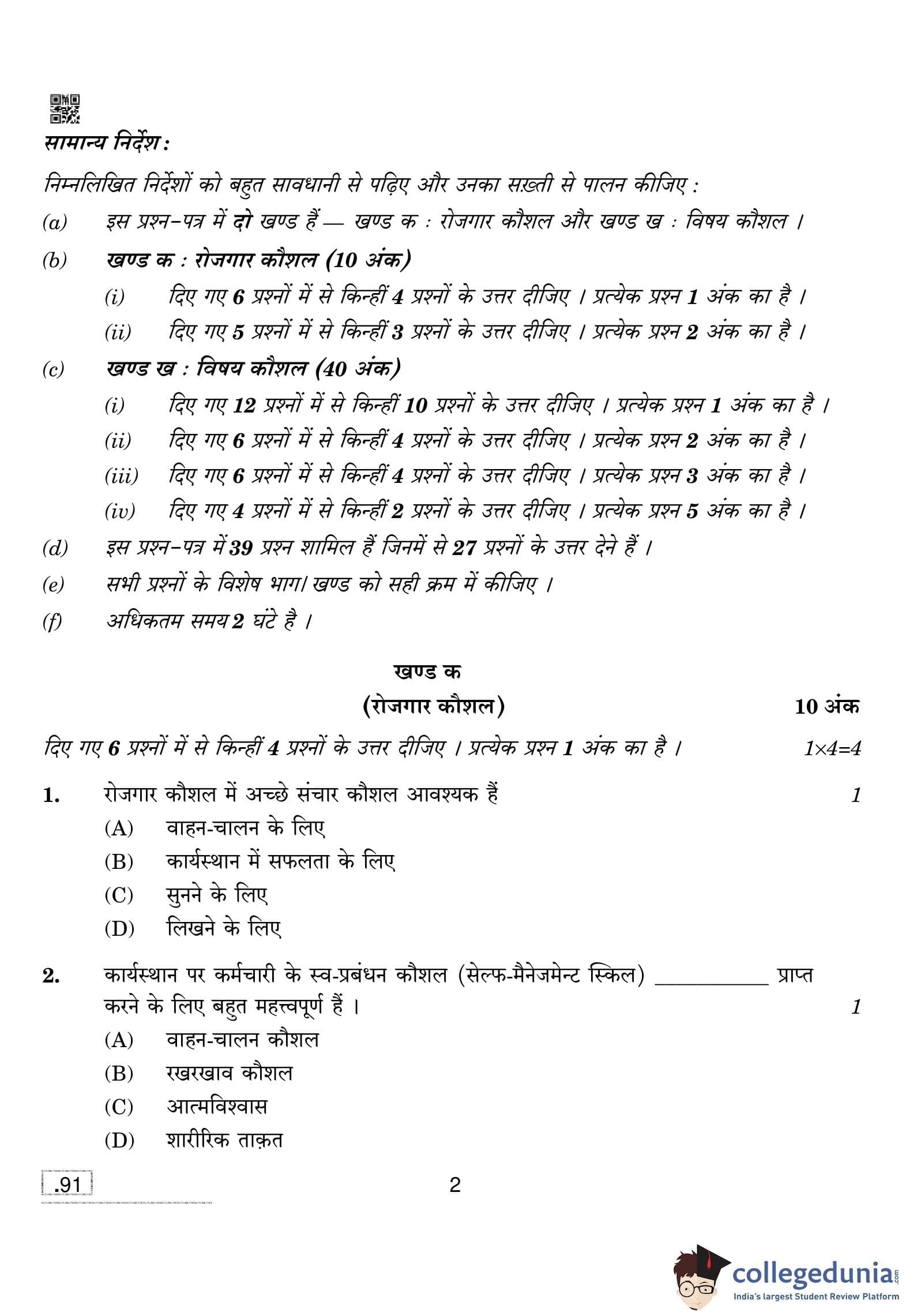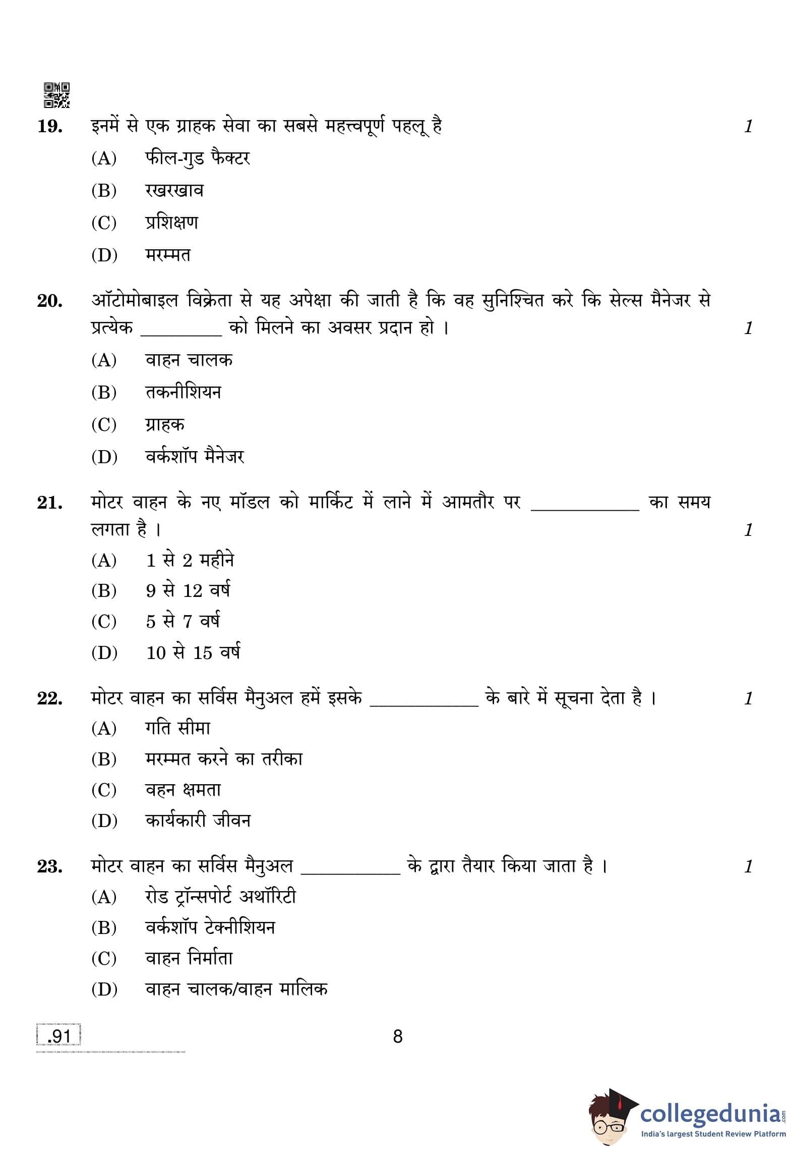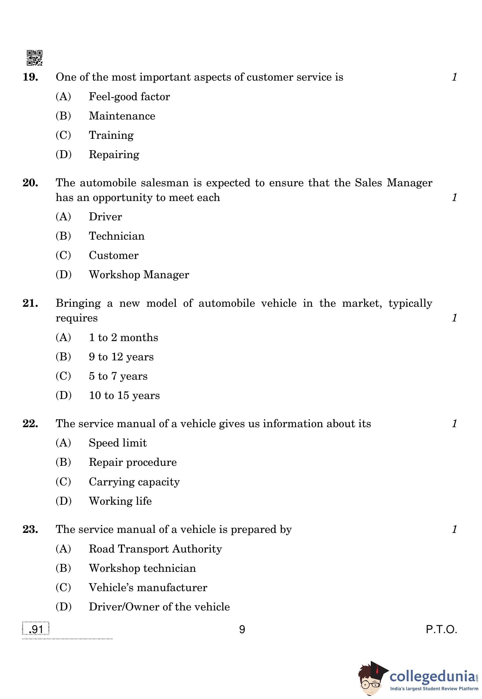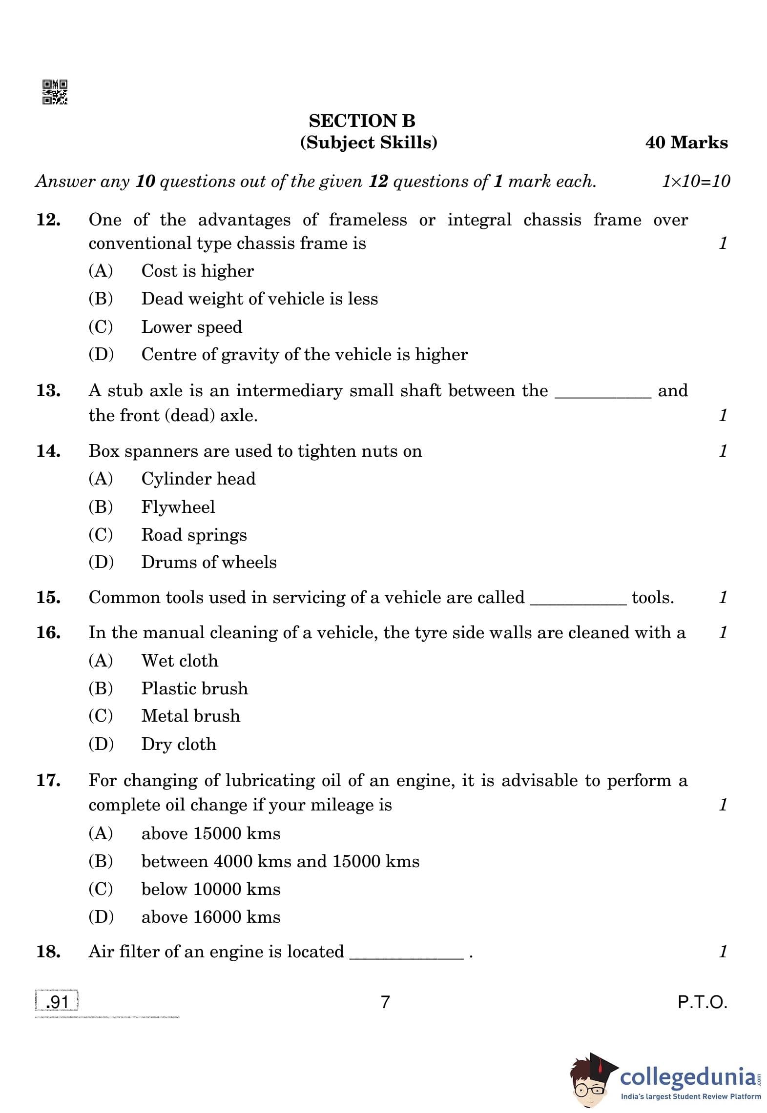CBSE Class 10 Automotive Question Paper 2020 with Answer Key (February 15)