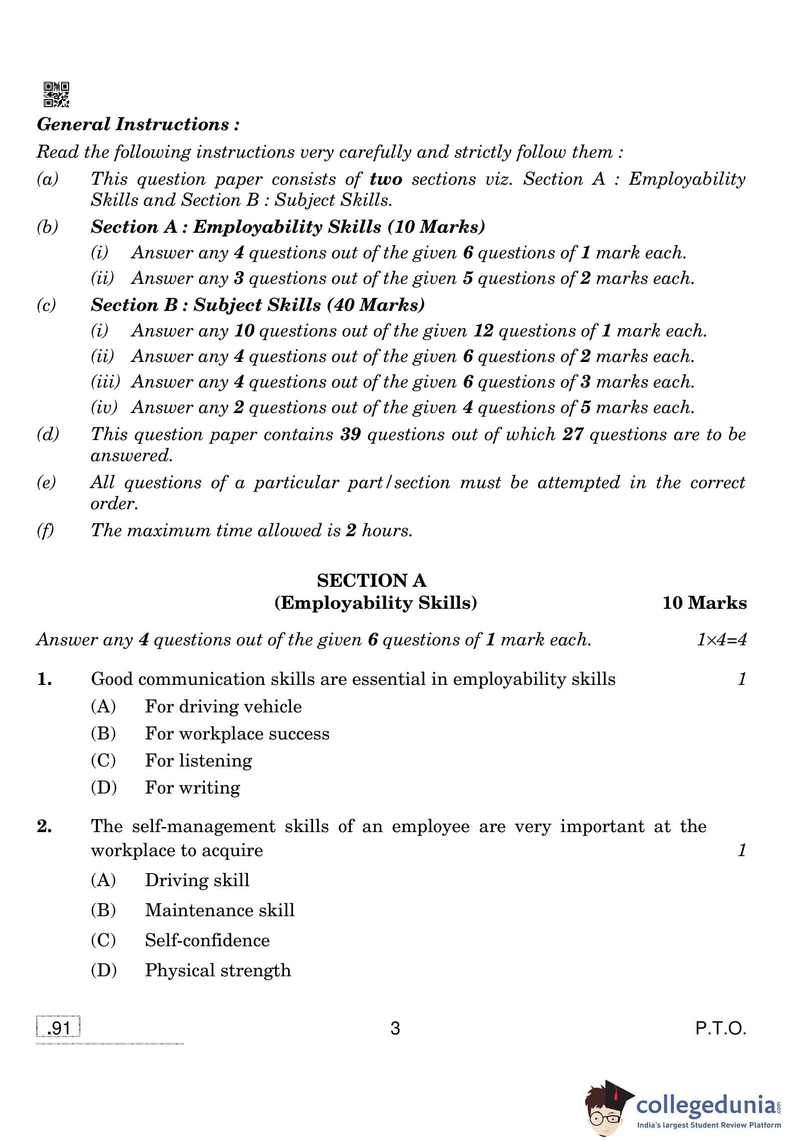 CBSE Class 10 Automotive Question Paper 2020 with Answer Key Set 4 is available for download. The exam was conducted by the Central Board of Secondary Education on February 15, 2020 in the Morning Session 10:30 AM to 12:30 PM. The medium of paper was English and Hindi. The question paper comprised a total of 39 questions divided among 2 sections.