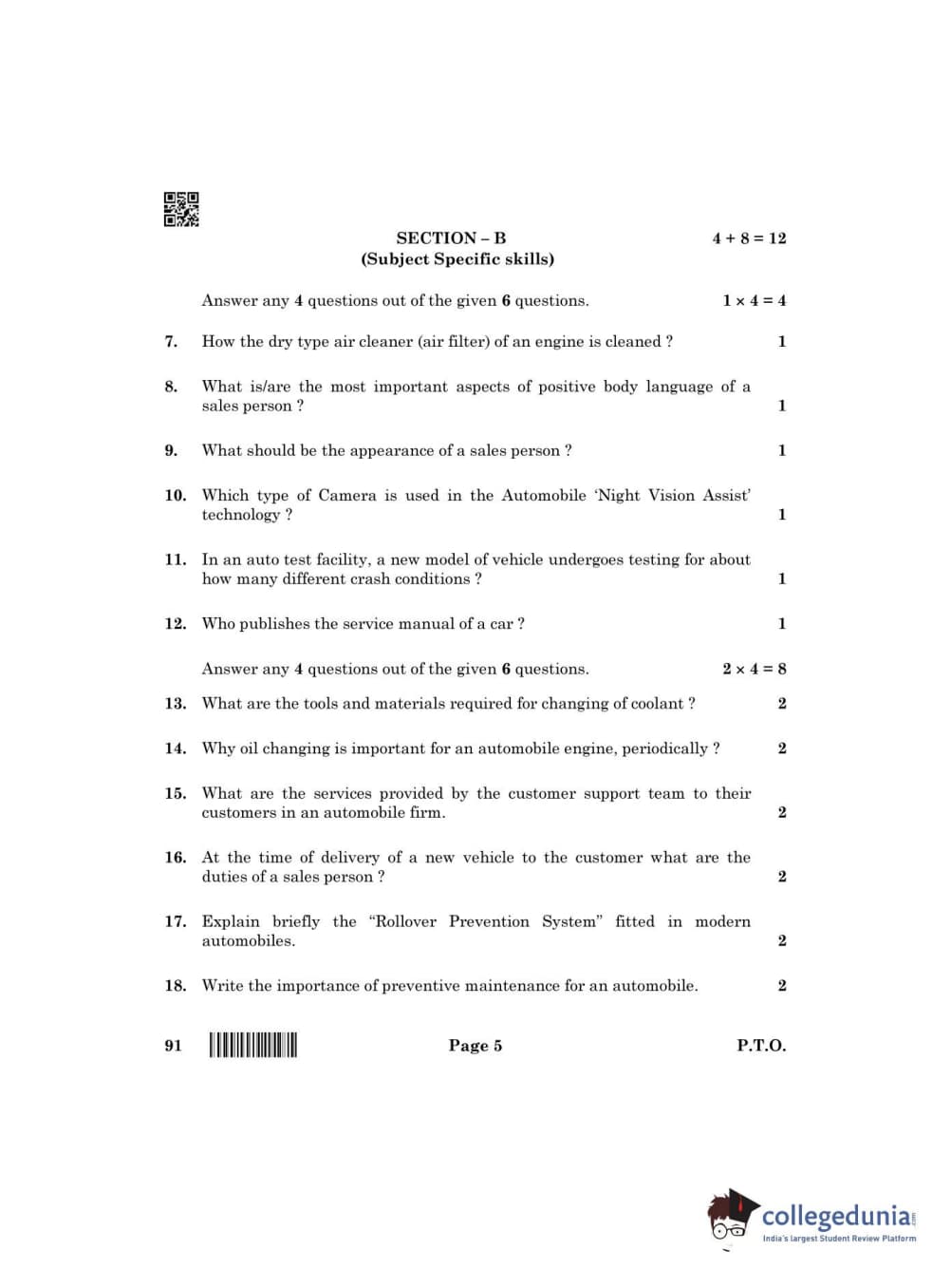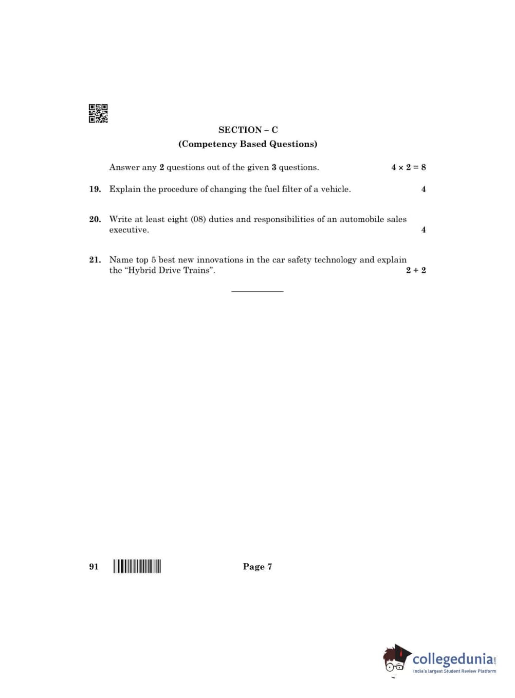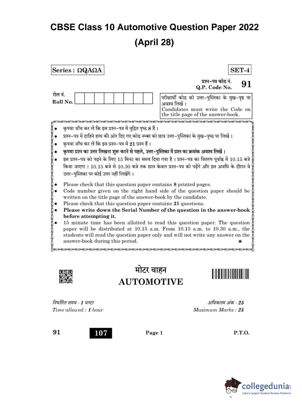 CBSE Class 10 Automotive Question Paper 2022 with Answer Key (April 28)