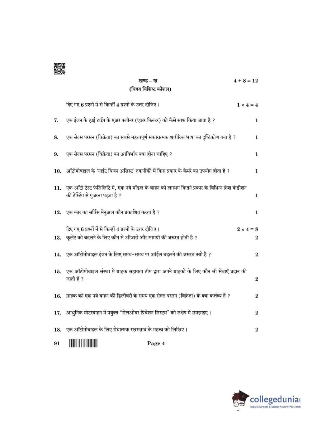 CBSE Class 10 Automotive Question Paper 2022 with Answer Key Set 4 is available for download. The exam was conducted by the Central Board of Secondary Education on April 28, 2022 in the Morning Session 10:30 AM to 11:30 AM. The medium of paper was English And Hindi. The question paper comprised a total of 21 questions divided among 3 sections.