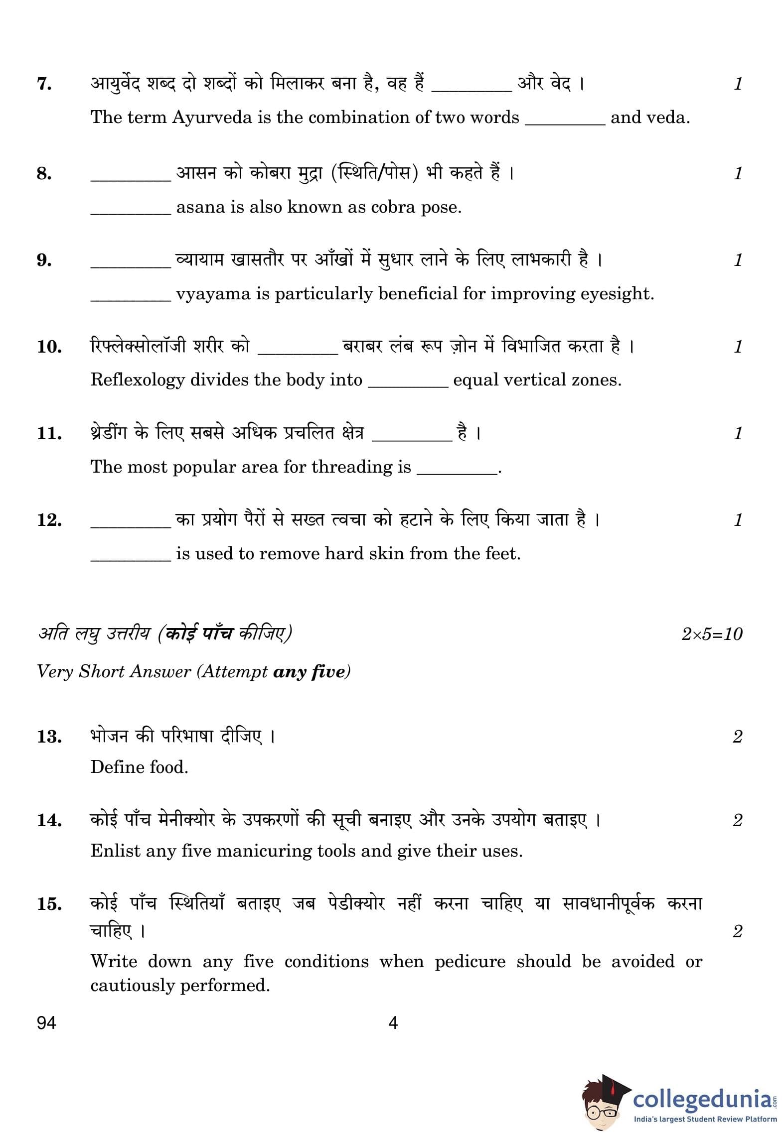 CBSE Class 10 Beauty And Wellness Question Paper 2019 with Answer Key (February 27)
