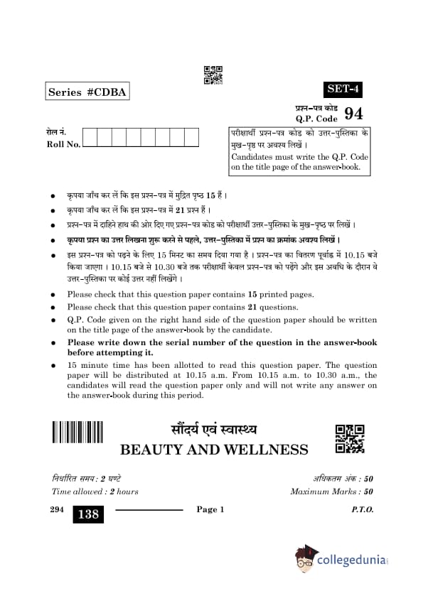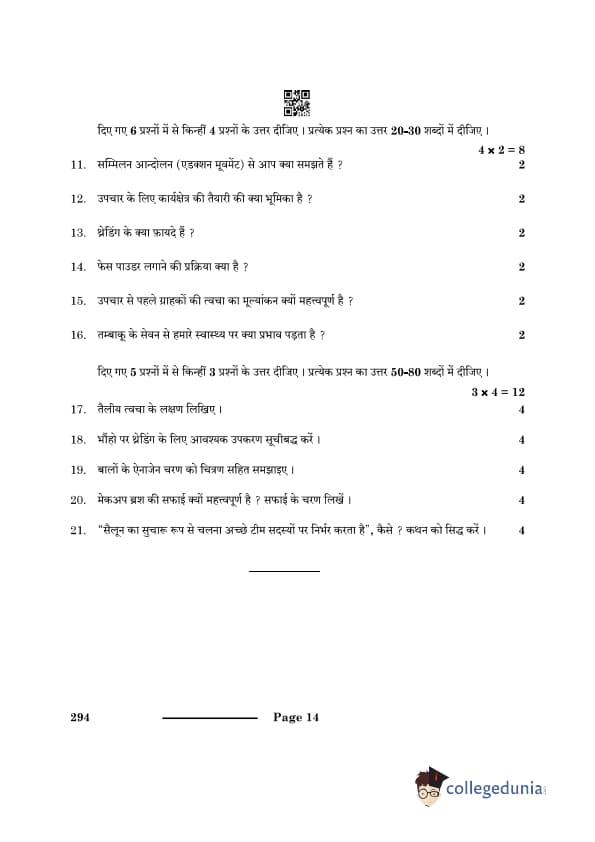 The CBSE Class 10 Beauty and Wellness was conducted on 16th Feb 2024 from 10:30 AM to 12:30 PM. The question paper includes a variety of questions covering different topics in Beauty and Wellness. The official CBSE previous year question papers are the best and most effective resources to prepare for the upcoming CBSE Class 10 exams. Practicing these papers helps students understand the exam pattern, manage time efficiently, and identify important topics.
