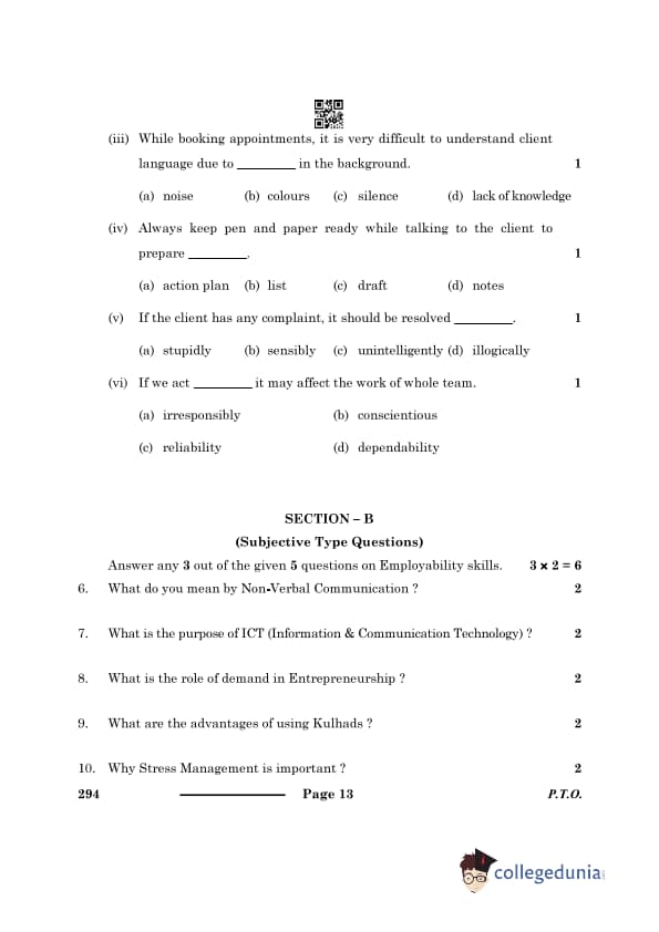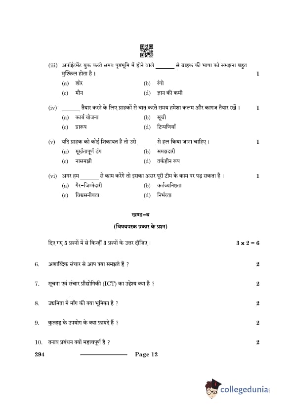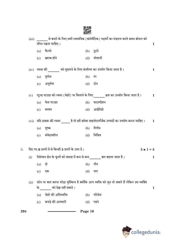 | CBSE Class 10 Beauty and Wellness Question Paper 2024 with Answer Key | Check Solutions |