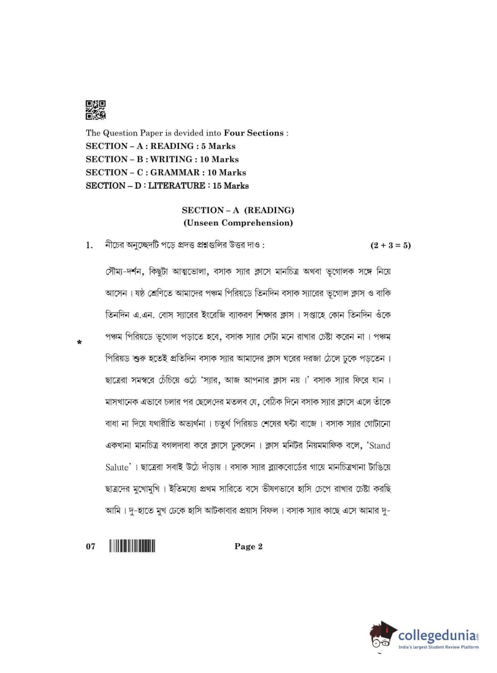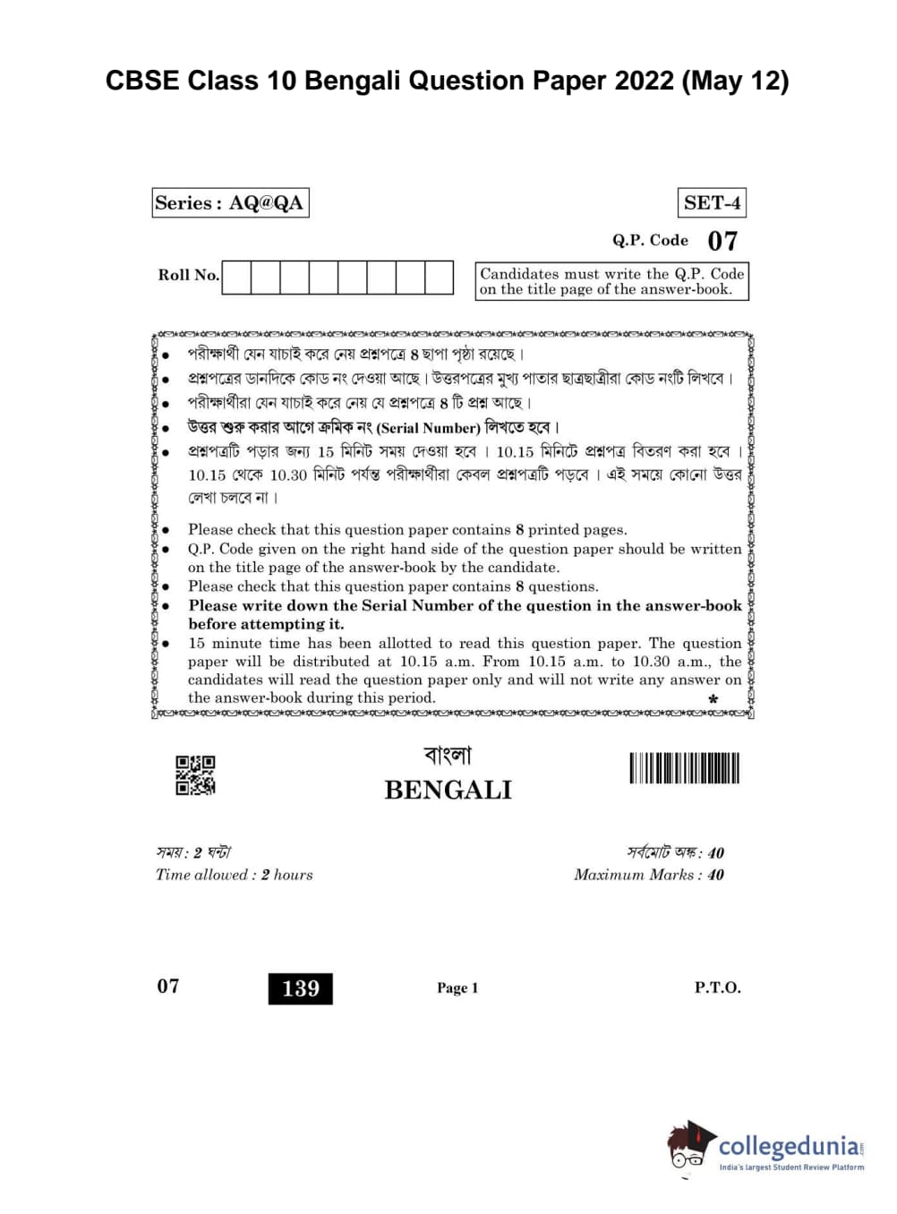 CBSE Class 10 Bengali Question Paper 2022 with Answer Key (May 12)