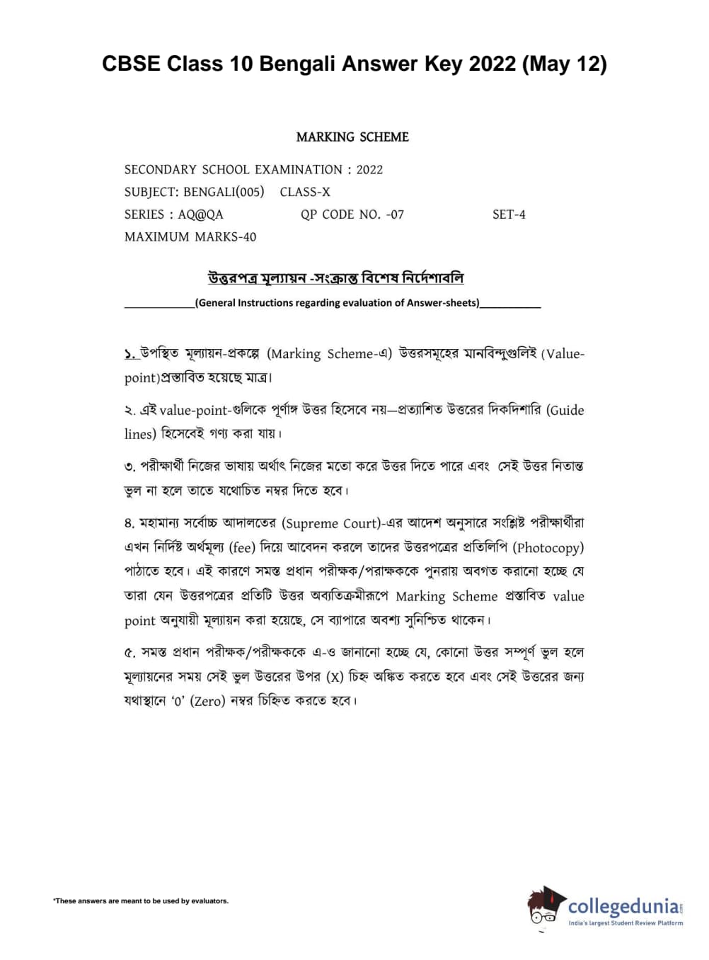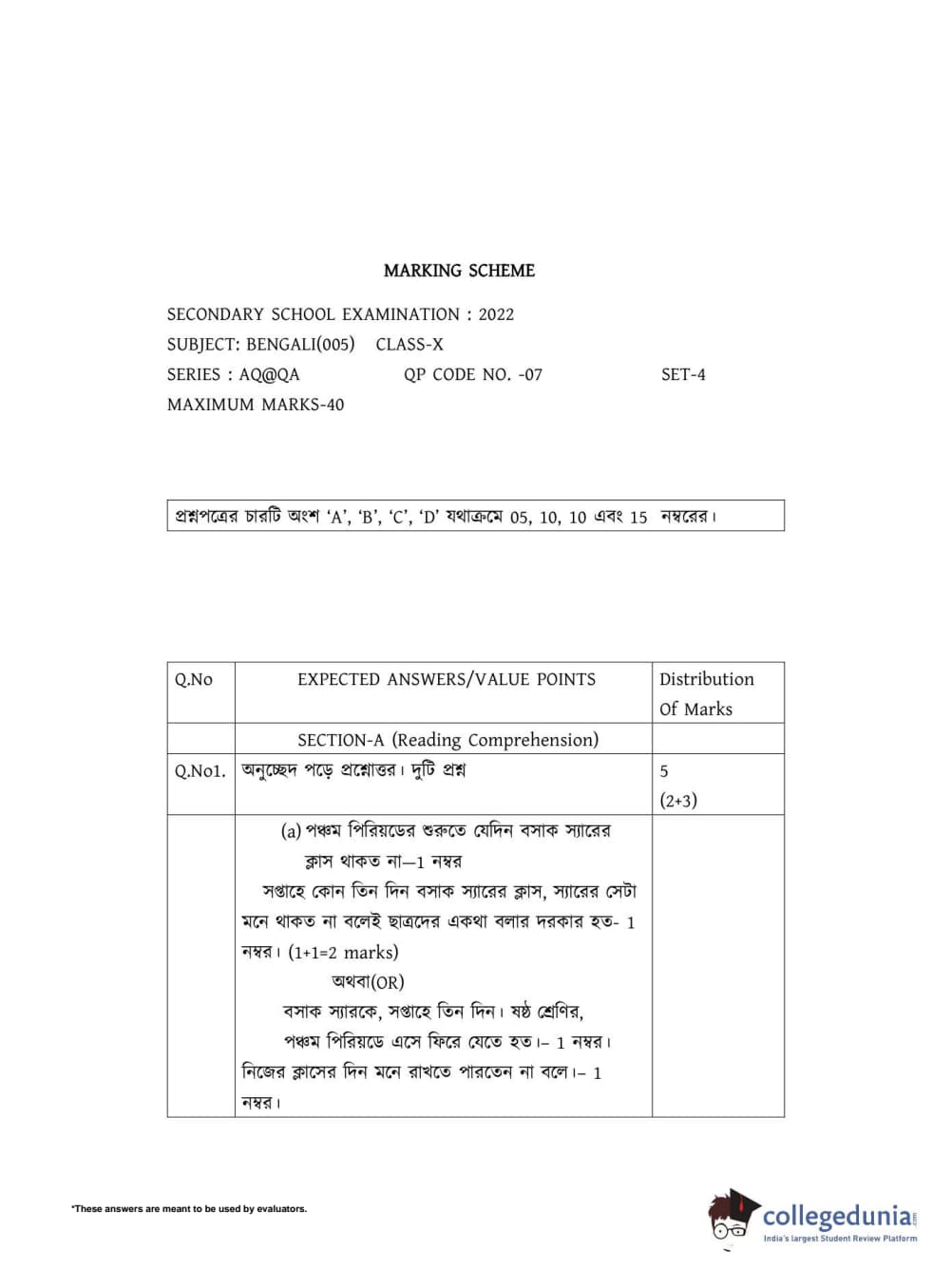 | CBSE Class 10 Bengali Question Paper 2022 PDF | CBSE Class 10 Bengali Answer Key 2022 PDF | Detailed Solutions |