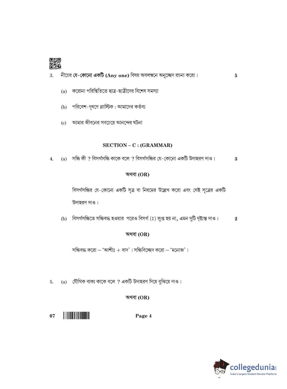 CBSE Class 10 Bengali Question Paper 2022 with Answer Key Set 4 is available for download. The exam was conducted by the Central Board of Secondary Education on May 12, 2022 in the Morning Session 10:30 AM to 12:30 PM. The medium of paper was Bengali. The question paper comprised a total of 8 questions divided among 4 sections.