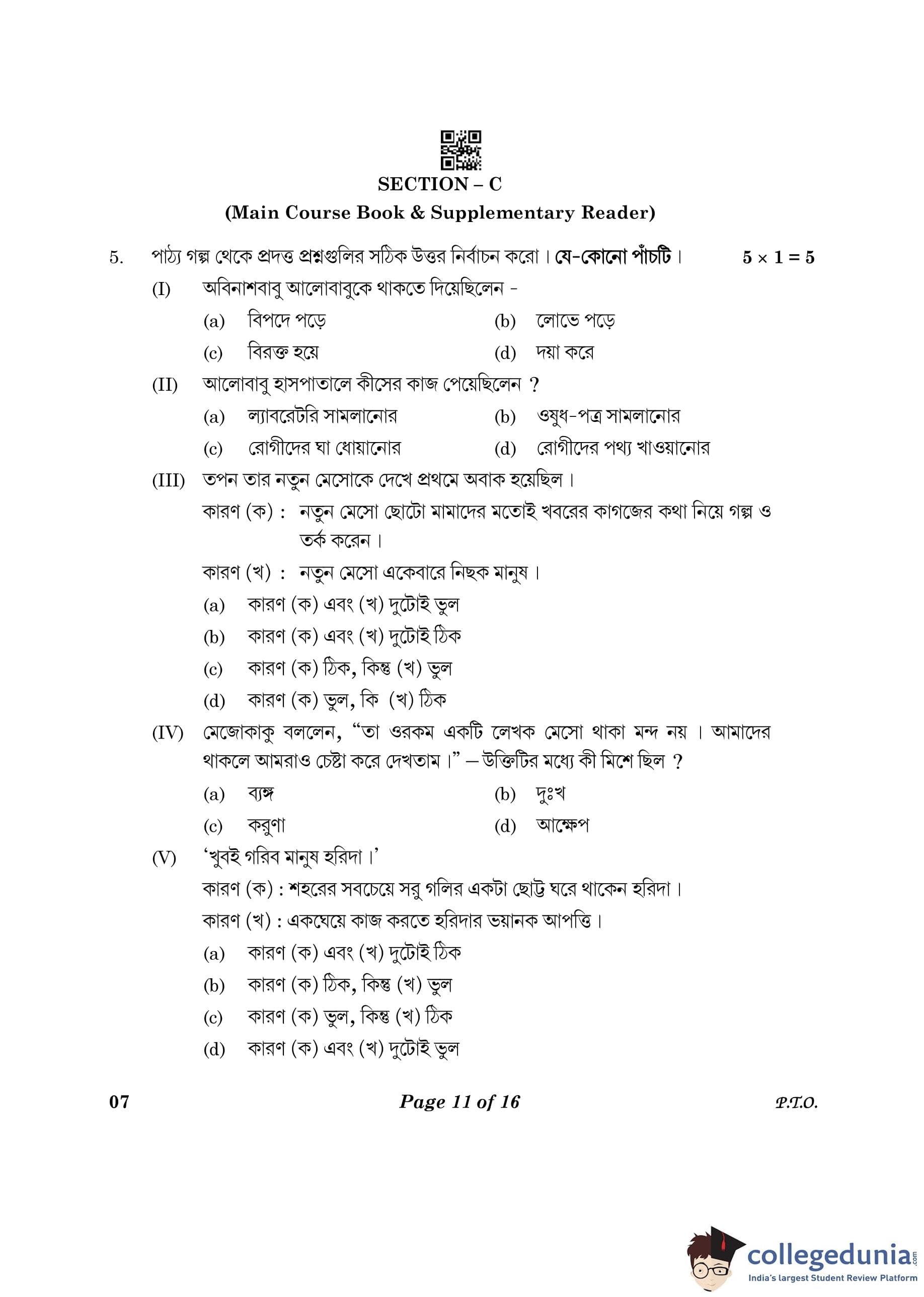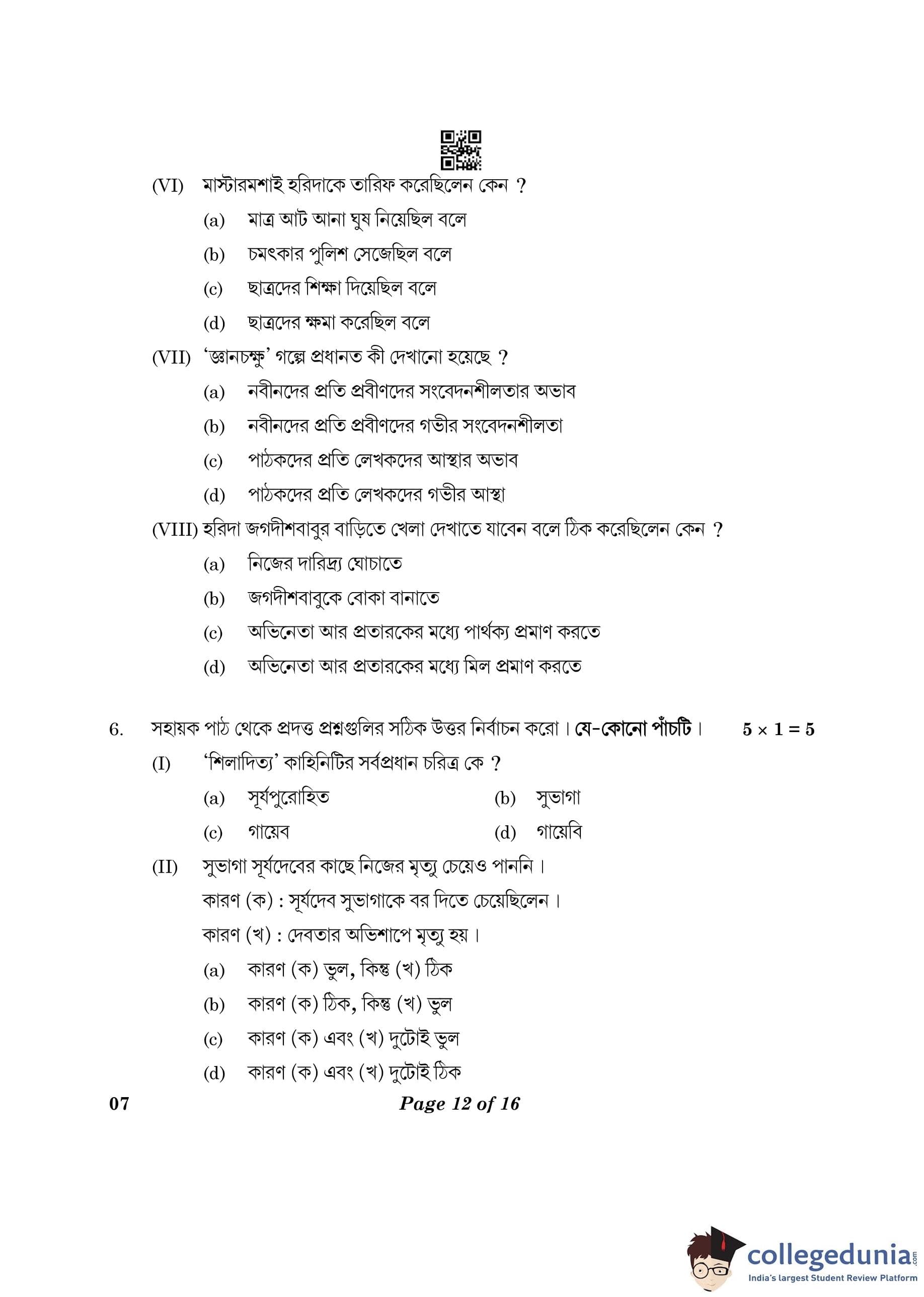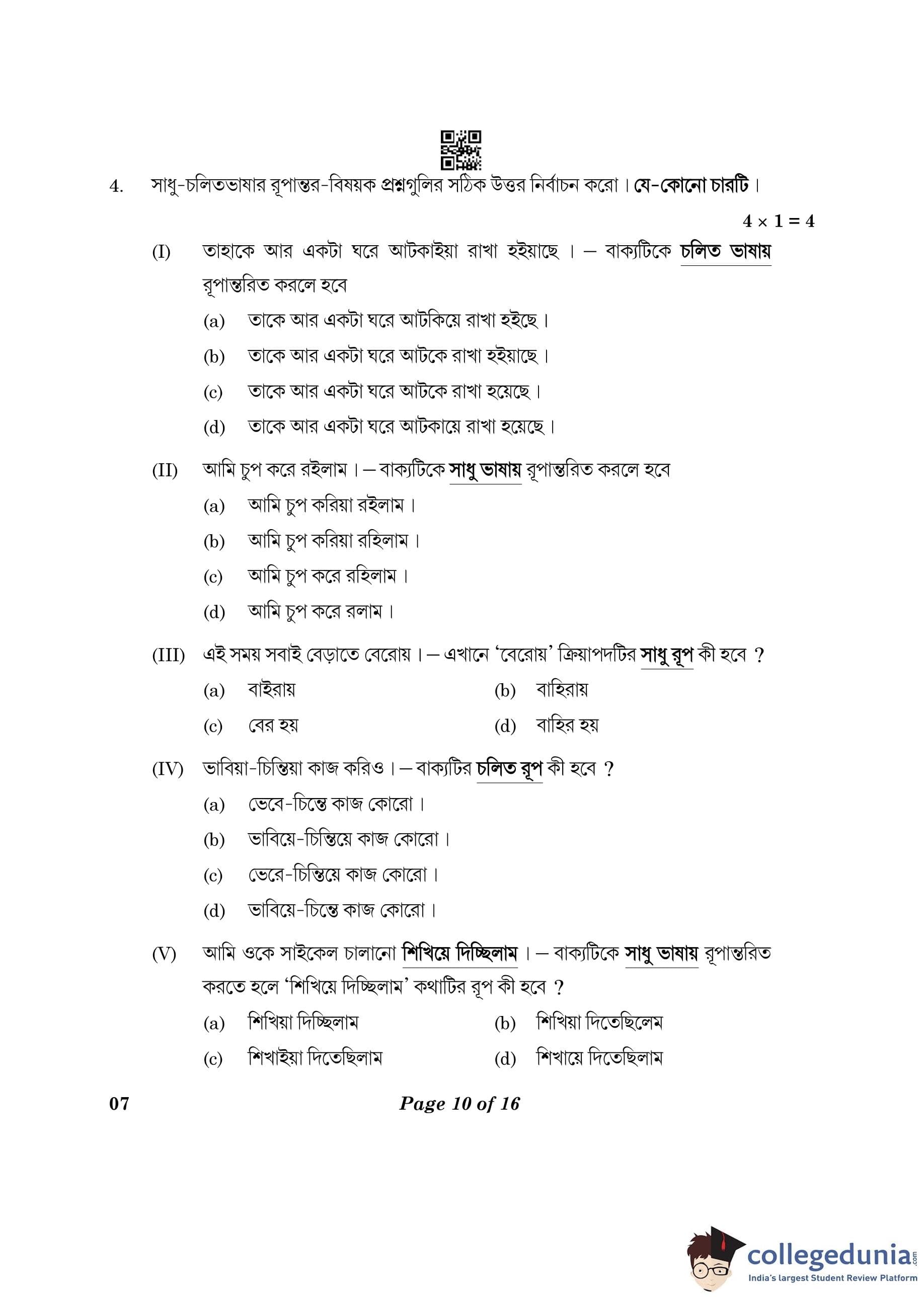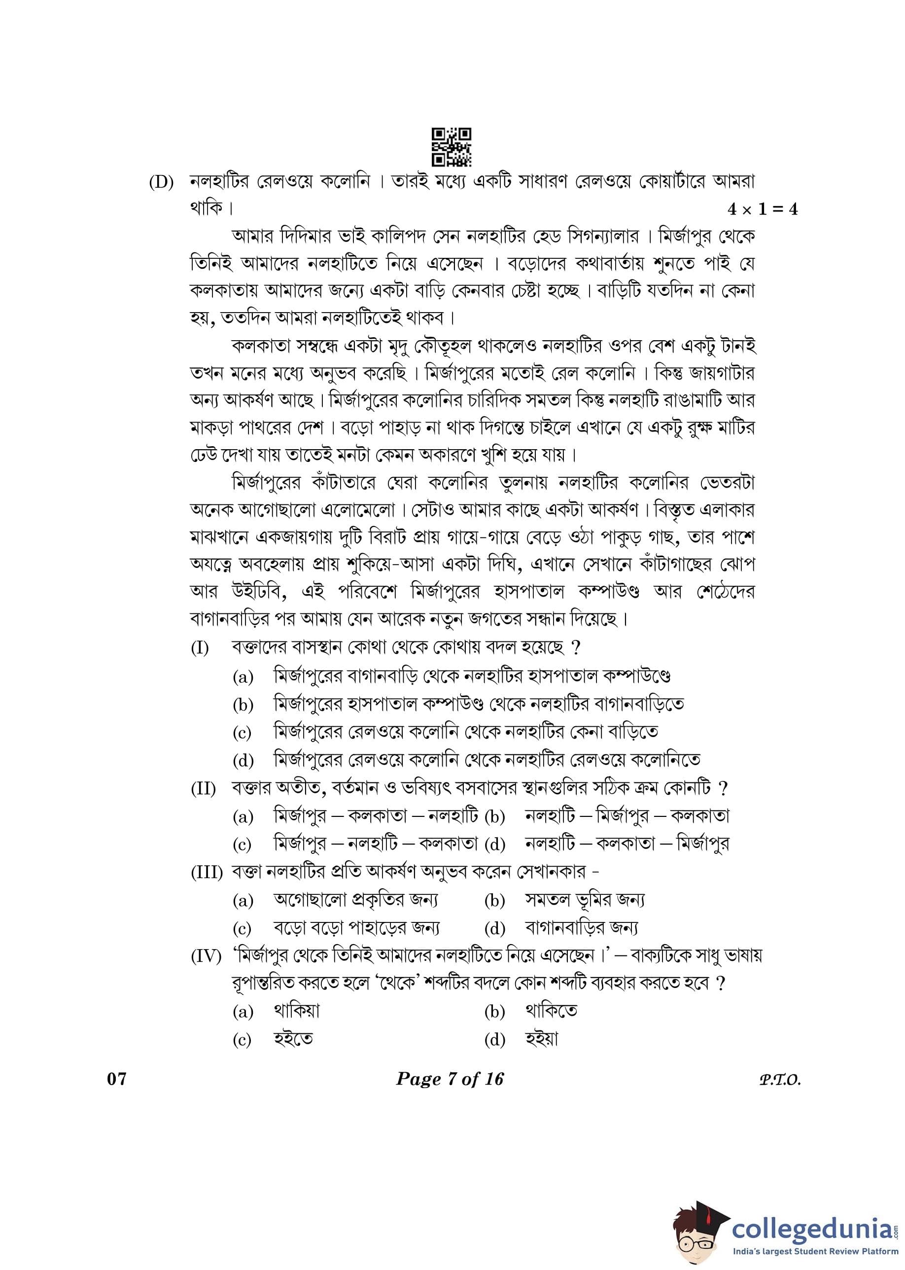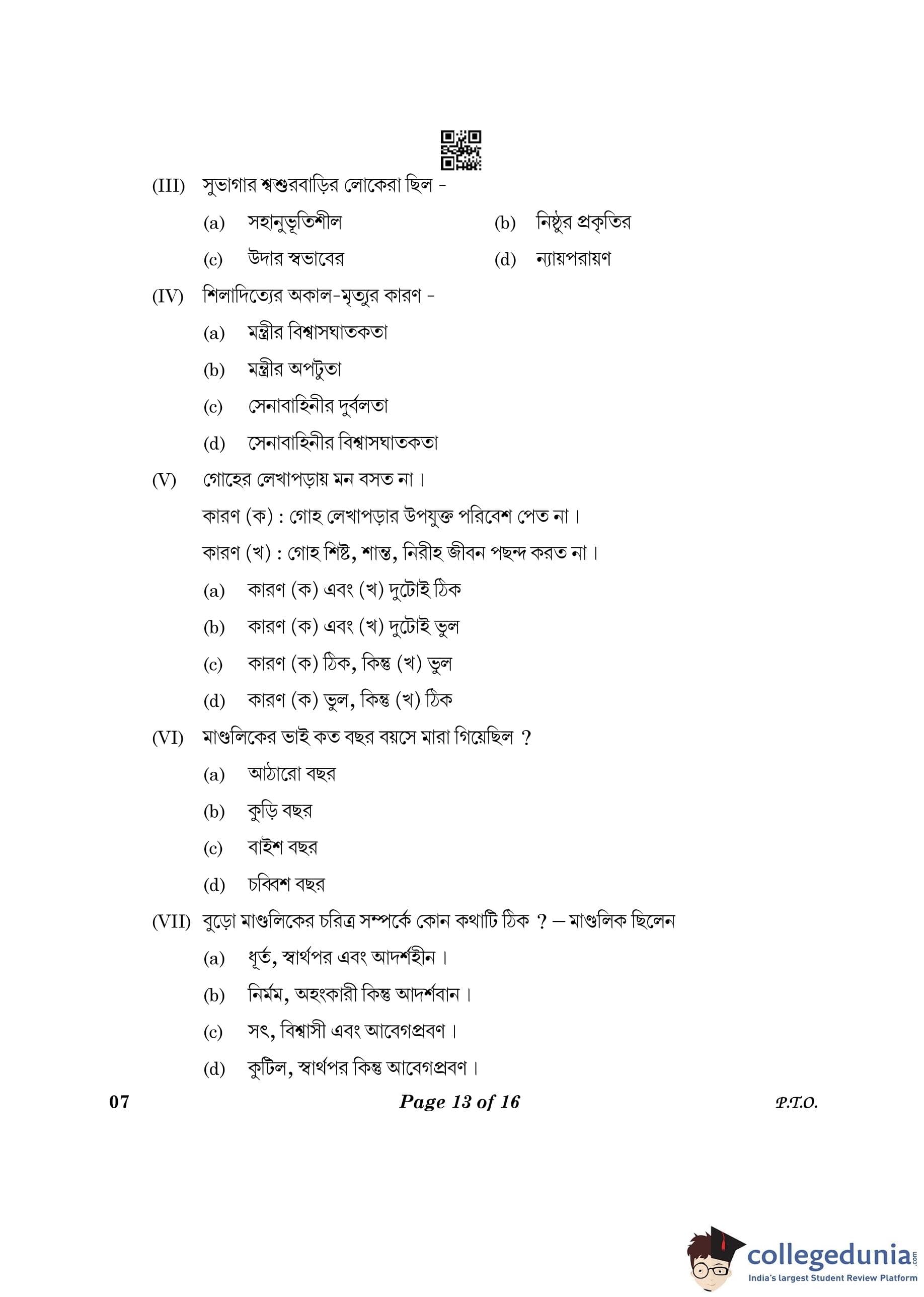 CBSE Class 10 Bengali Question Paper 2023 (Set 4- 7) with Answer Key pdf is available for download here. The exam was conducted by Central Board of Secondary Education on February 24, 2023. The question paper comprised a total of 16 questions divided among 2 sections.
