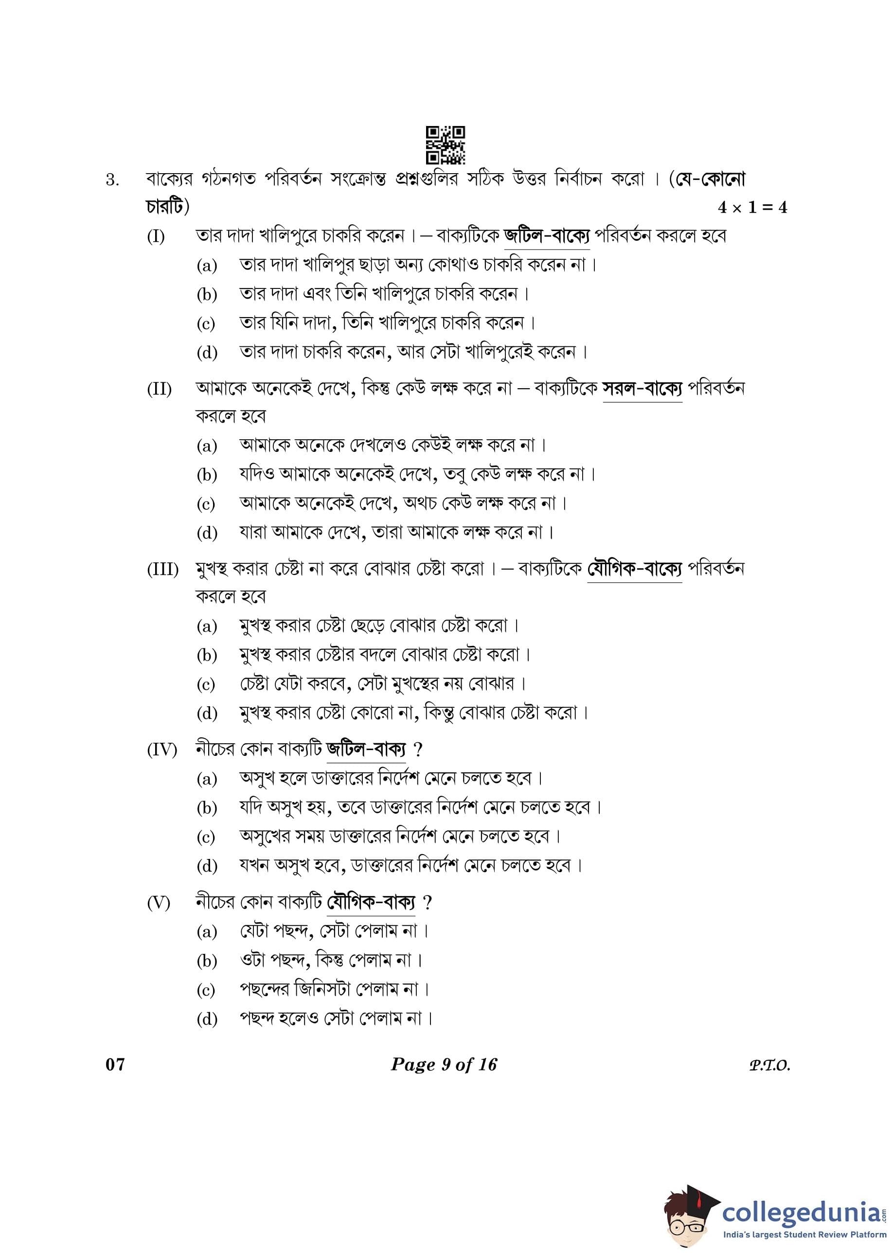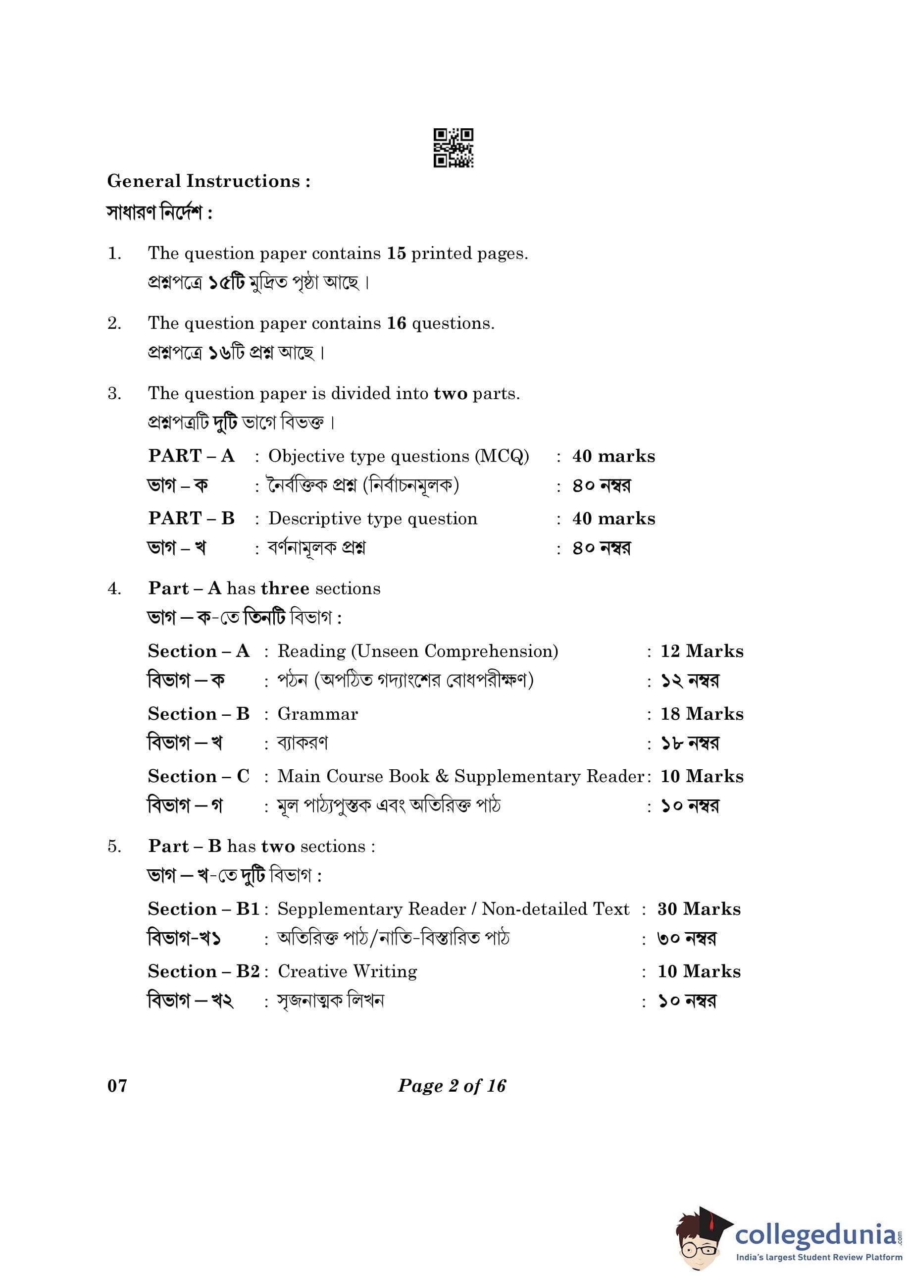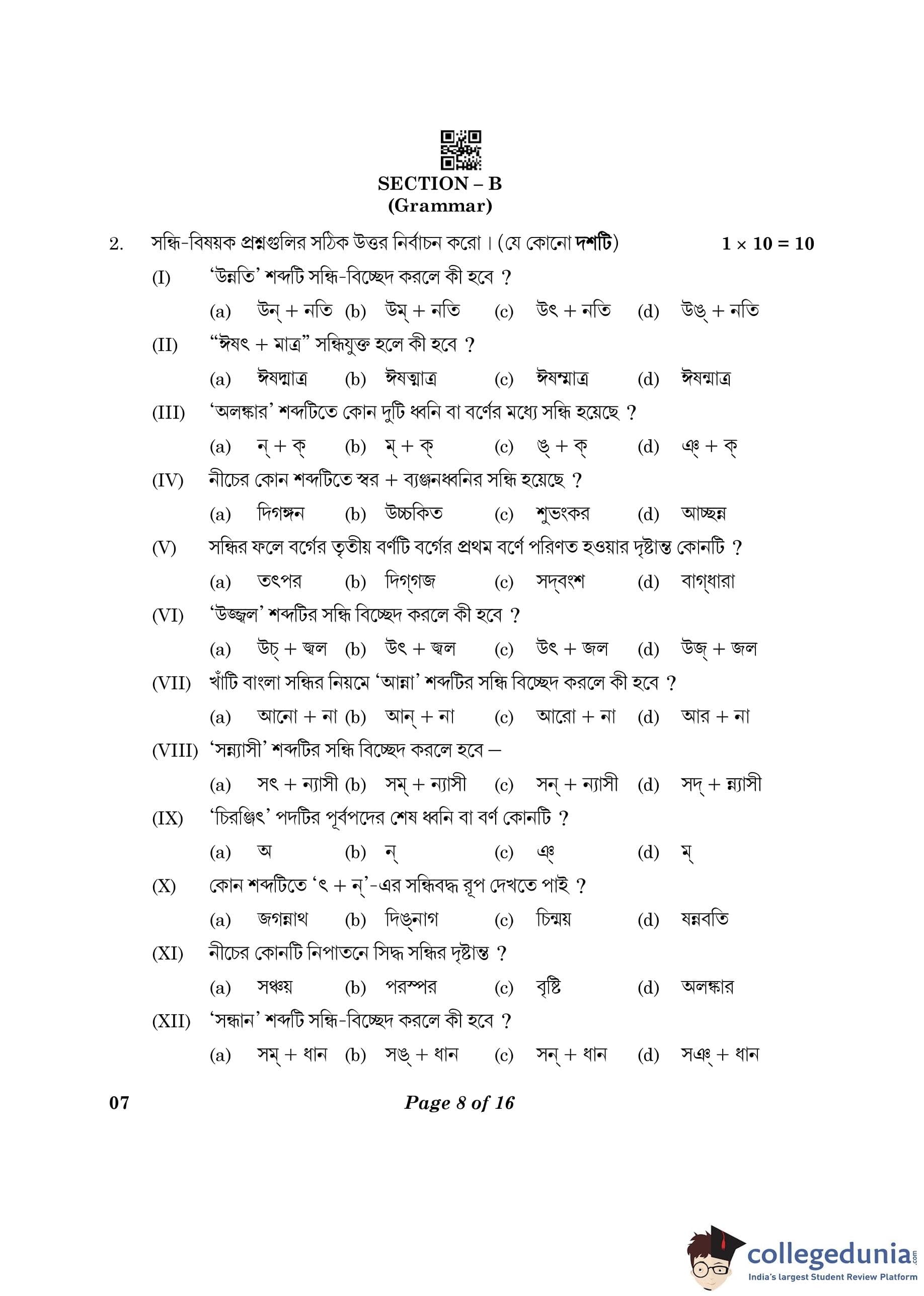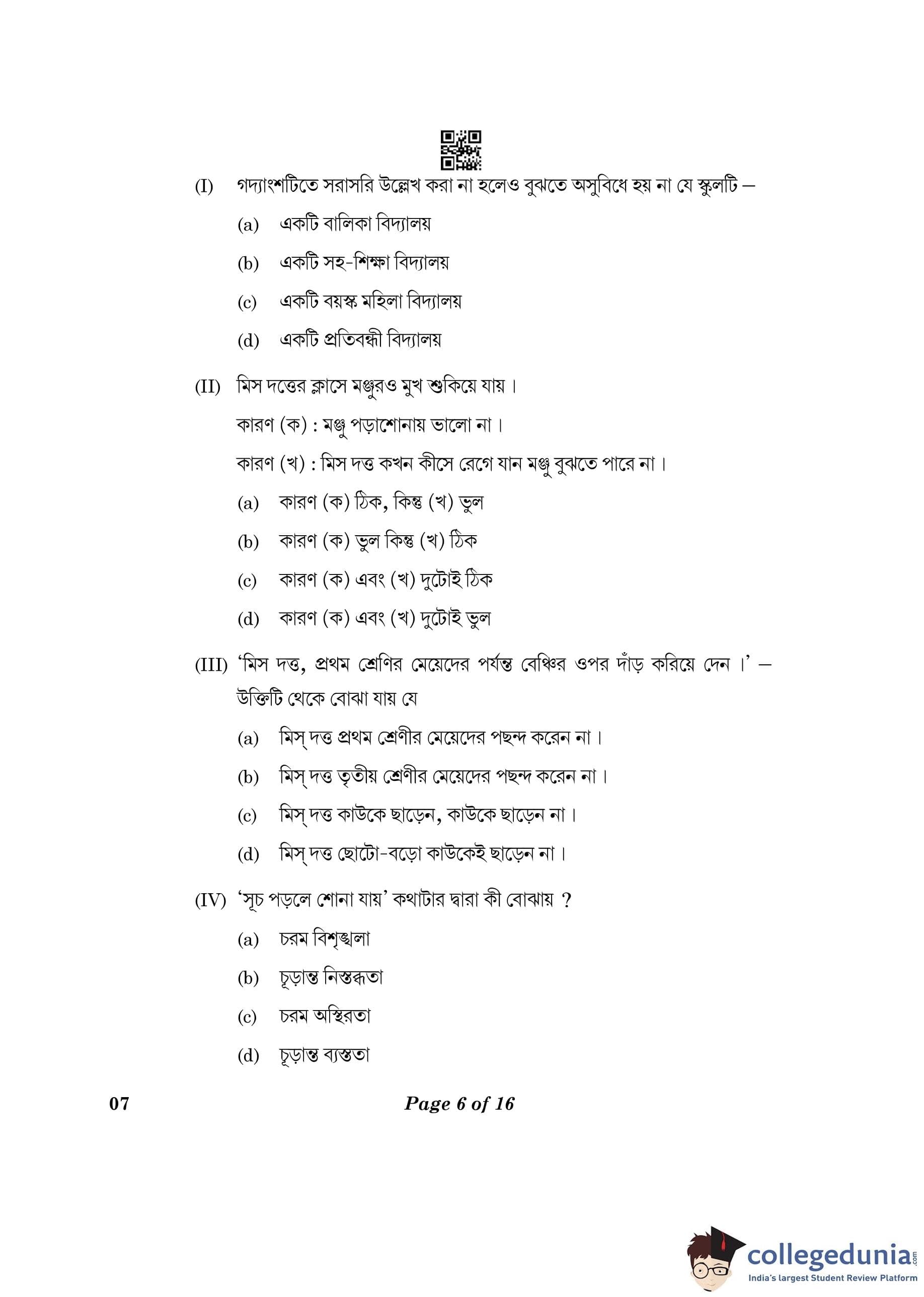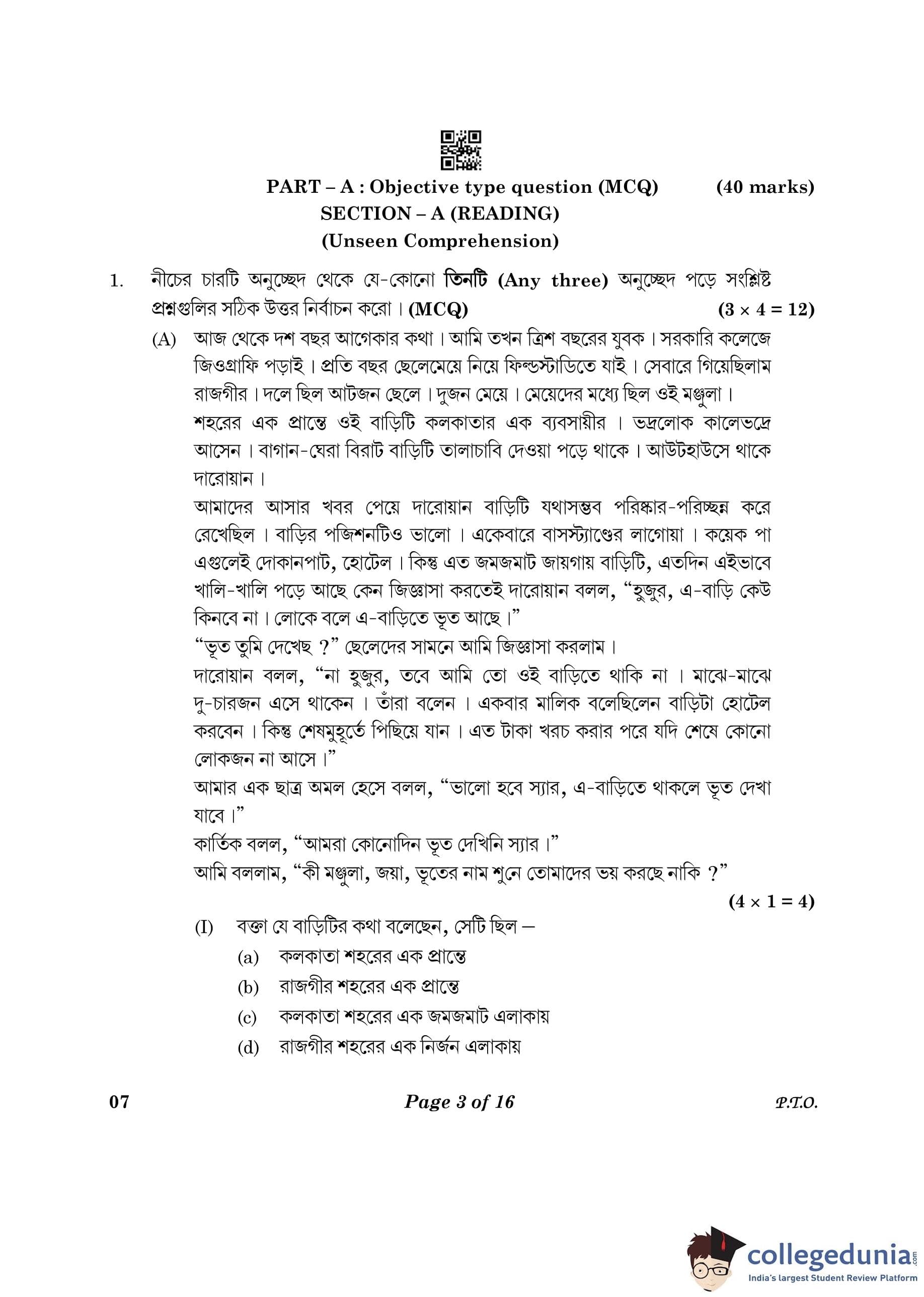 CBSE Class 10 Bengali Question Paper 2023 (Set 4- 7) with Answer Key pdf is available for download here. The exam was conducted by Central Board of Secondary Education on February 24, 2023. The question paper comprised a total of 16 questions divided among 2 sections.