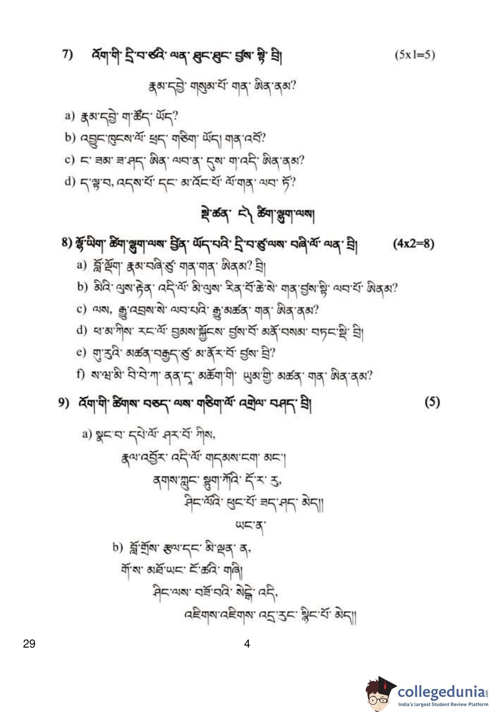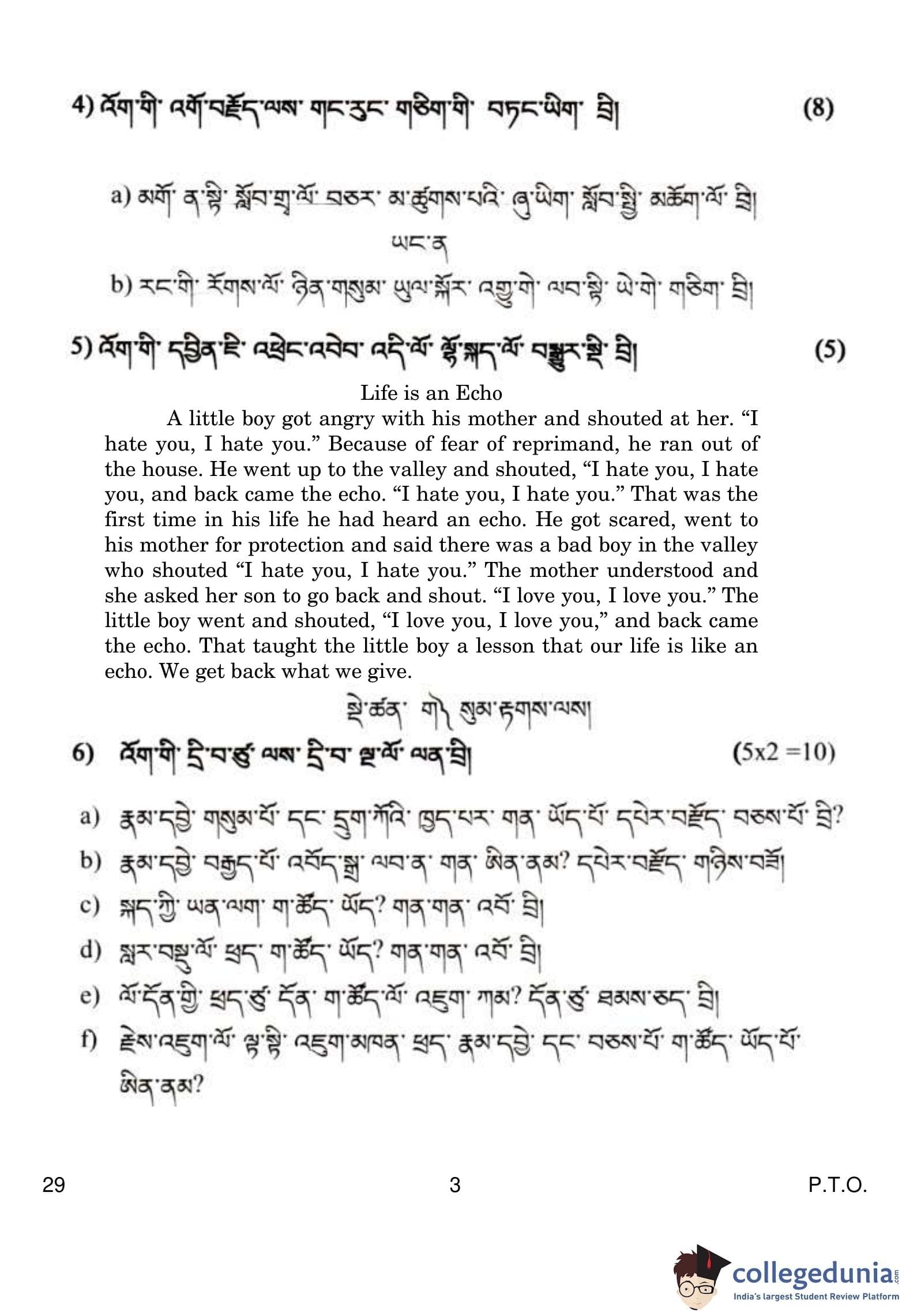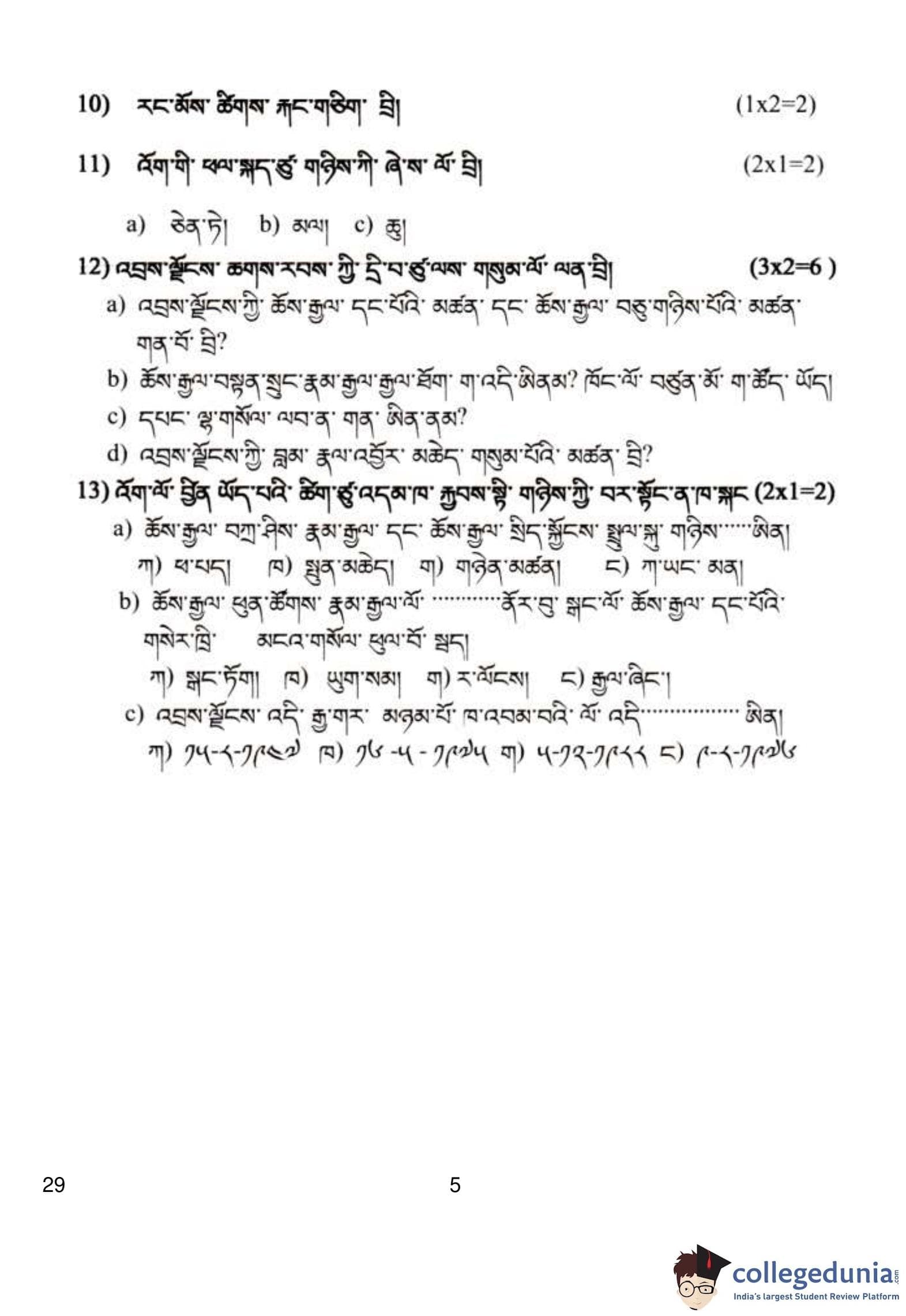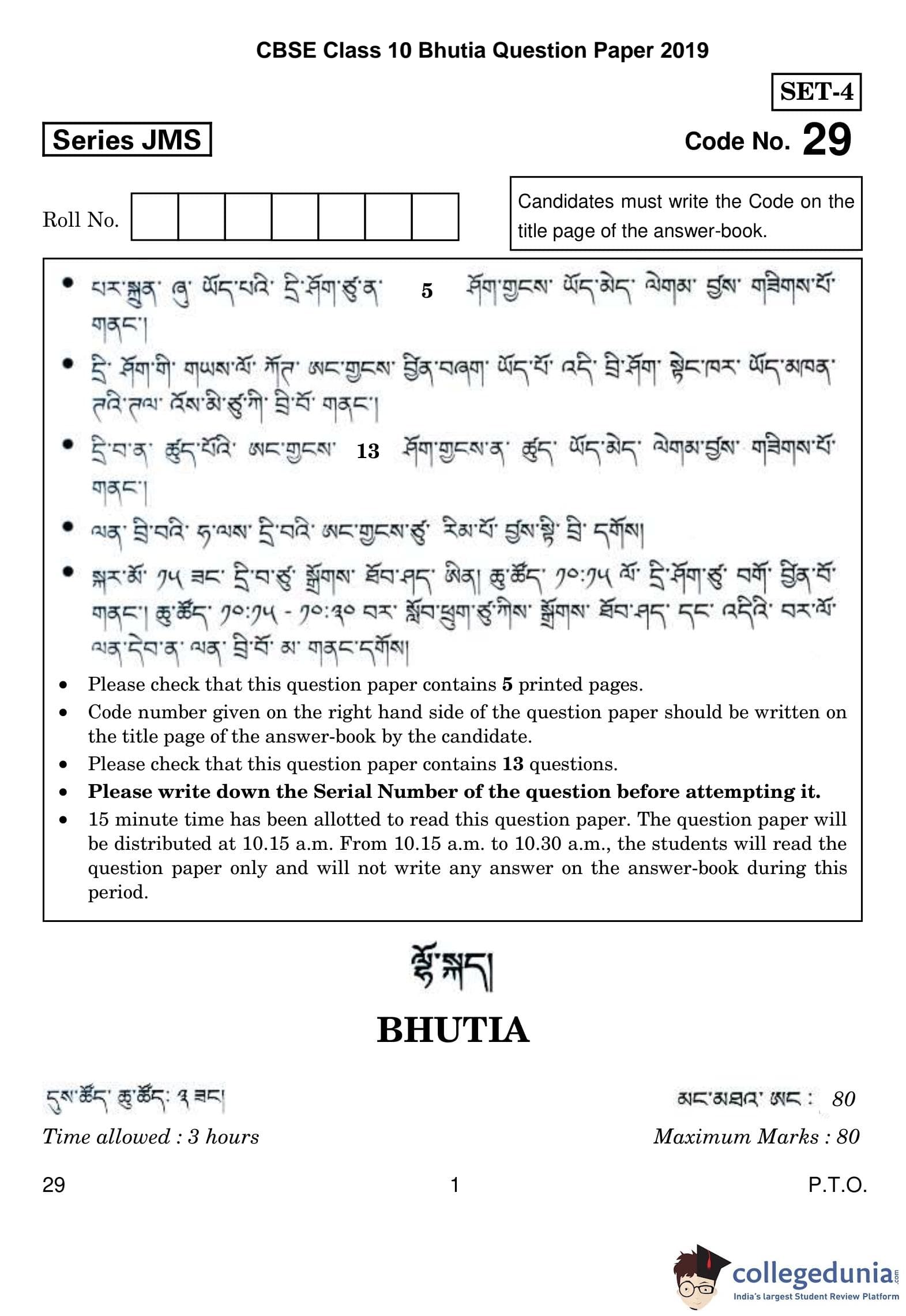 CBSE Class 10 Bhutia Question Paper 2019 with Answer Key (March 5)