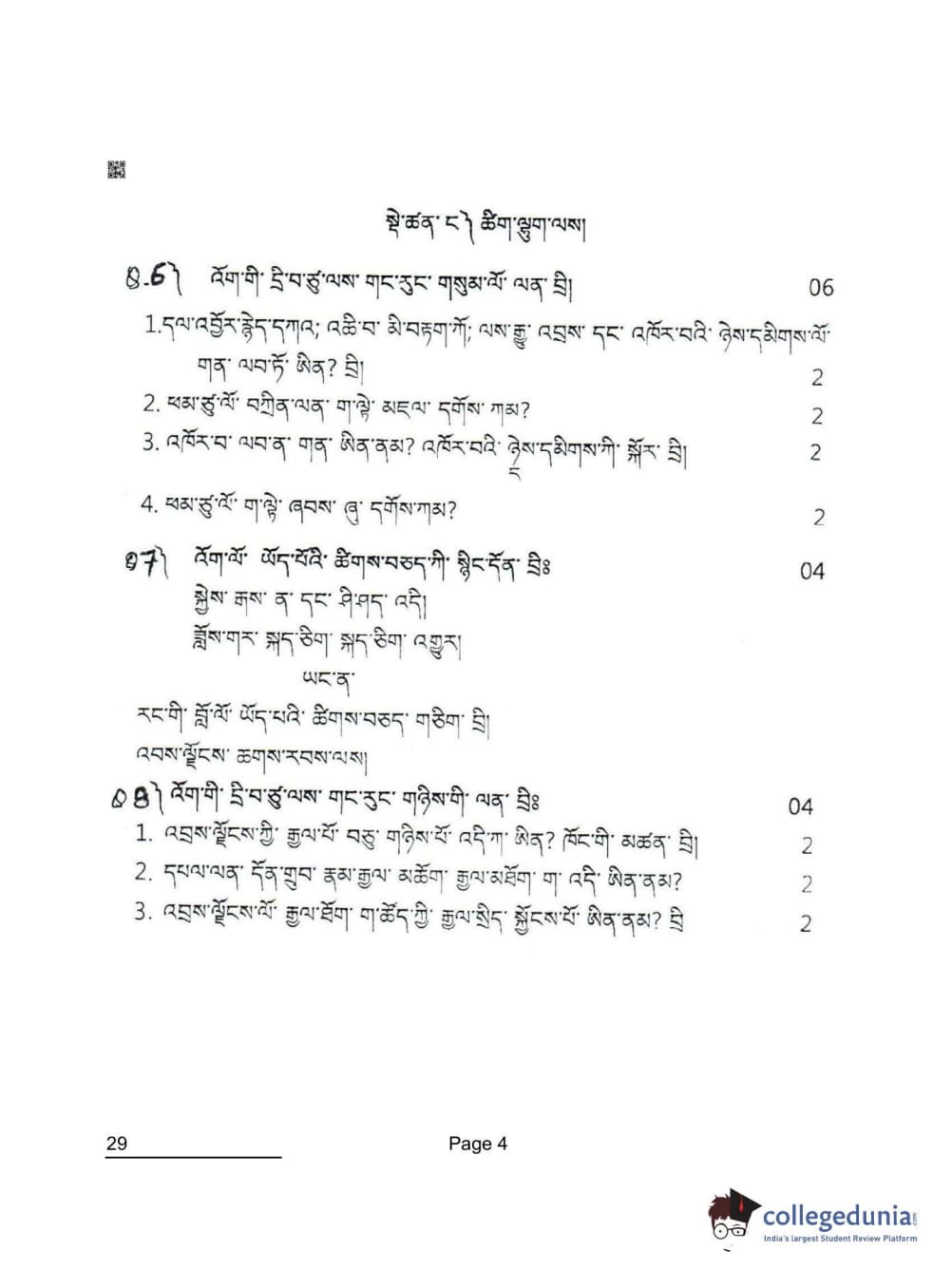 CBSE Class 10 Bhutia Question Paper 2022 with Answer Key Set 4 is available for download. The exam was conducted by the Central Board of Secondary Education on May 17, 2022 in the Morning Session 10:30 AM to 12:30 PM. The medium of paper was Bhutia. The question paper comprised a total of 8 questions divided among 4 sections.