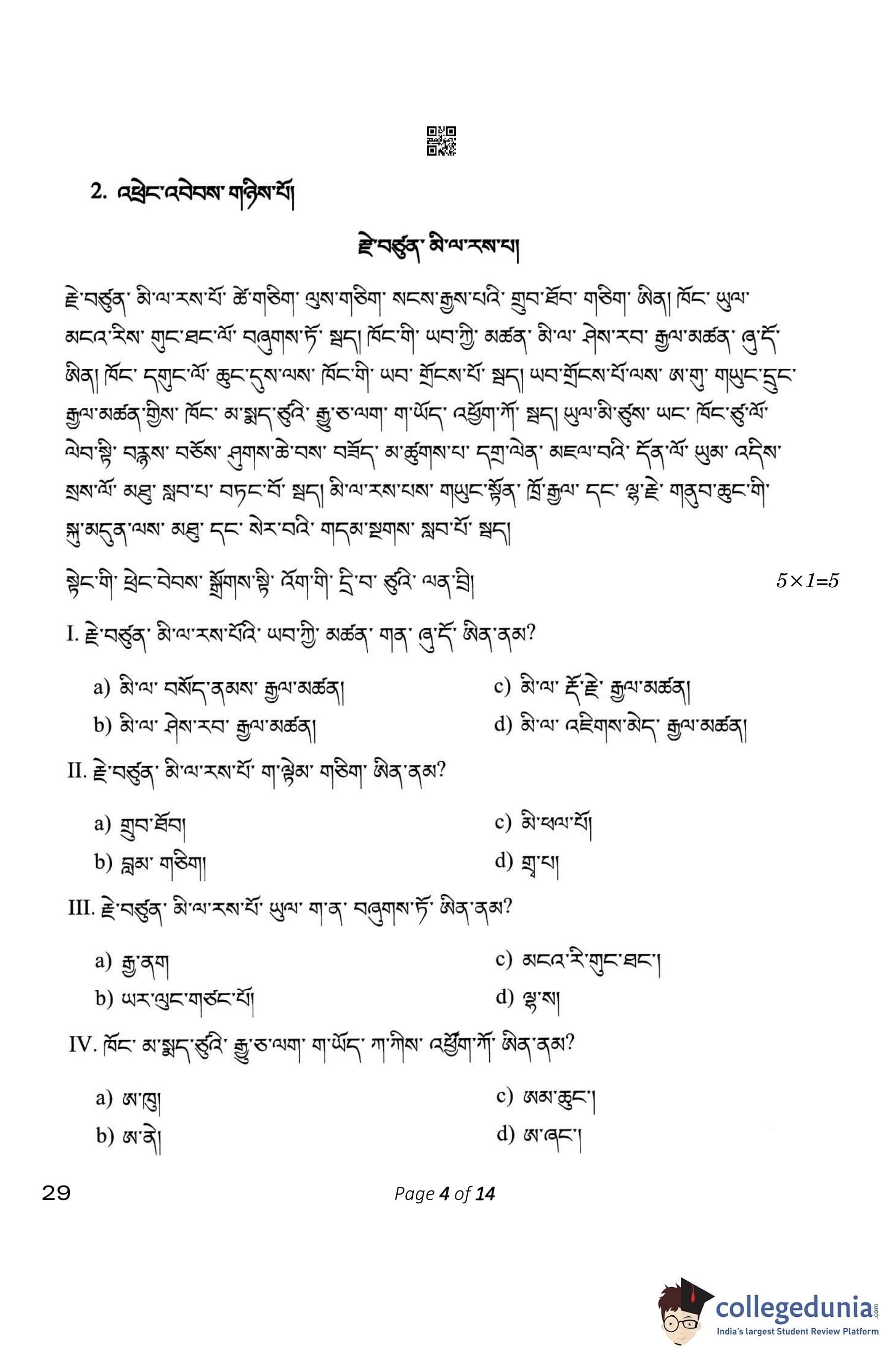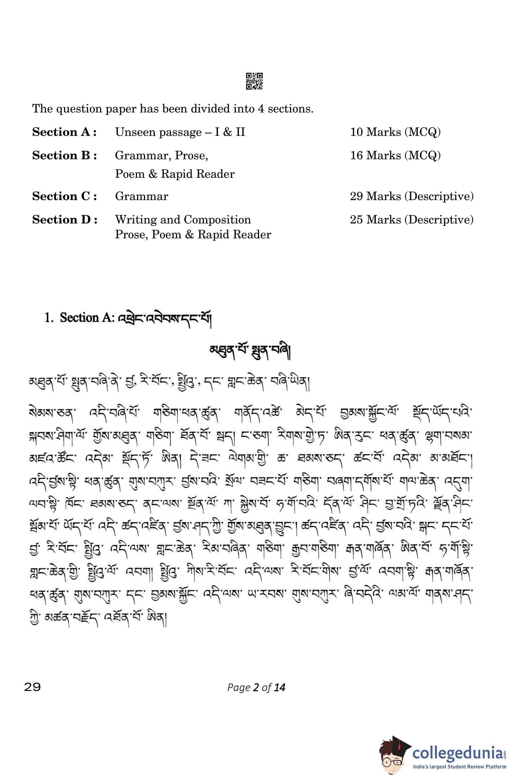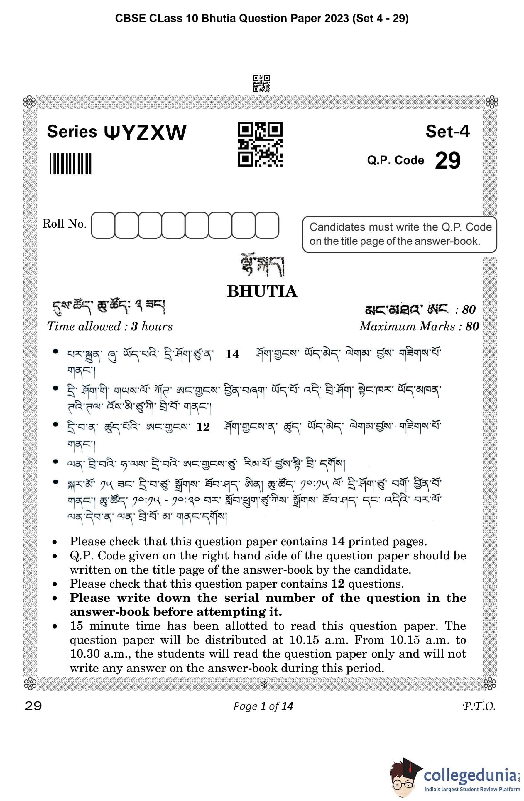 CBSE Class 10 Bhutia Question Paper 2023 (Set 4- 29) with Answer Key pdf is available for download here. The exam was conducted by Central Board of Secondary Education on March 2, 2023. The question paper comprised a total of 12 questions divided among 4 sections.