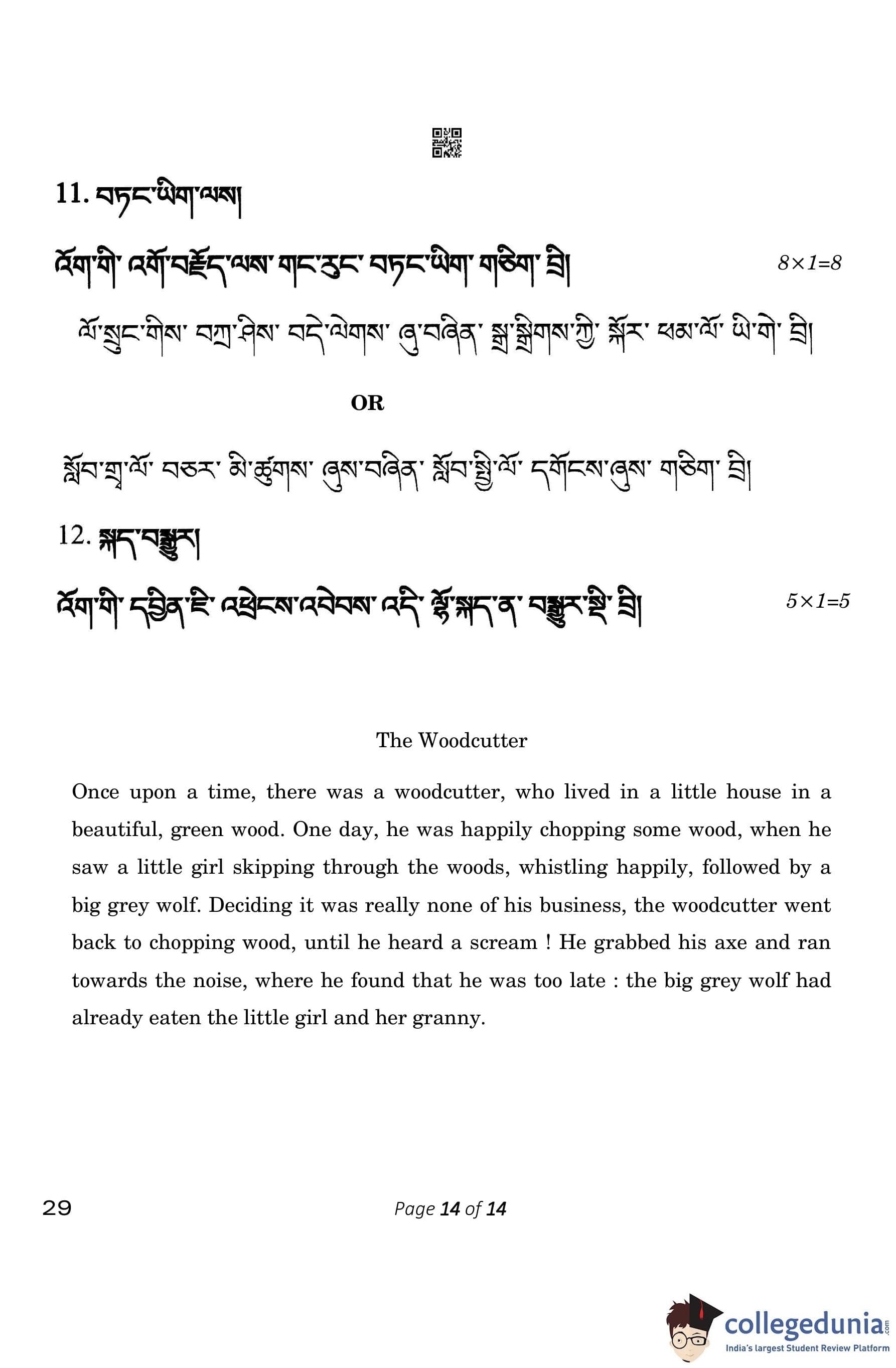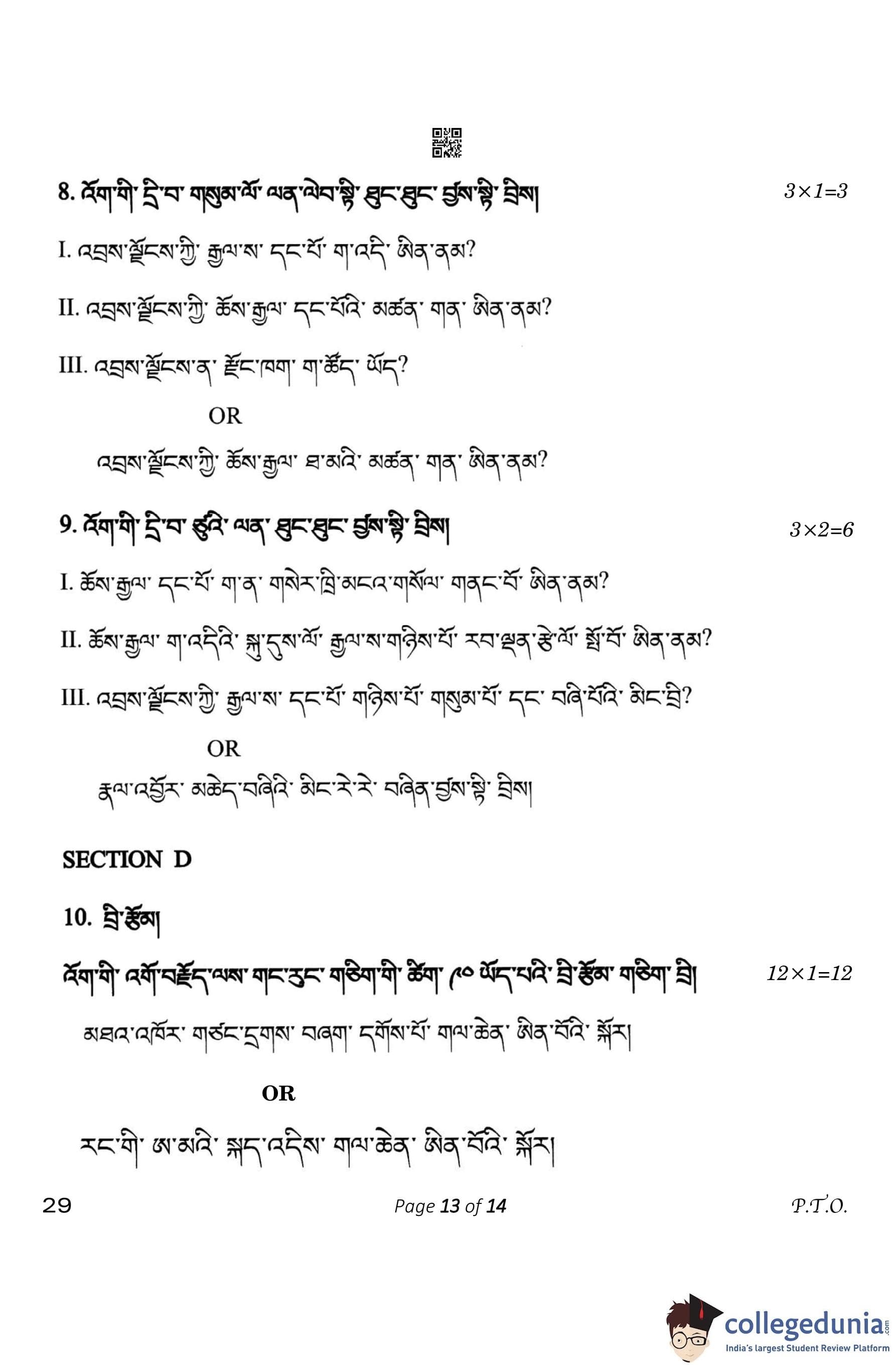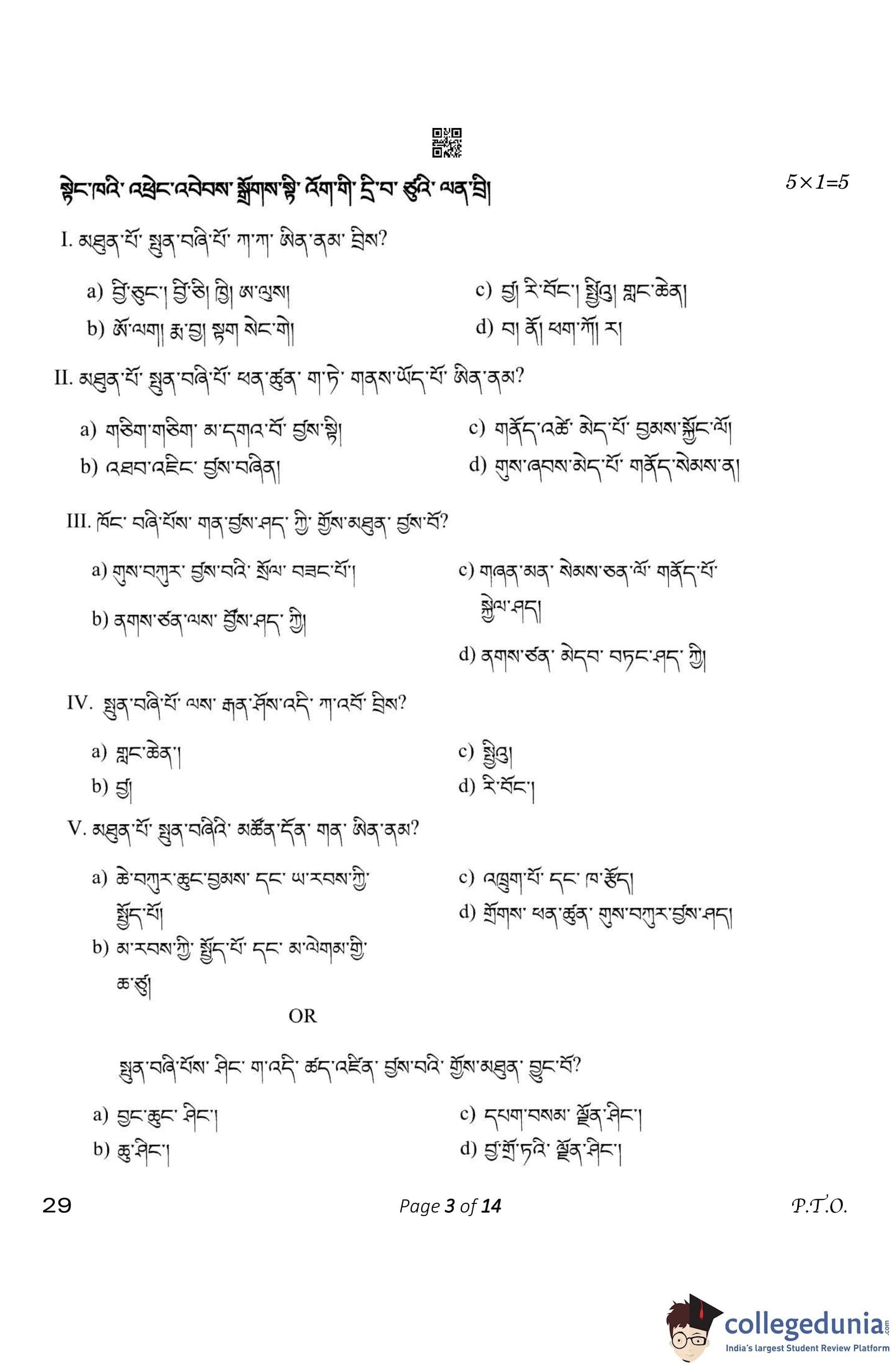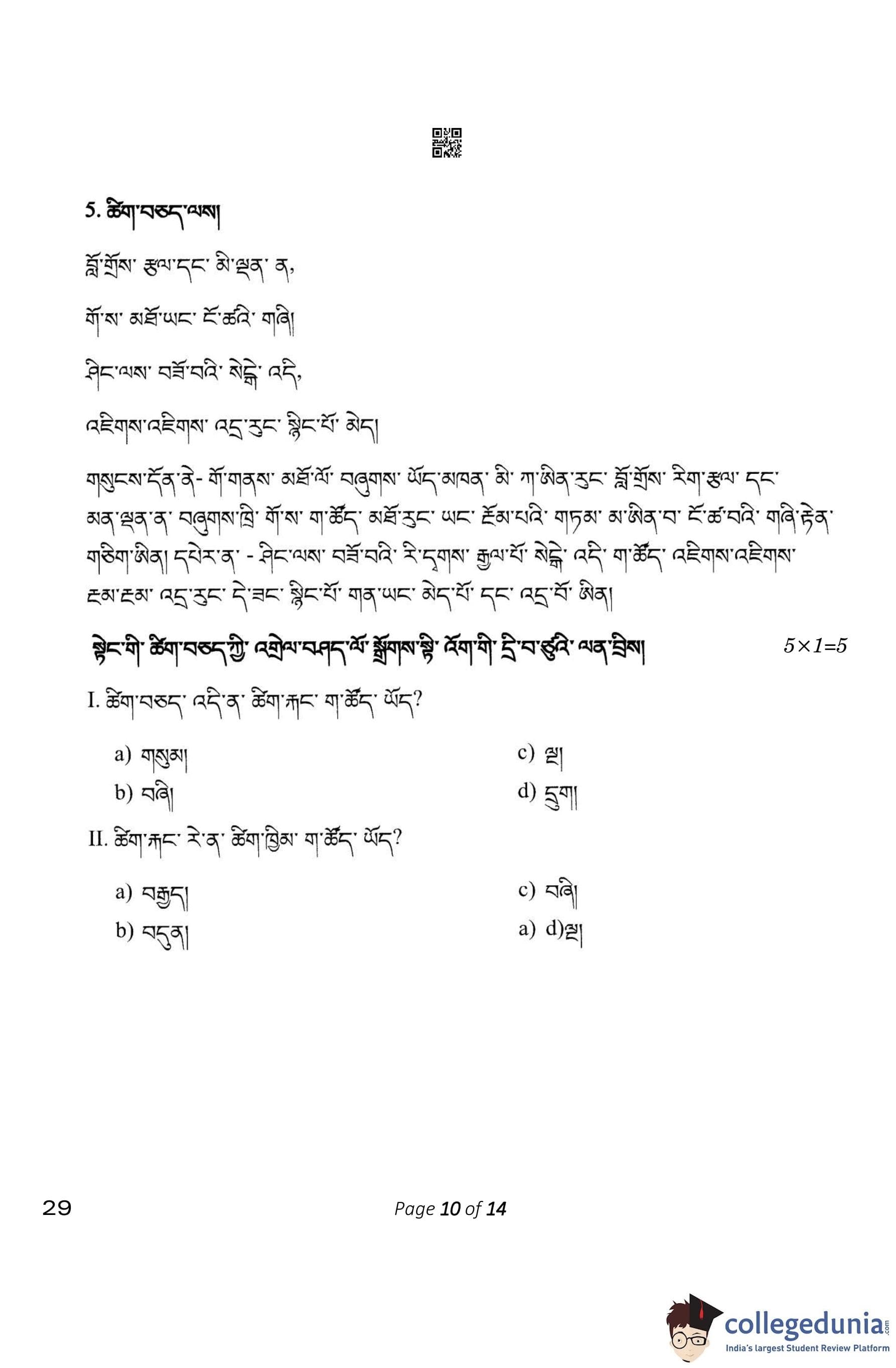 CBSE Class 10 Bhutia Question Paper 2023 with Answer Key