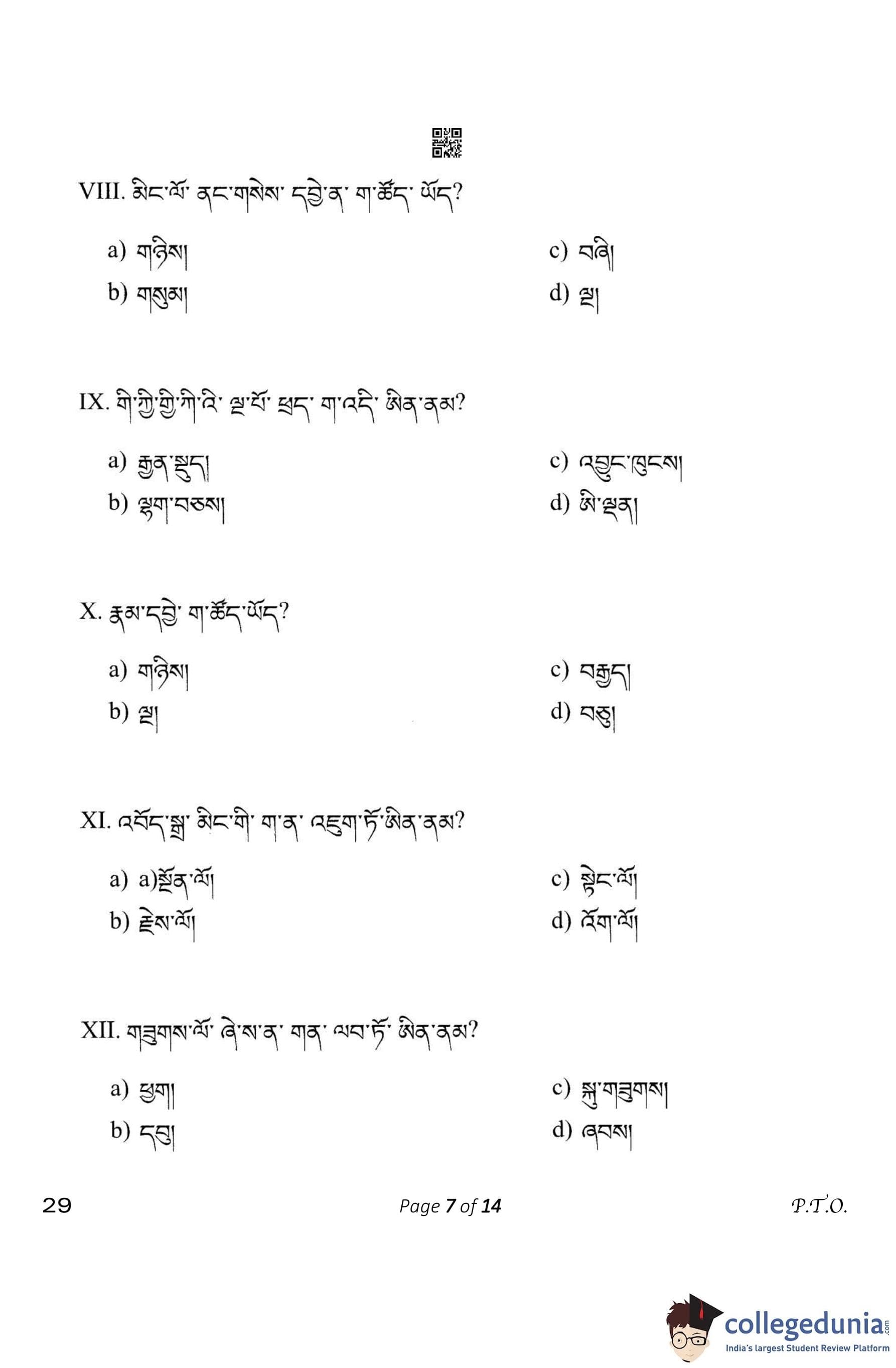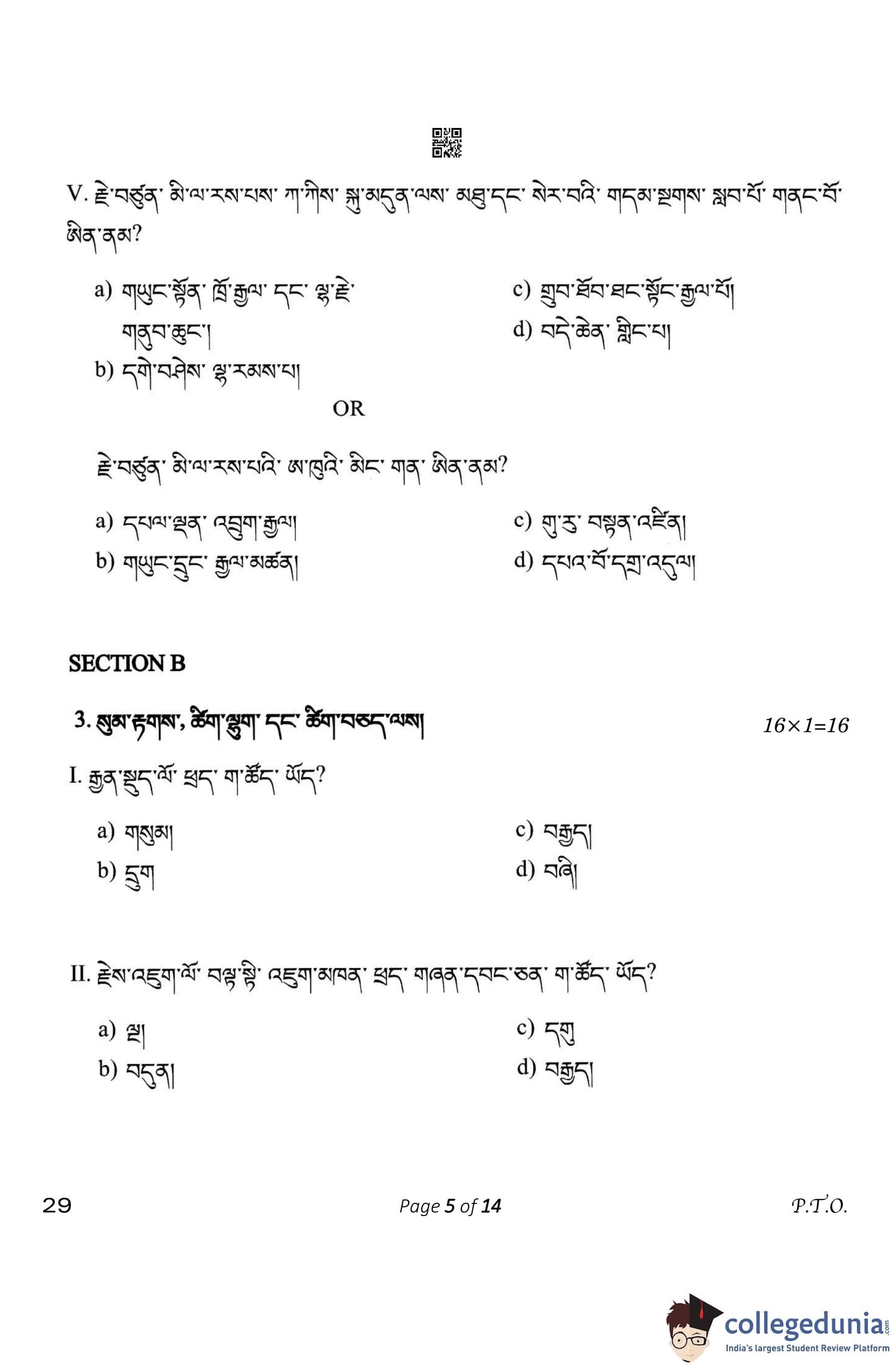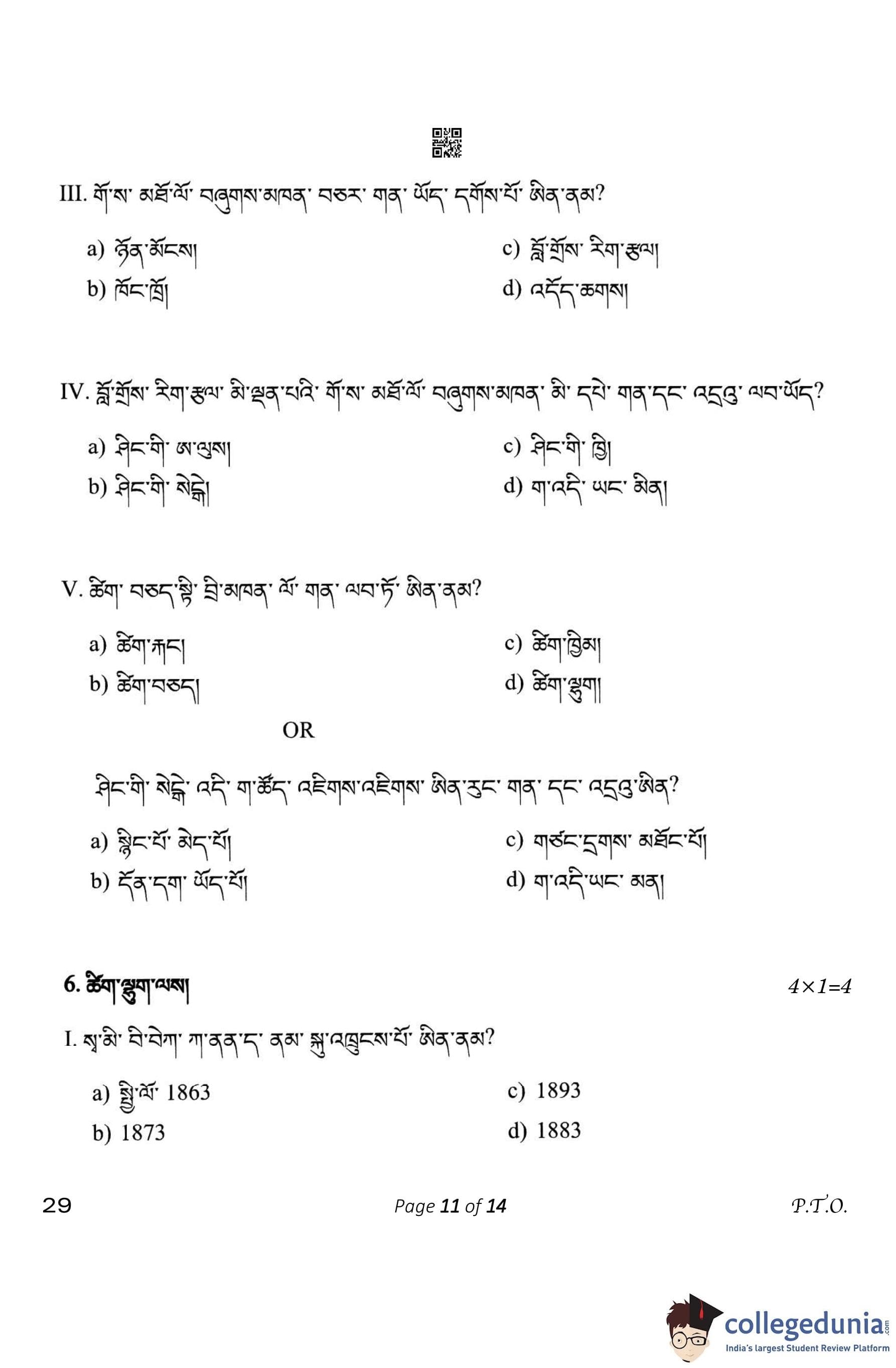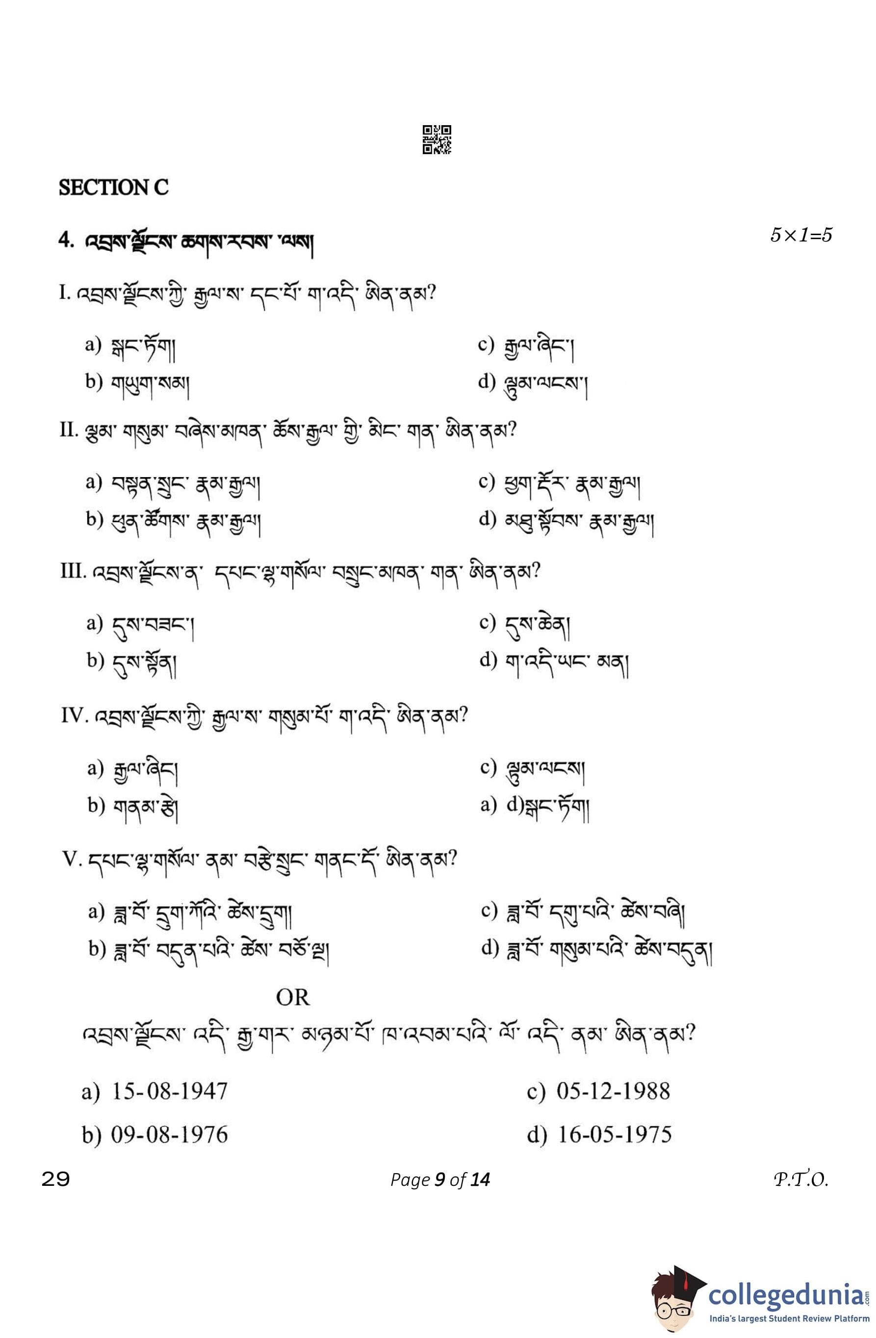 CBSE Class 10 Bhutia Question Paper 2023 with Answer Key
