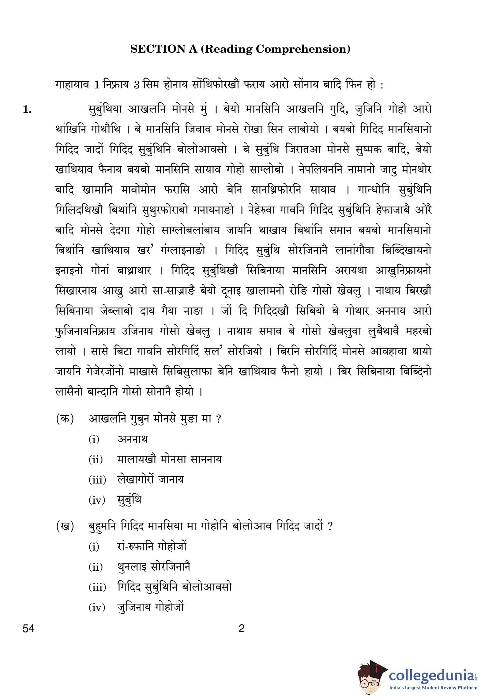 CBSE Class 10 Bodo Question Paper 2019 with Answer Key (March 5)