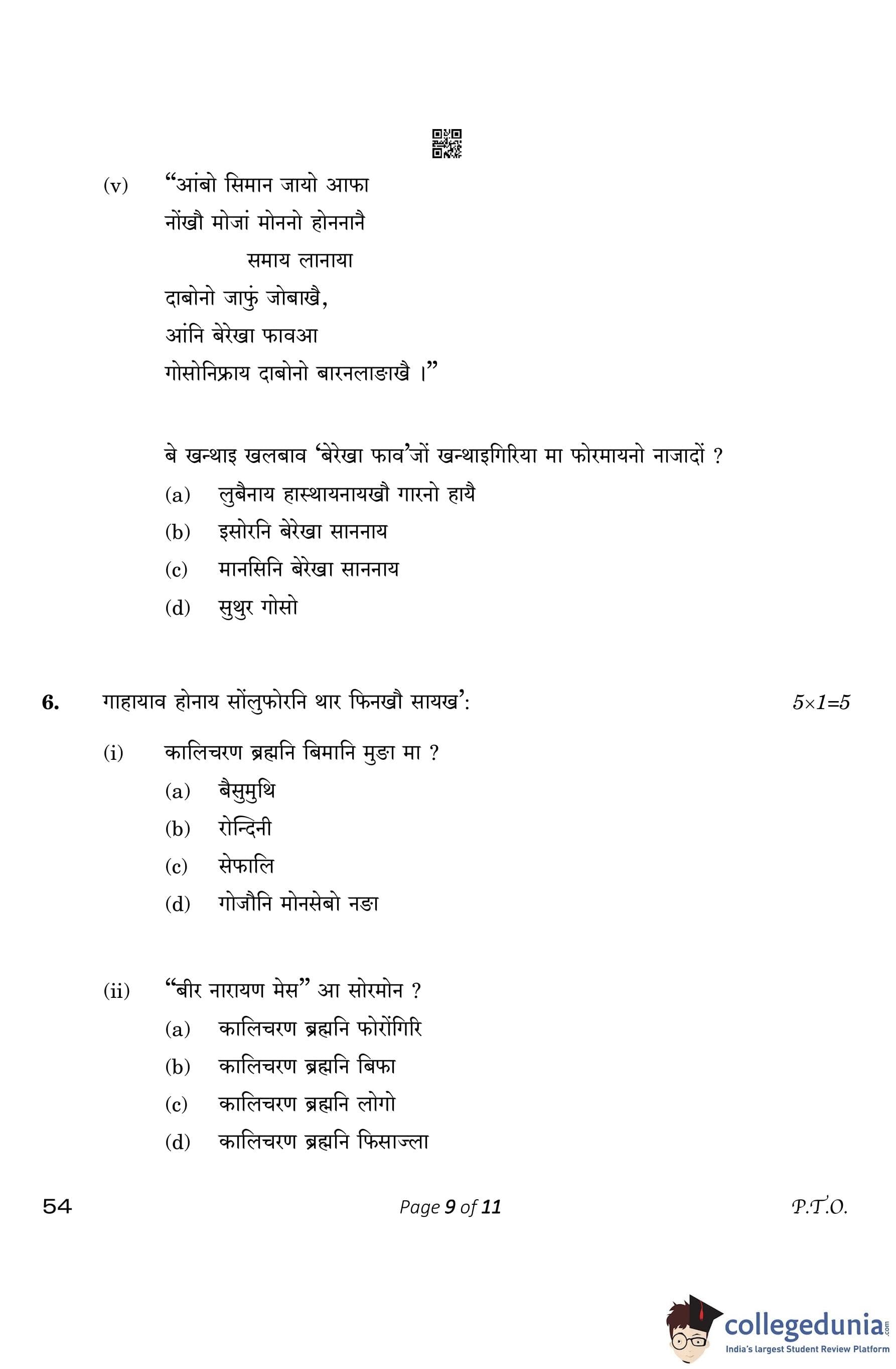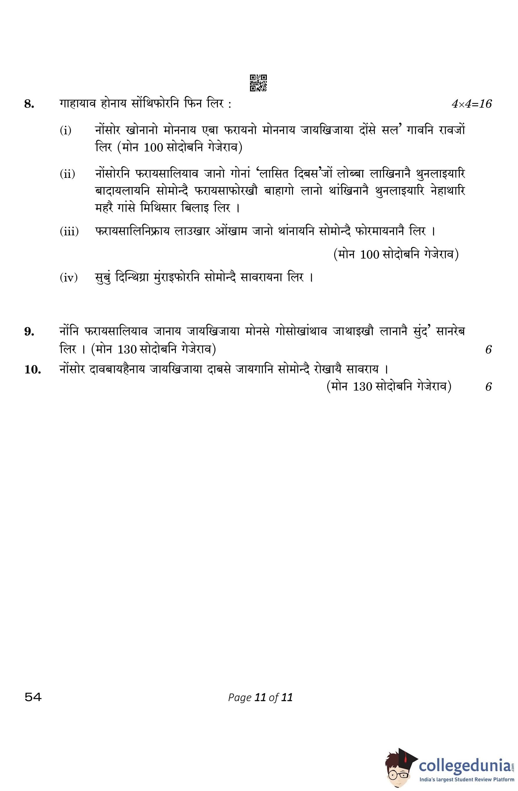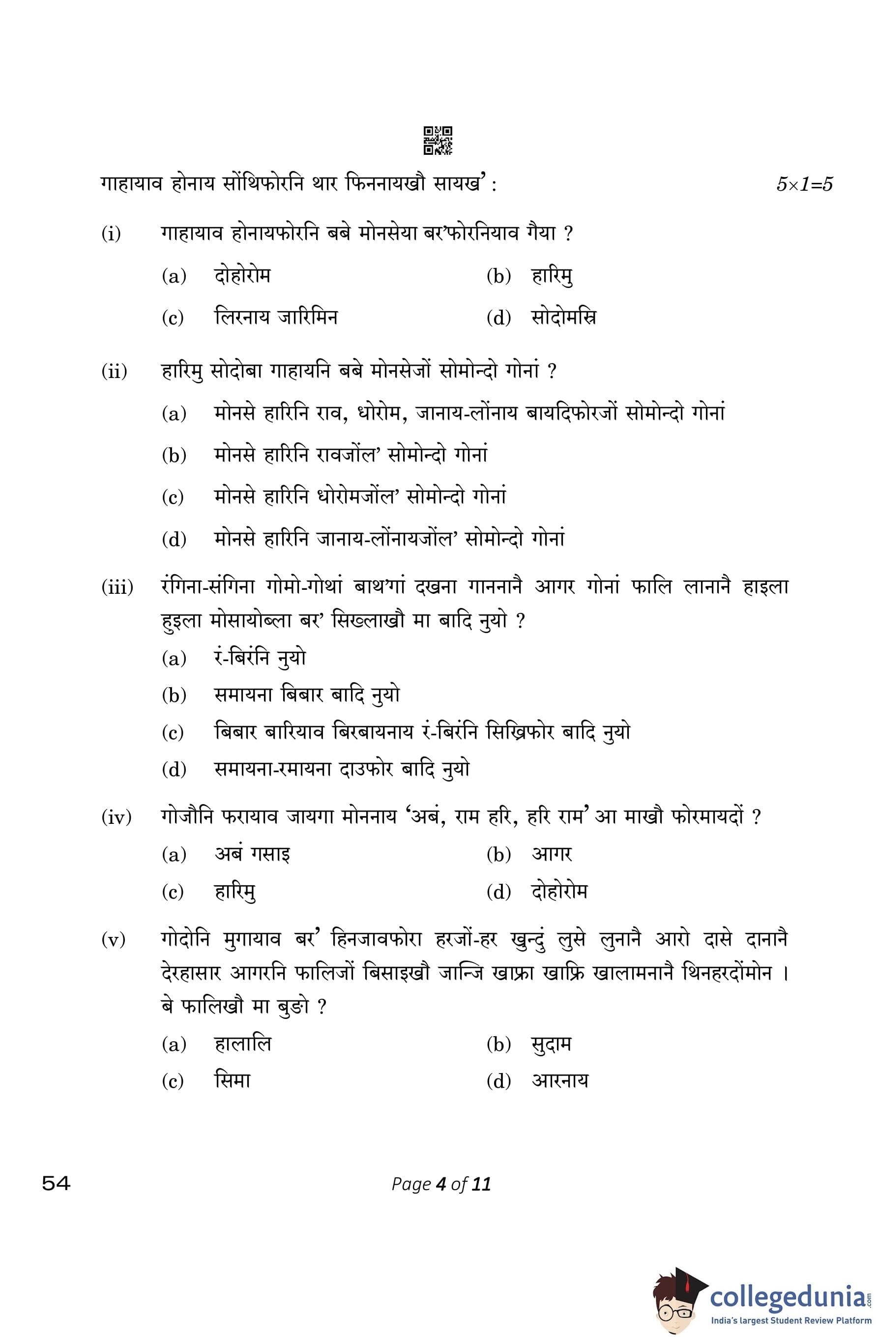 CBSE Class 10 Bodo Question Paper 2023 (Set 4- 54) with Answer Key pdf is available for download here. The exam was conducted by Central Board of Secondary Education on March 2, 2023. The question paper comprised a total of 10 questions divided among 2 sections.