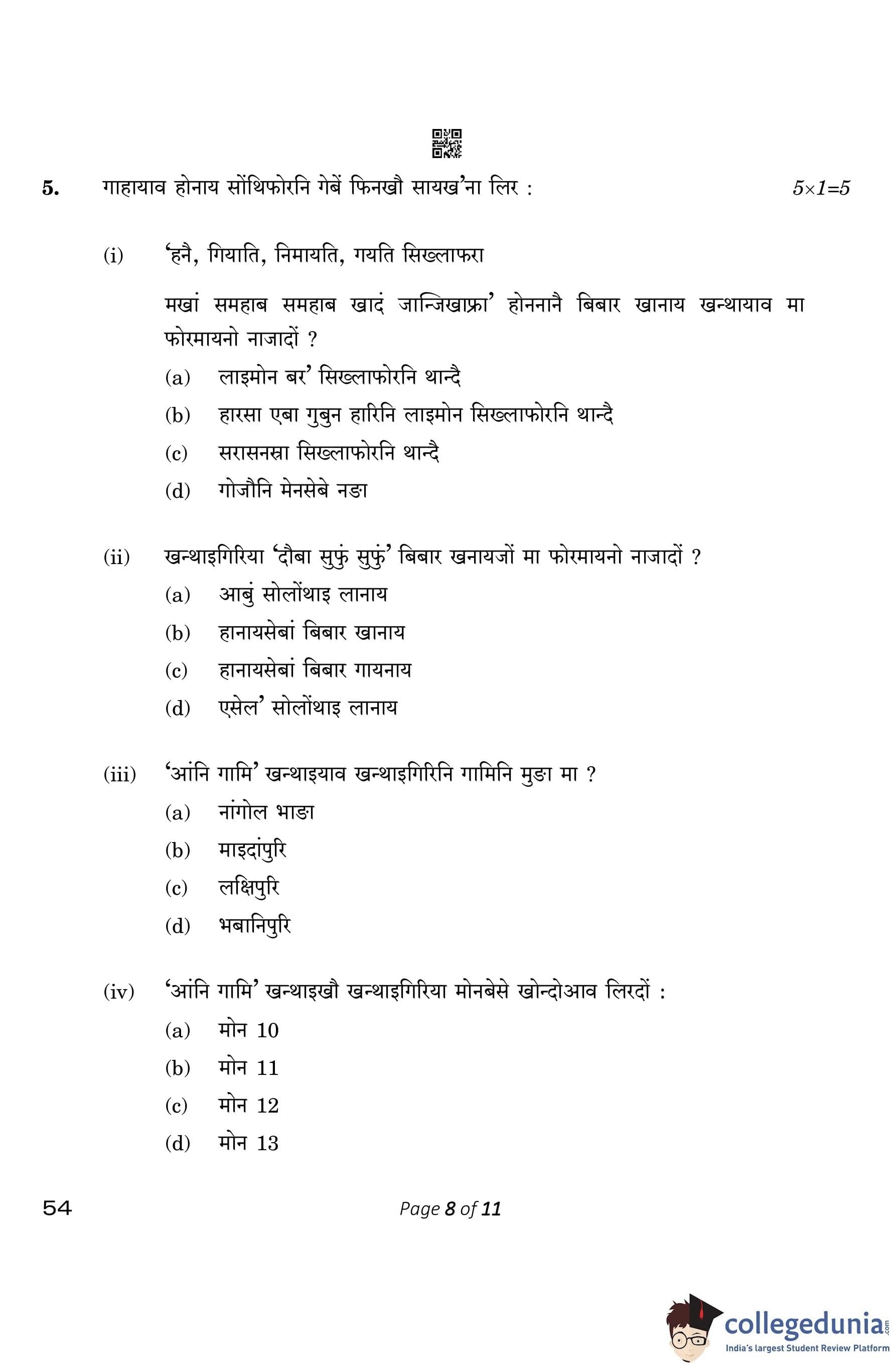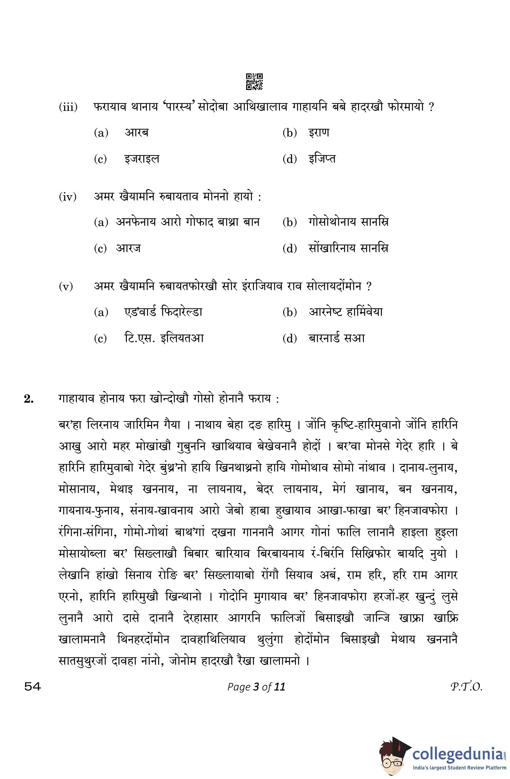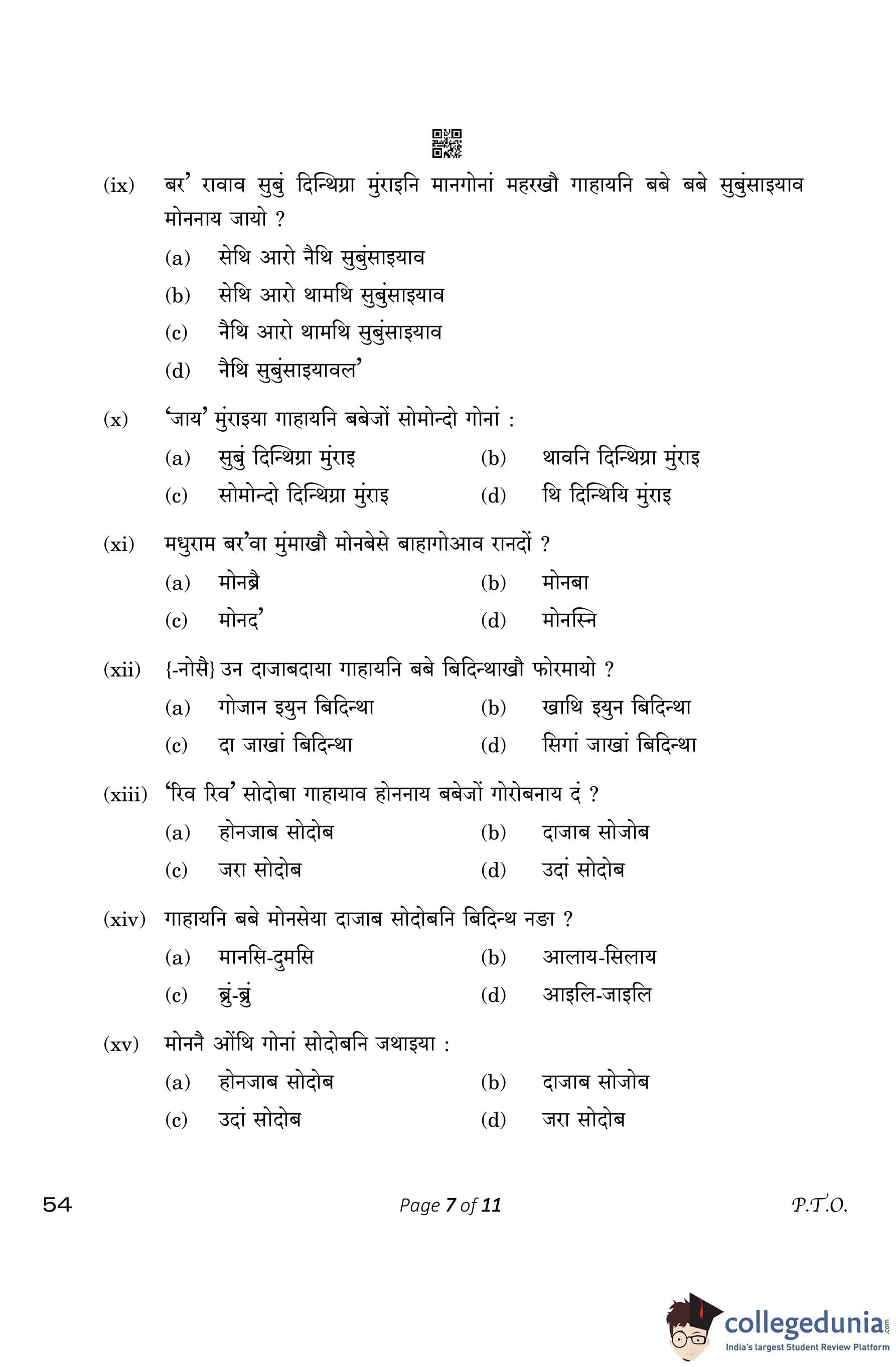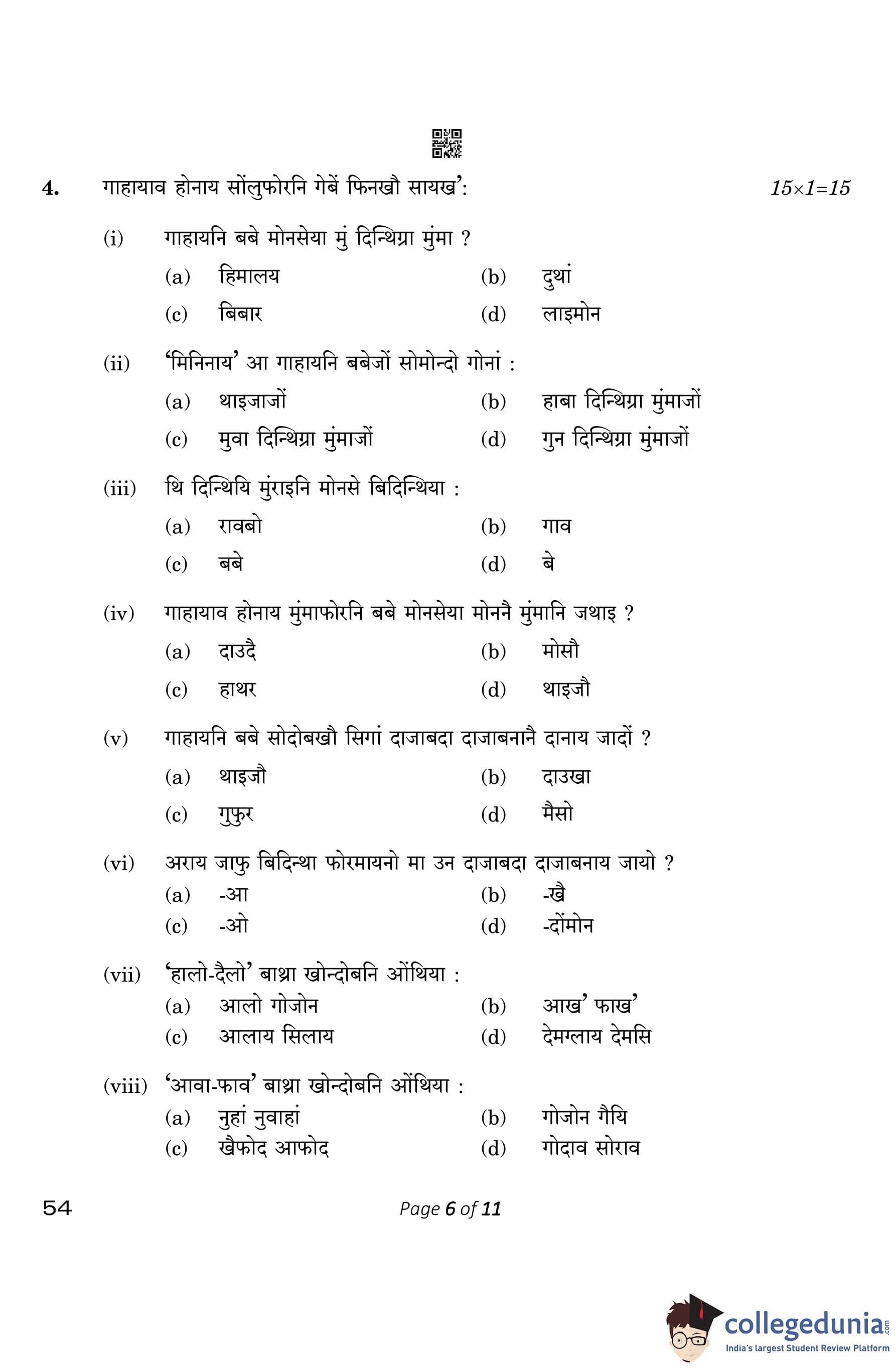 CBSE Class 10 Bodo Question Paper 2023 (Set 4- 54) with Answer Key pdf is available for download here. The exam was conducted by Central Board of Secondary Education on March 2, 2023. The question paper comprised a total of 10 questions divided among 2 sections.
