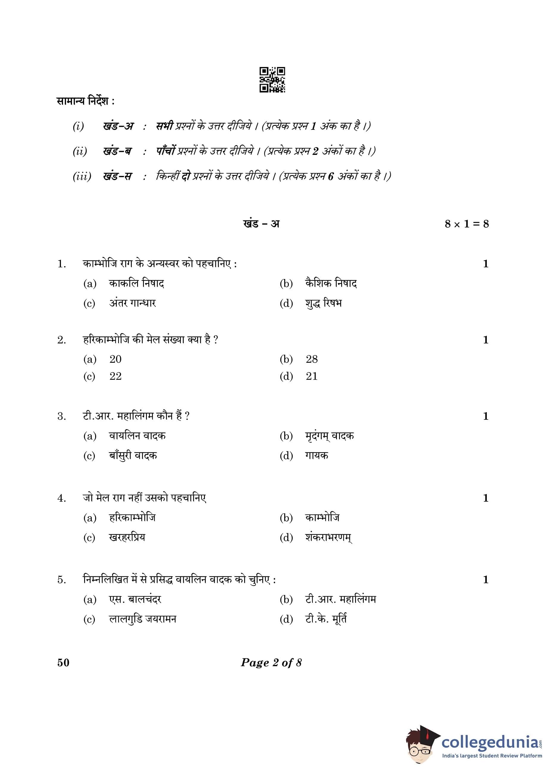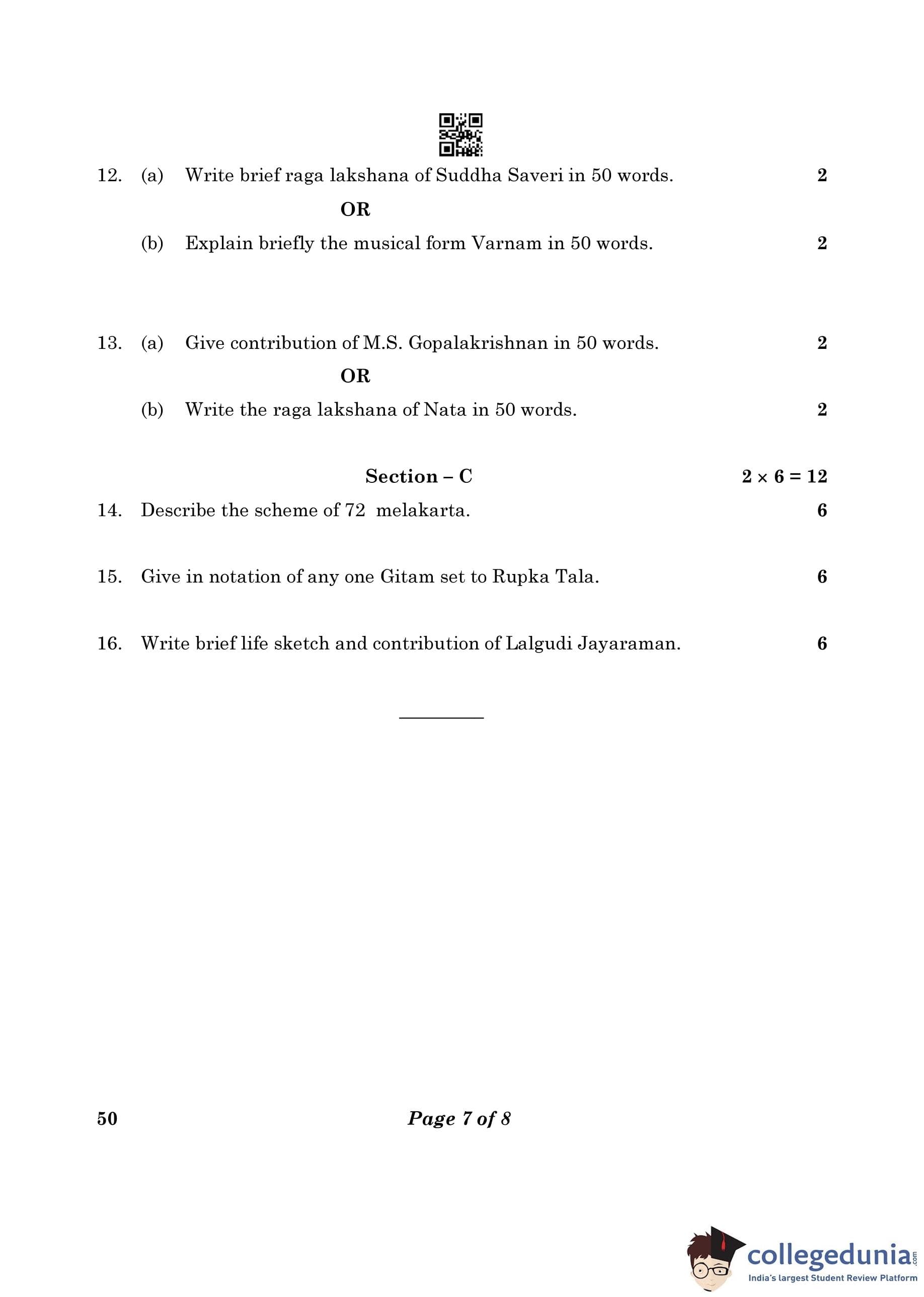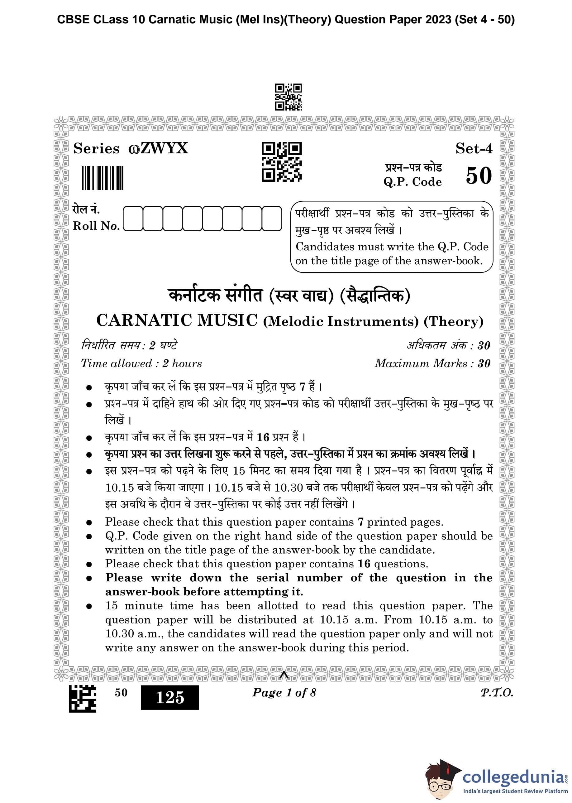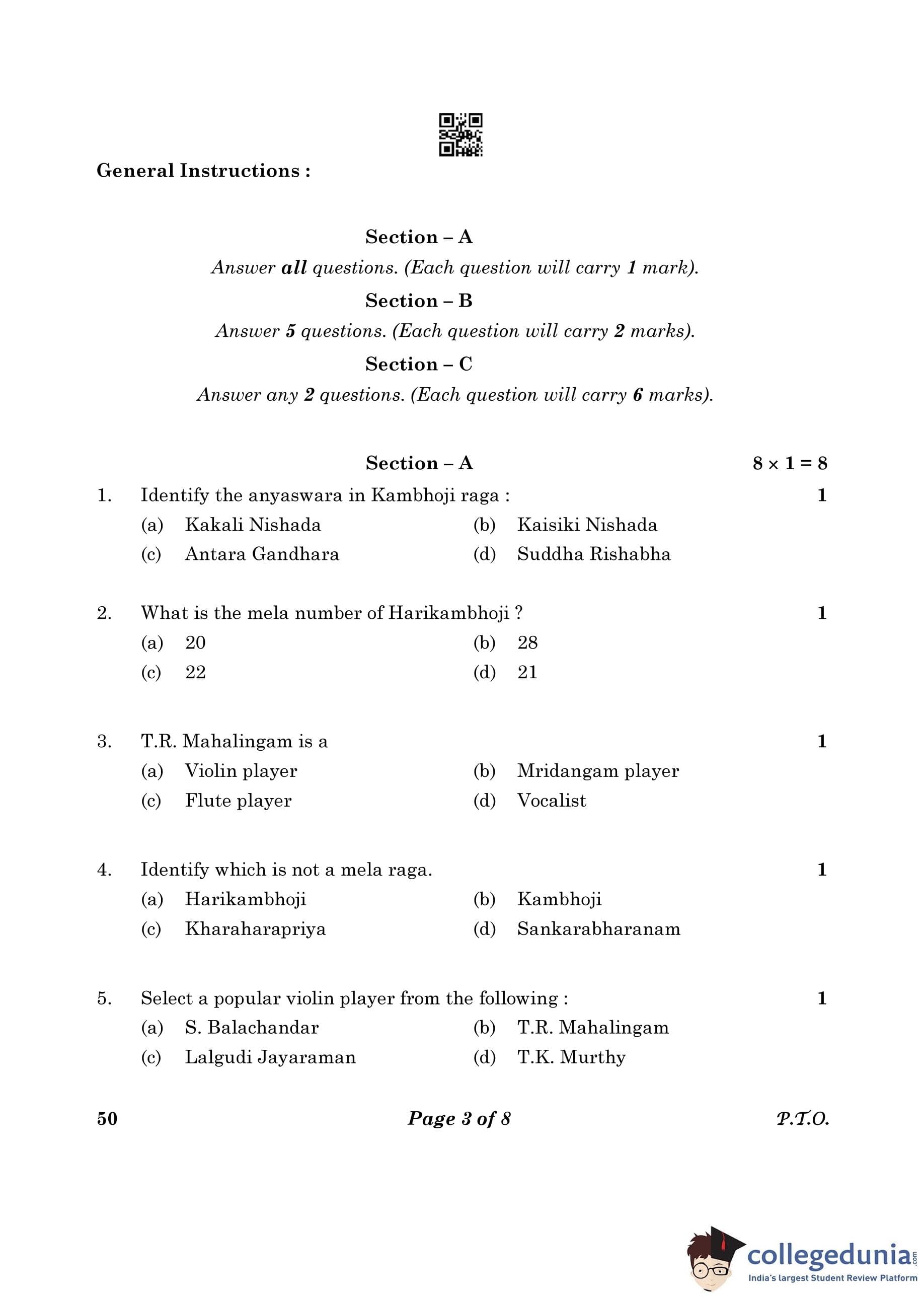 CBSE Class 10 Carnatic Music (Mel Ins)(Theory) Question Paper 2023 (Set 4- 50) with Answer Key pdf is available for download here. The exam was conducted by Central Board of Secondary Education on February 20, 2023. The question paper comprised a total of 16 questions divided among 3 sections.