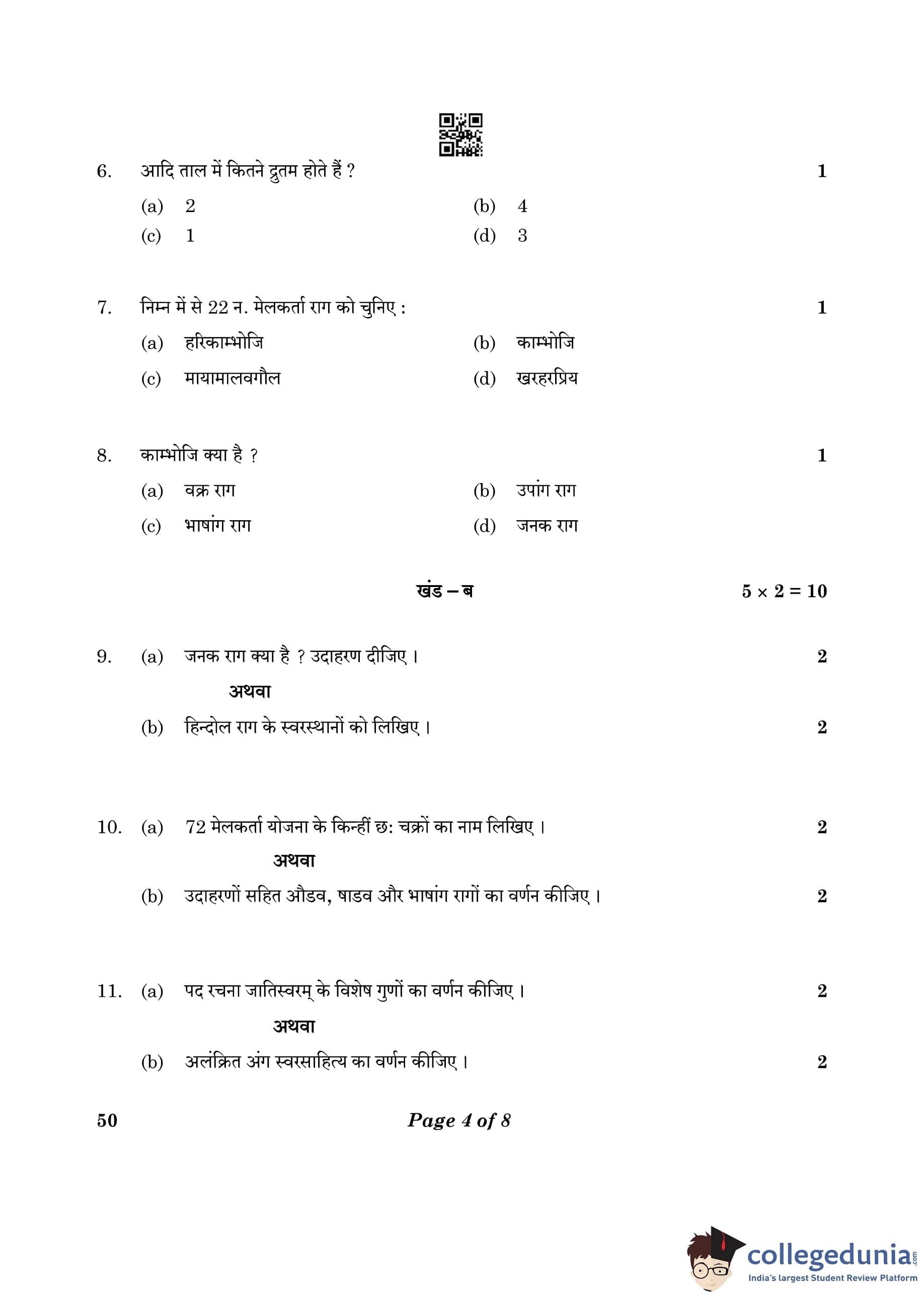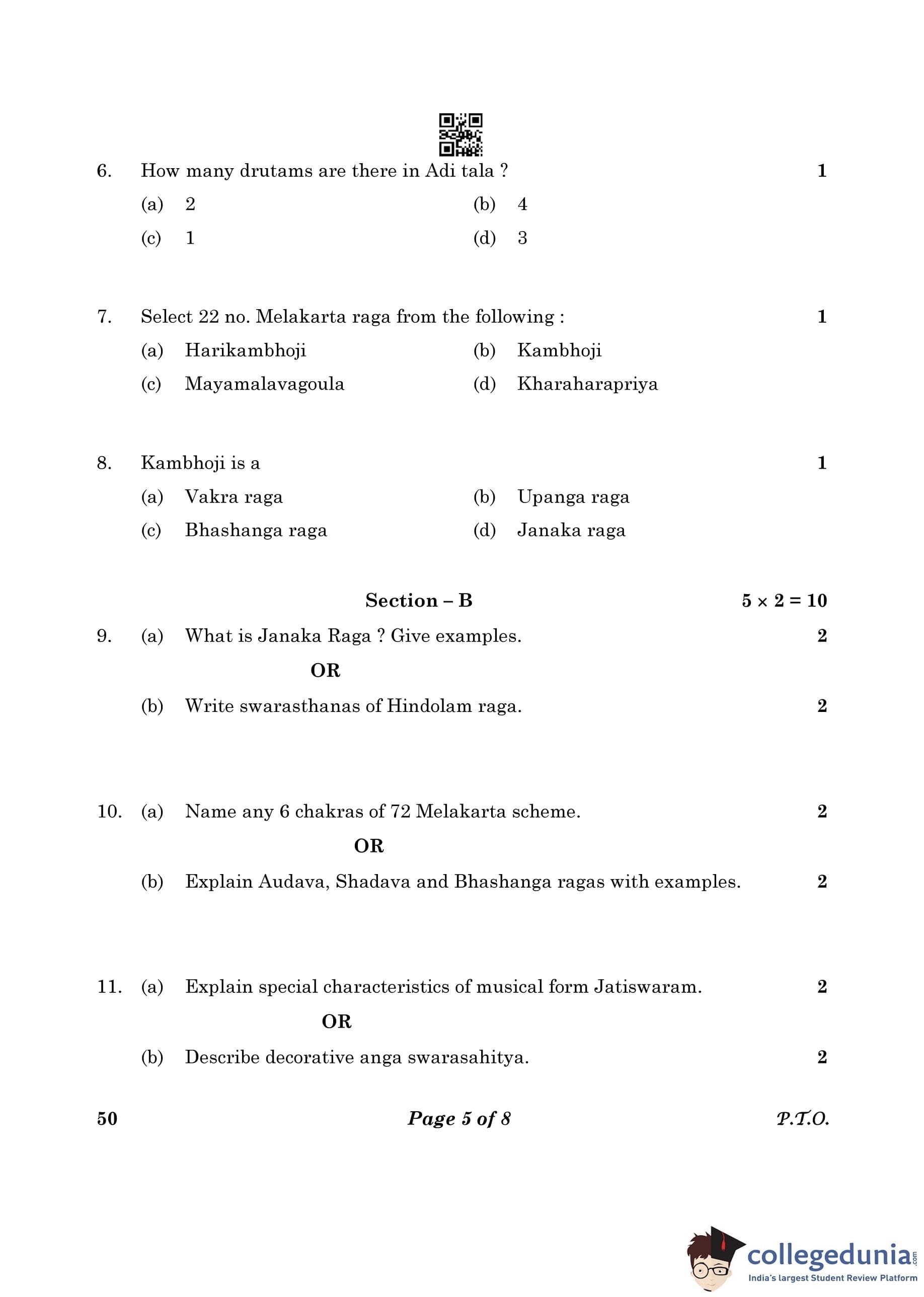 CBSE Class 10 Carnatic Music (Mel Ins) (Theory) Question Paper 2023 with Answer Key