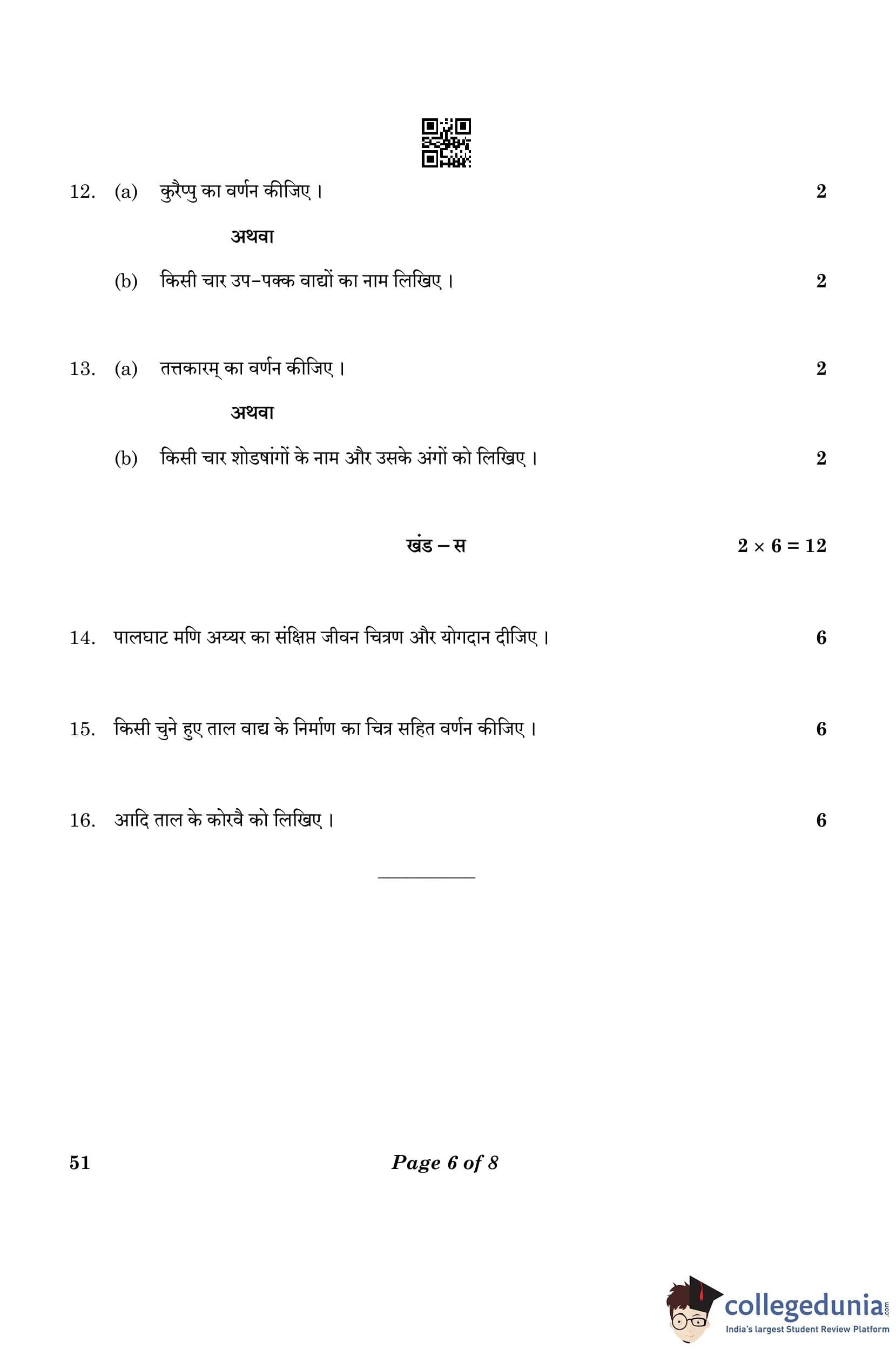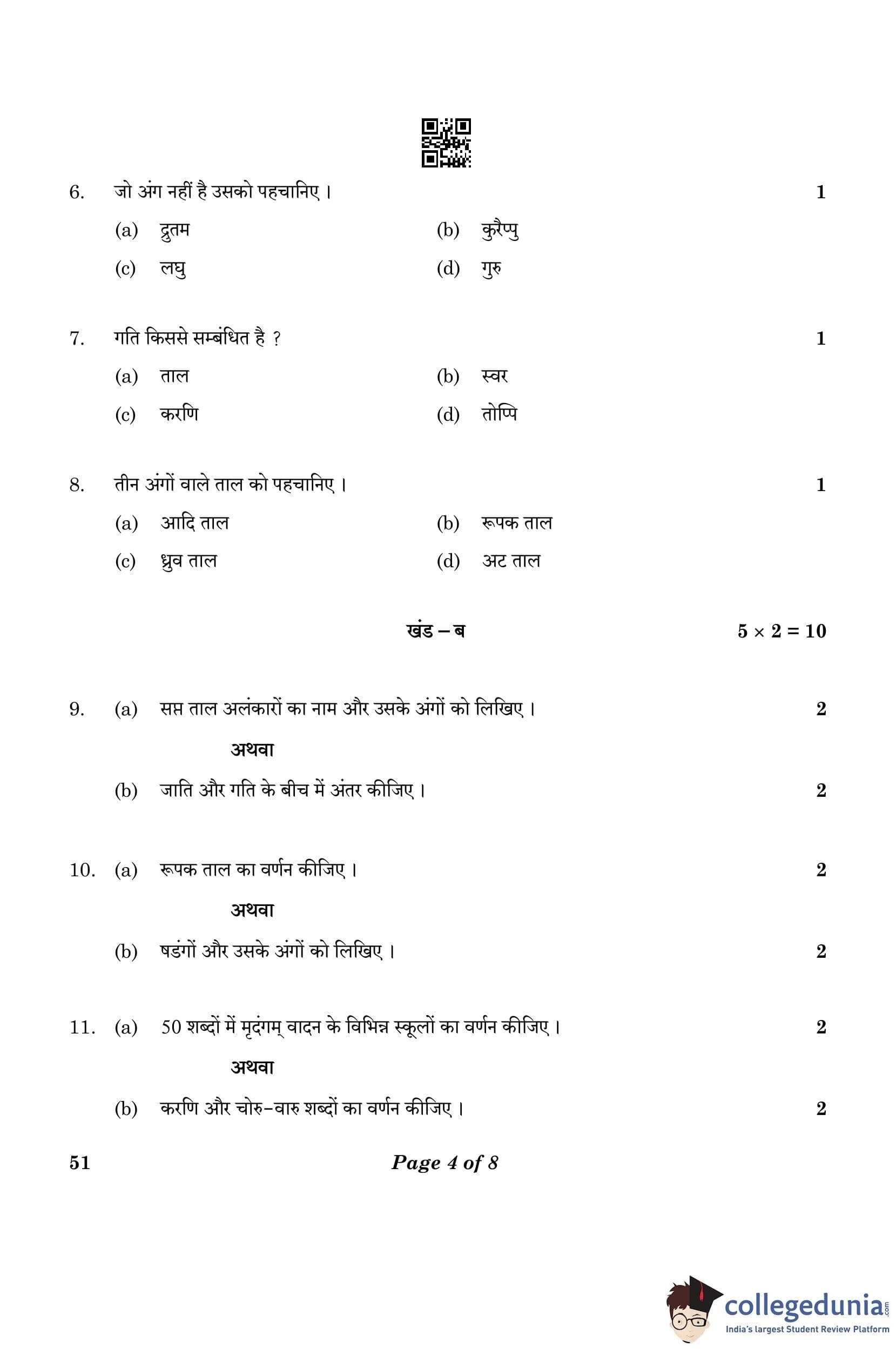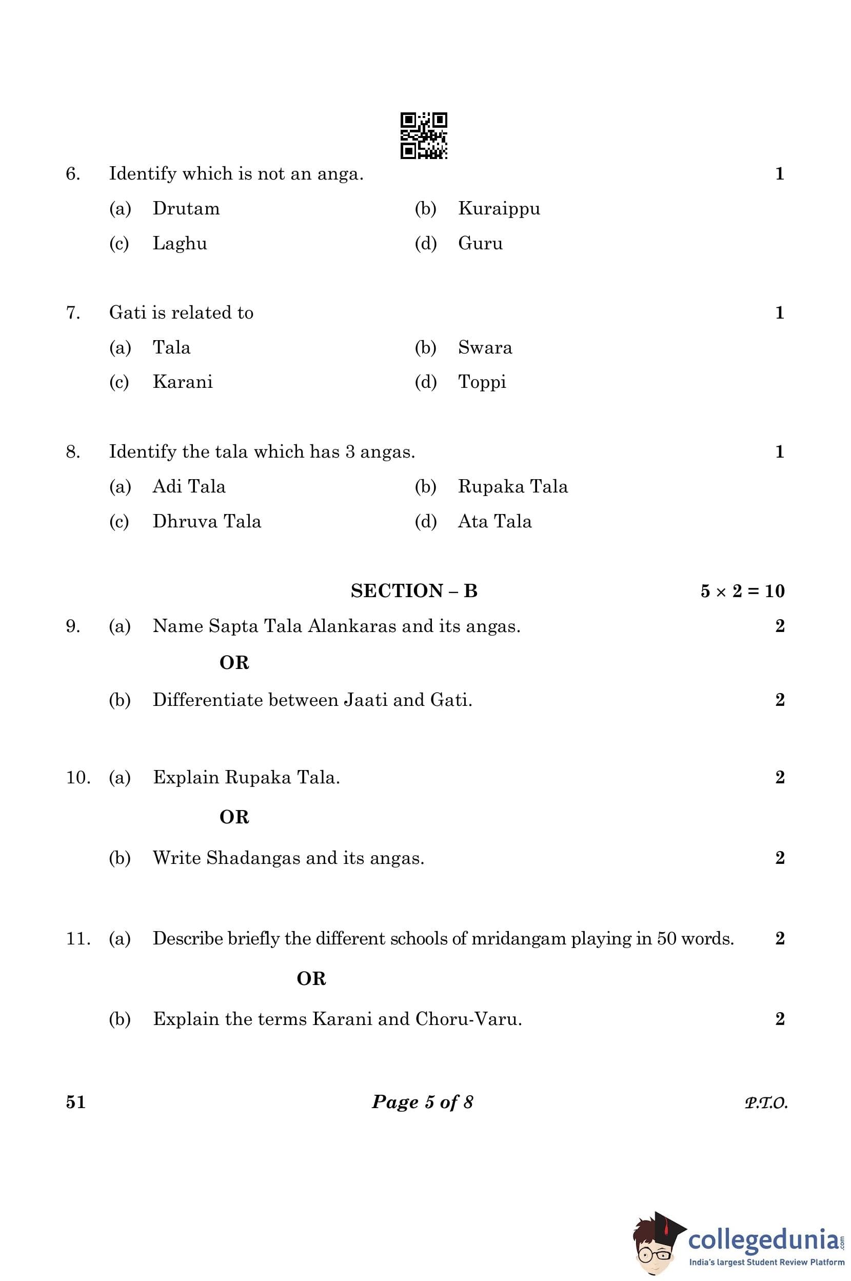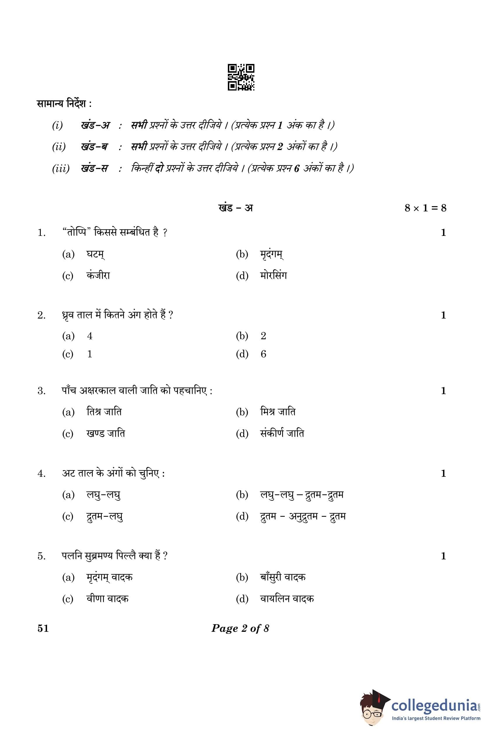 CBSE Class 10 Carnatic Music (Per Ins) Question Paper 2023 with Answer Key
