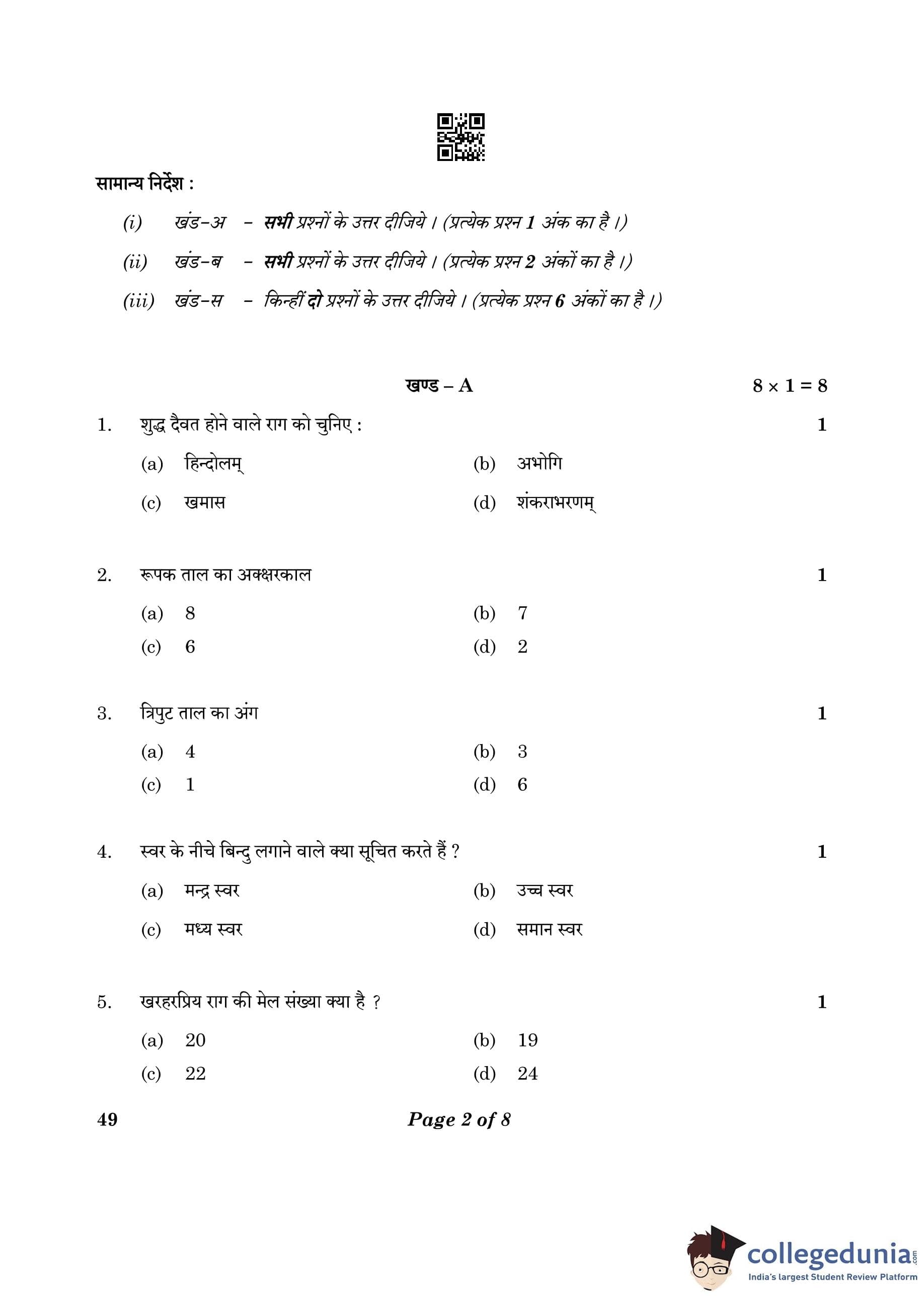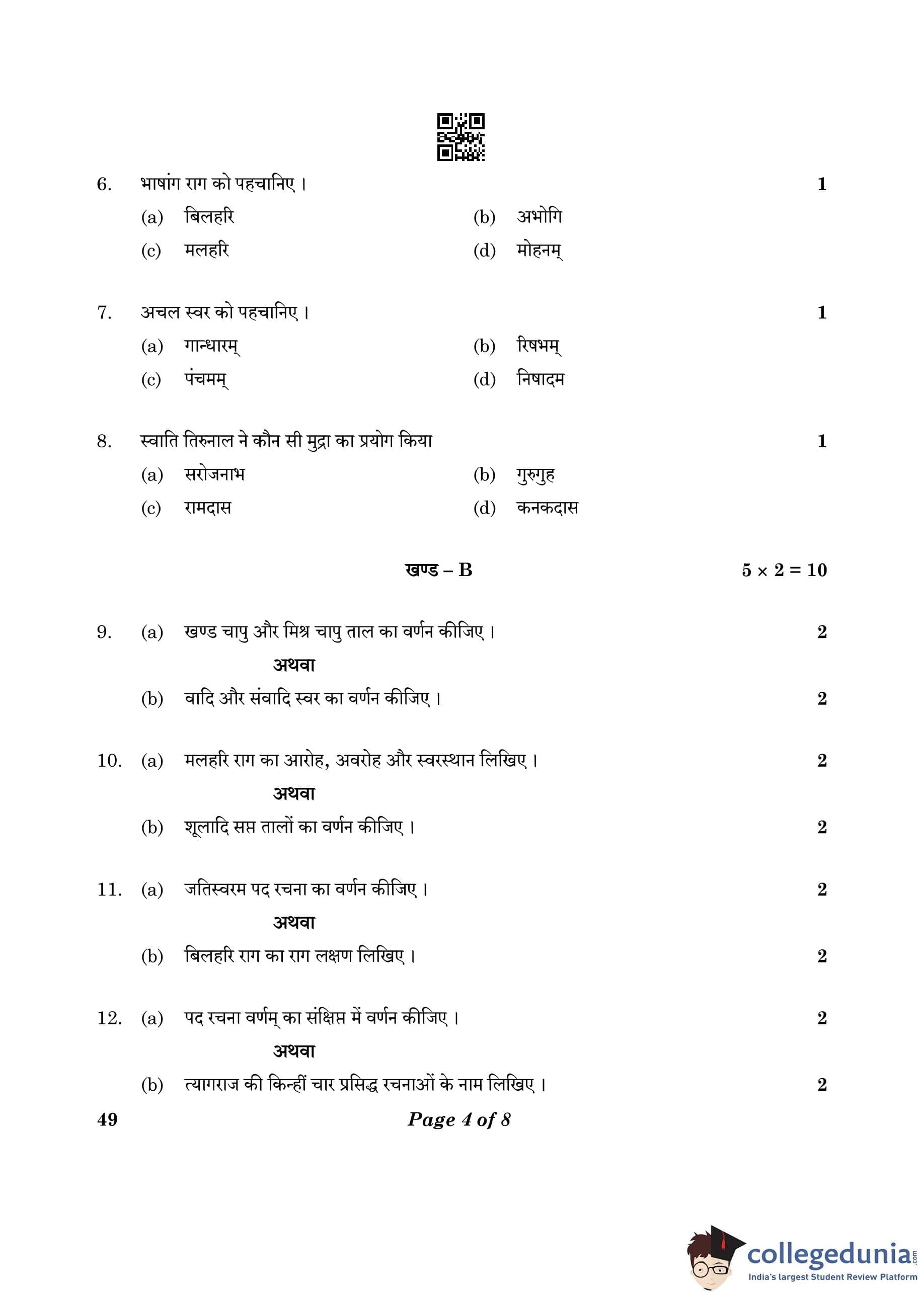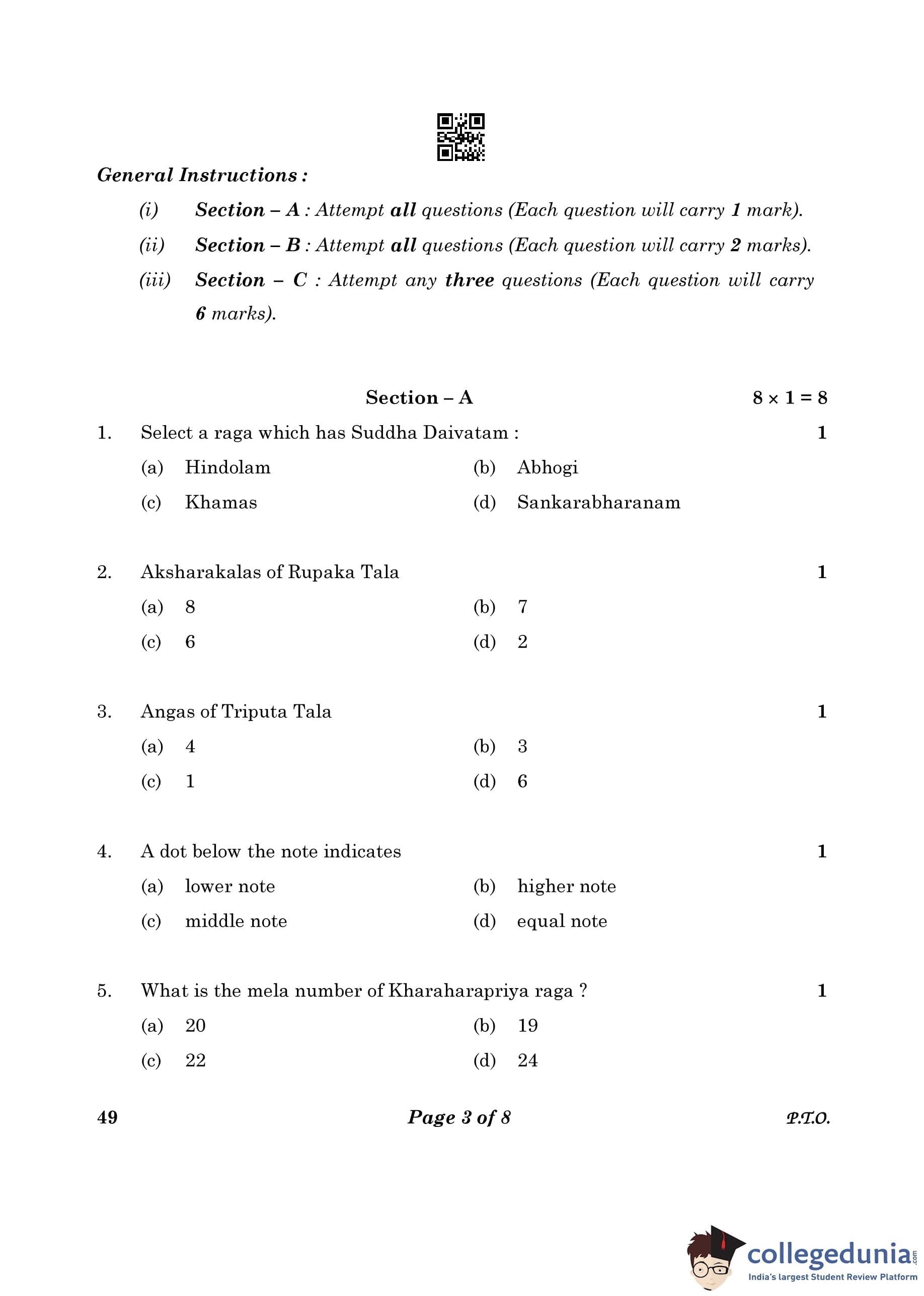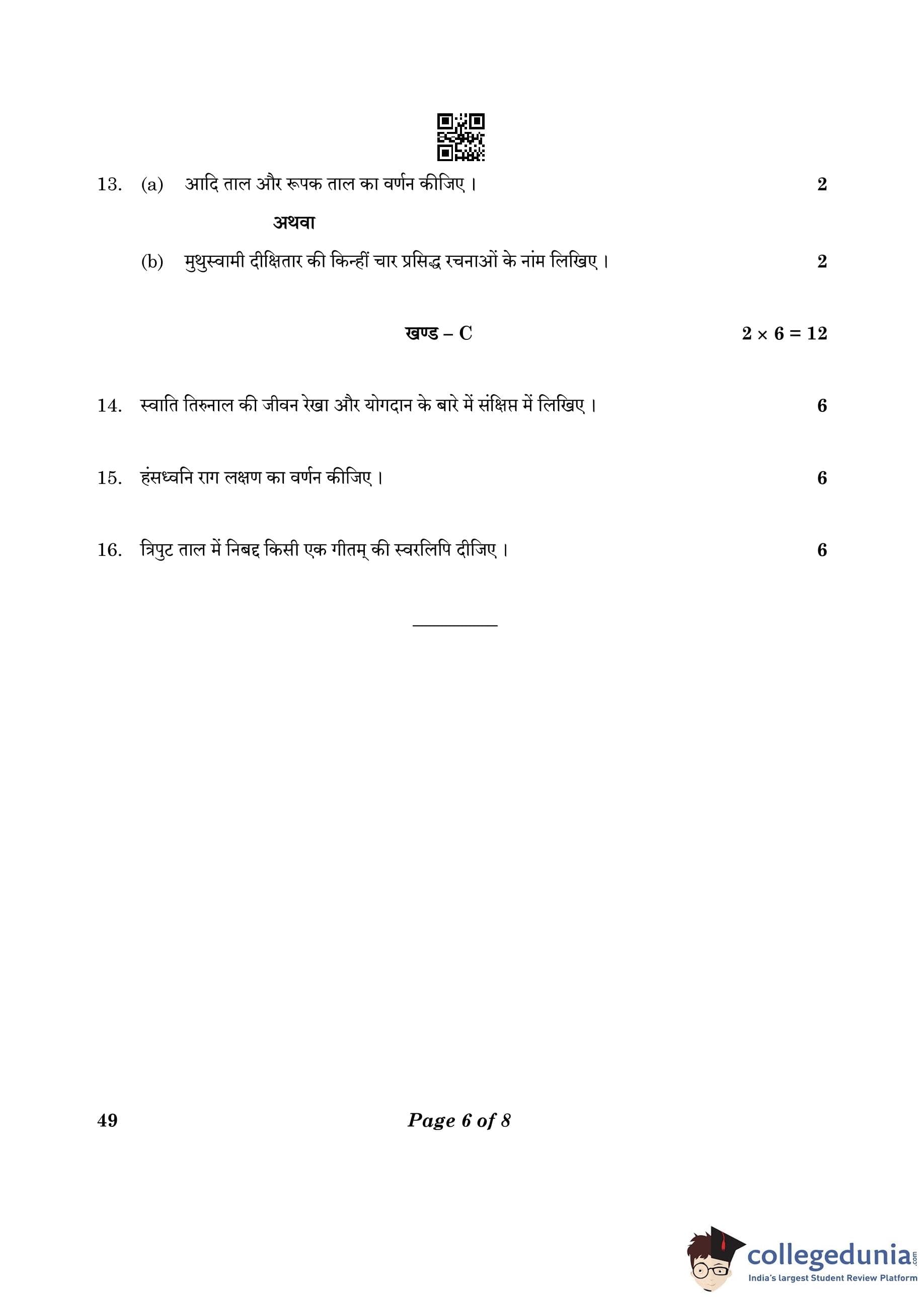 CBSE Class 10 Carnatic Music (Vocal) (Theory) Question Paper 2023 (Set 4- 49) with Answer Key pdf is available for download here. The exam was conducted by Central Board of Secondary Education on February 20, 2023. The question paper comprised a total of 16 questions divided among 3 sections.