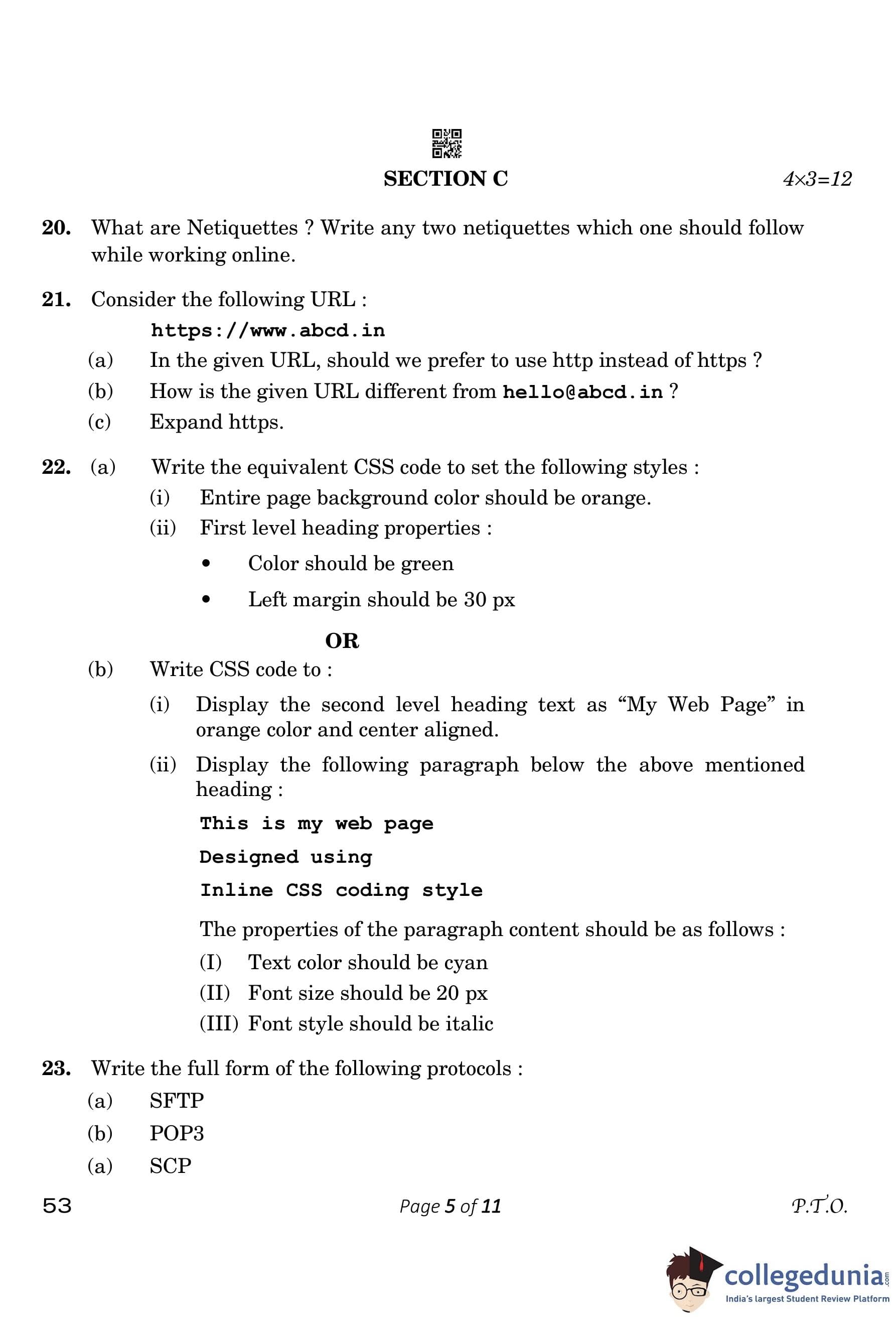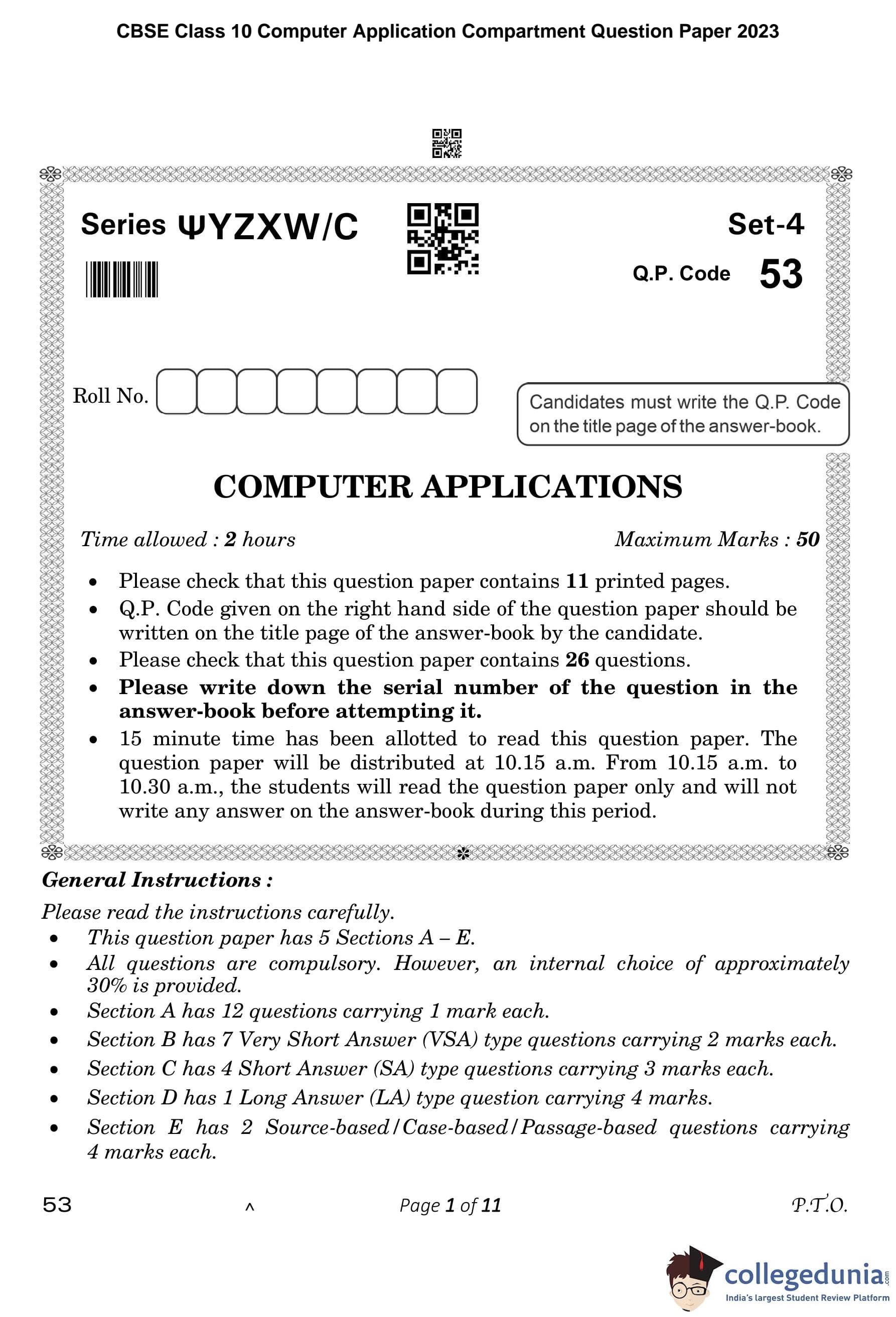 CBSE Class 10 Computer Application Compartment Question Paper 2023 with Answer Key