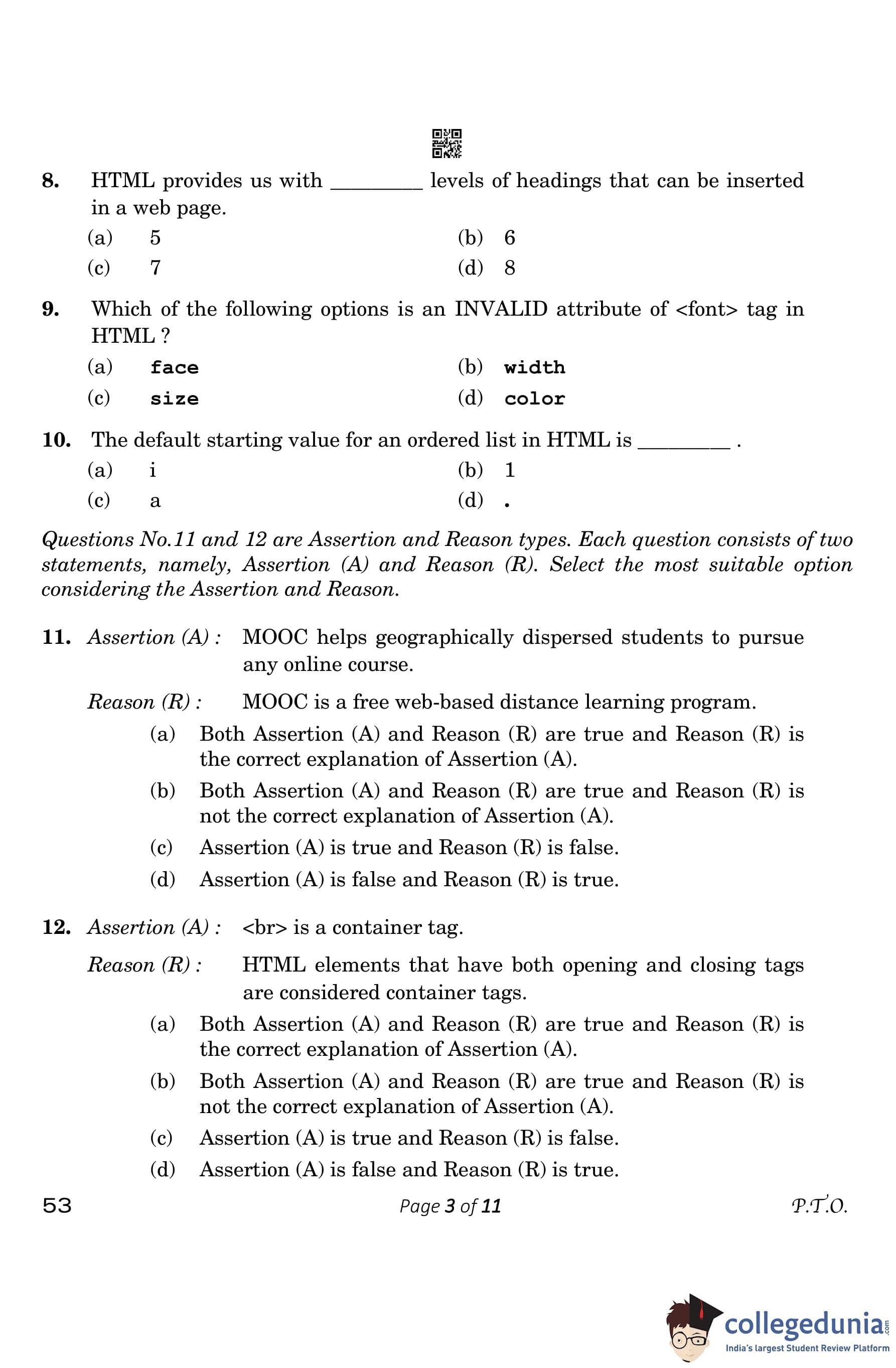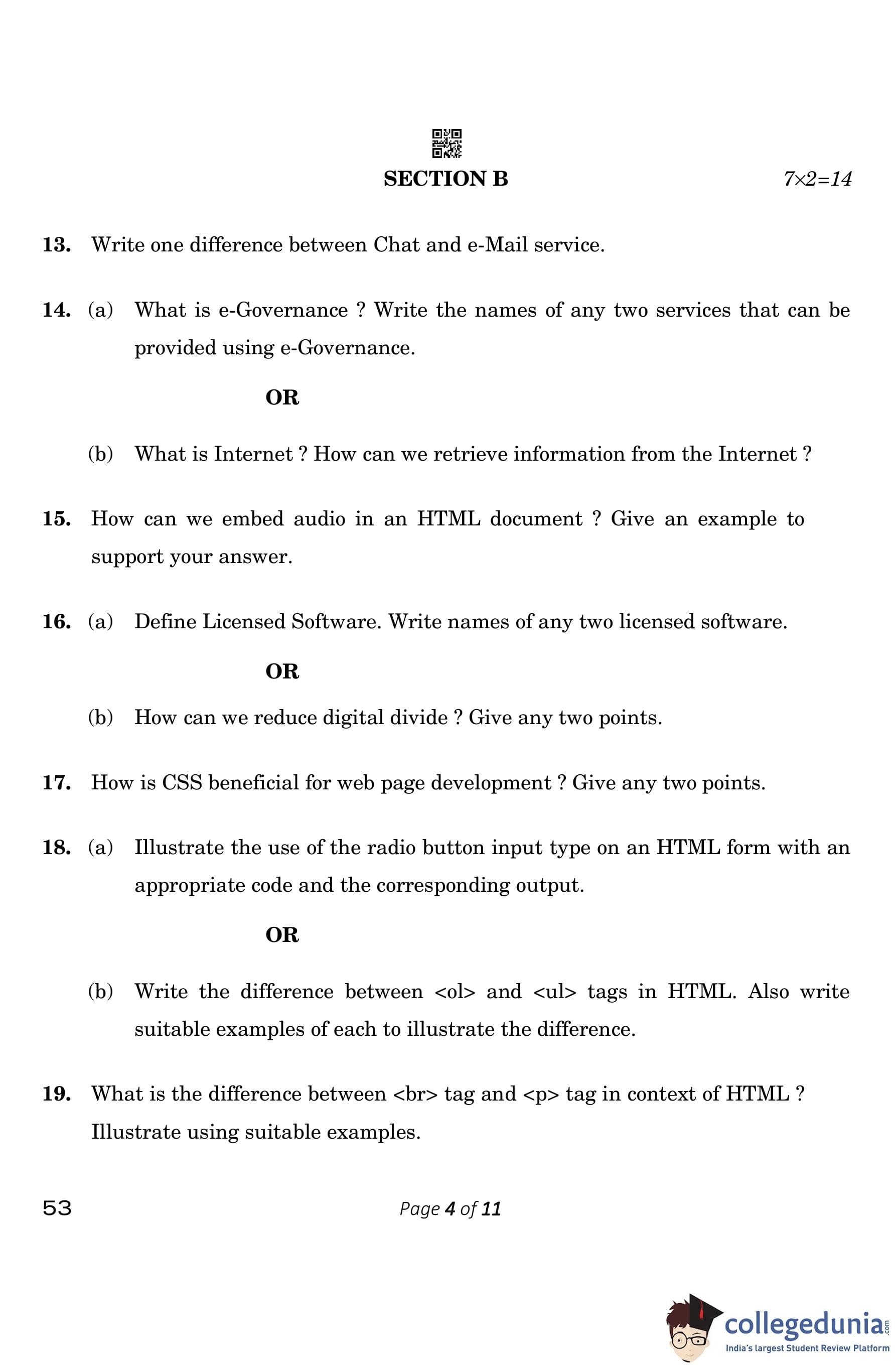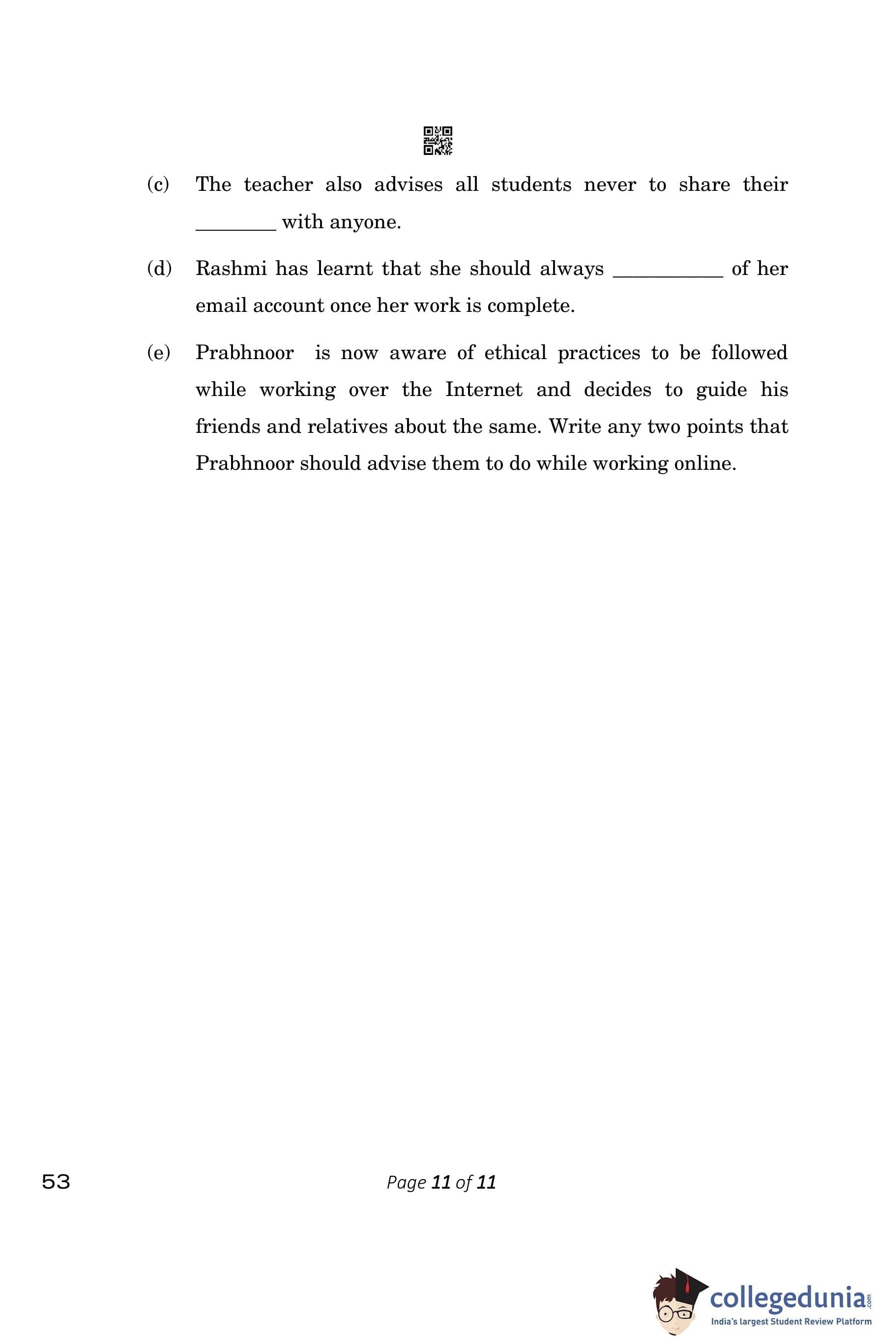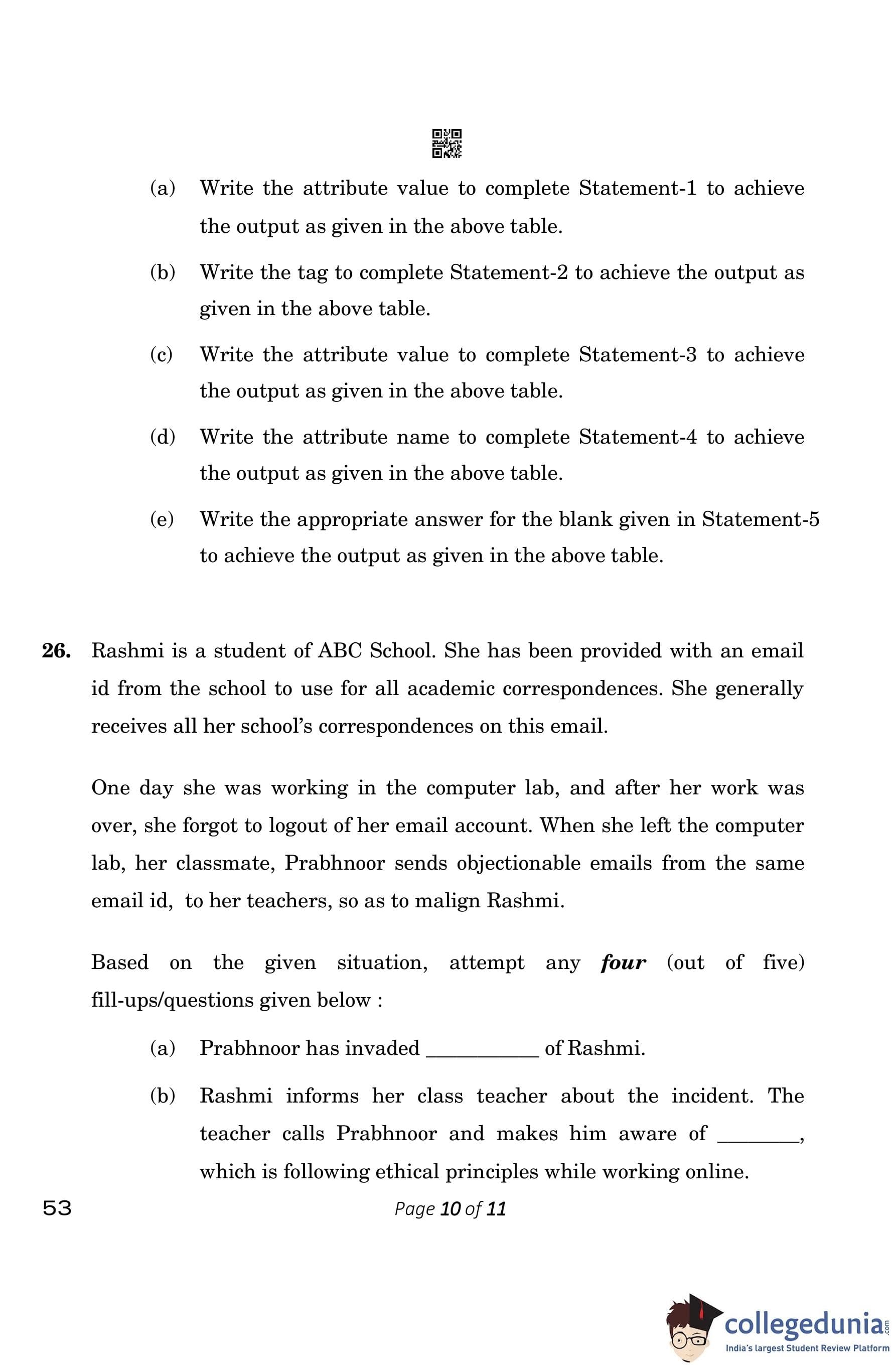 CBSE Class 10 Computer Application Question Paper 2023 (Set 4- 53) with Answer Key pdf is available for download here. The exam was conducted by Central Board of Secondary Education on March 13, 2023. The question paper comprised a total of 26 questions divided among 5 sections.