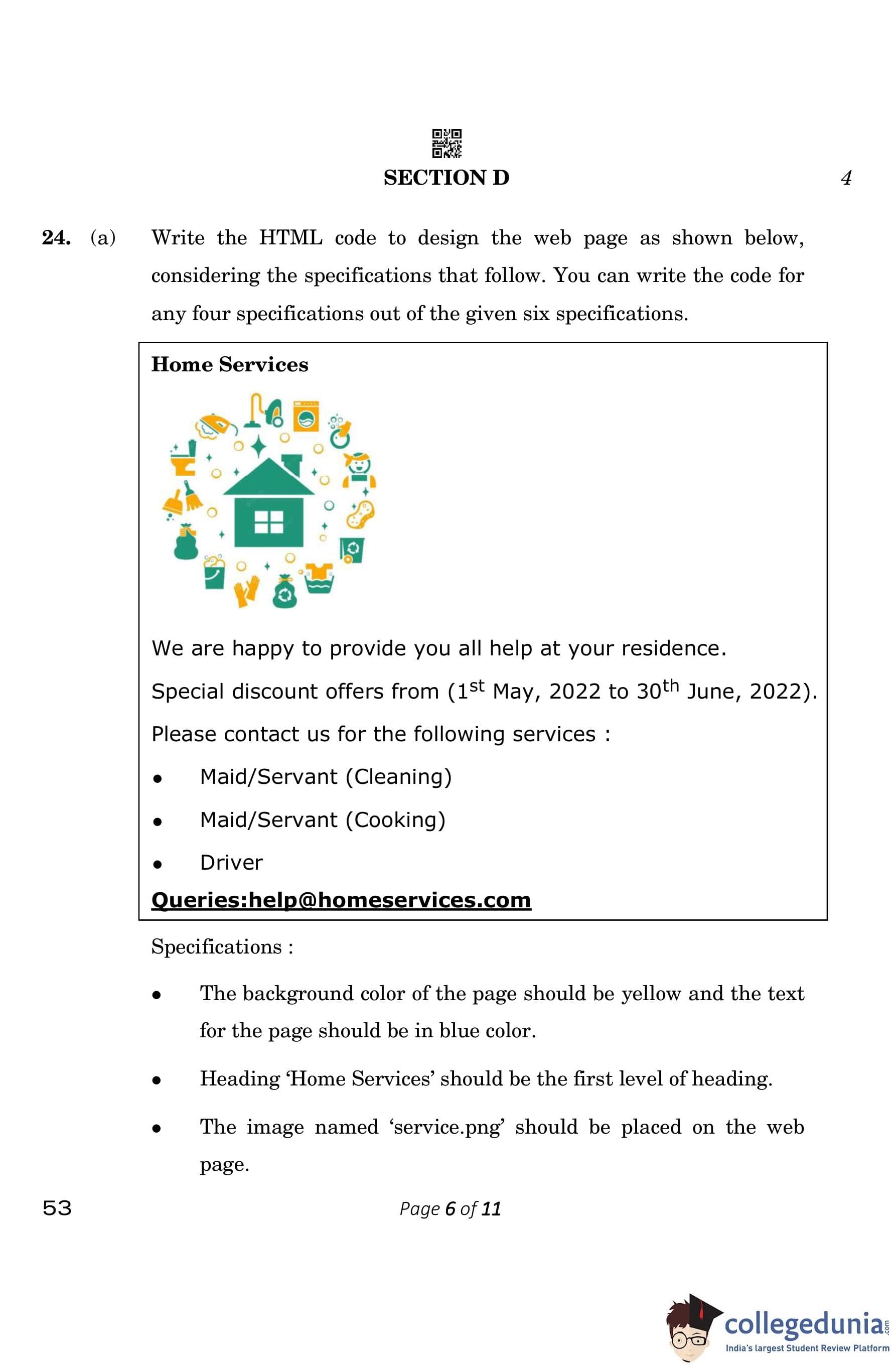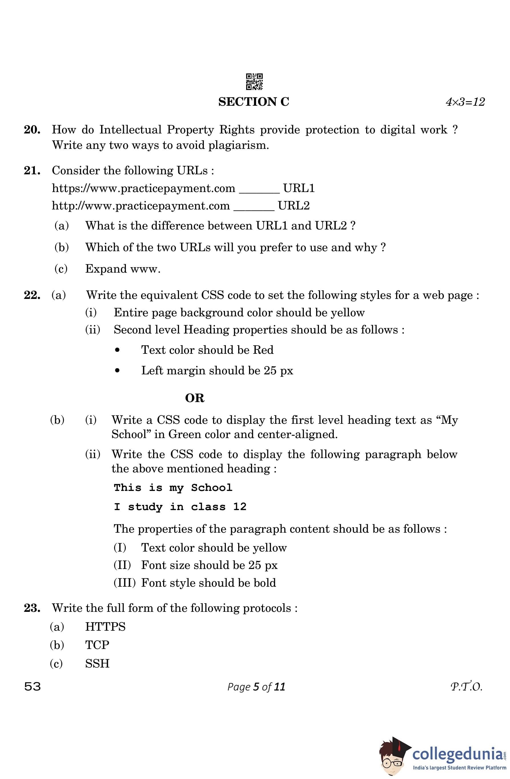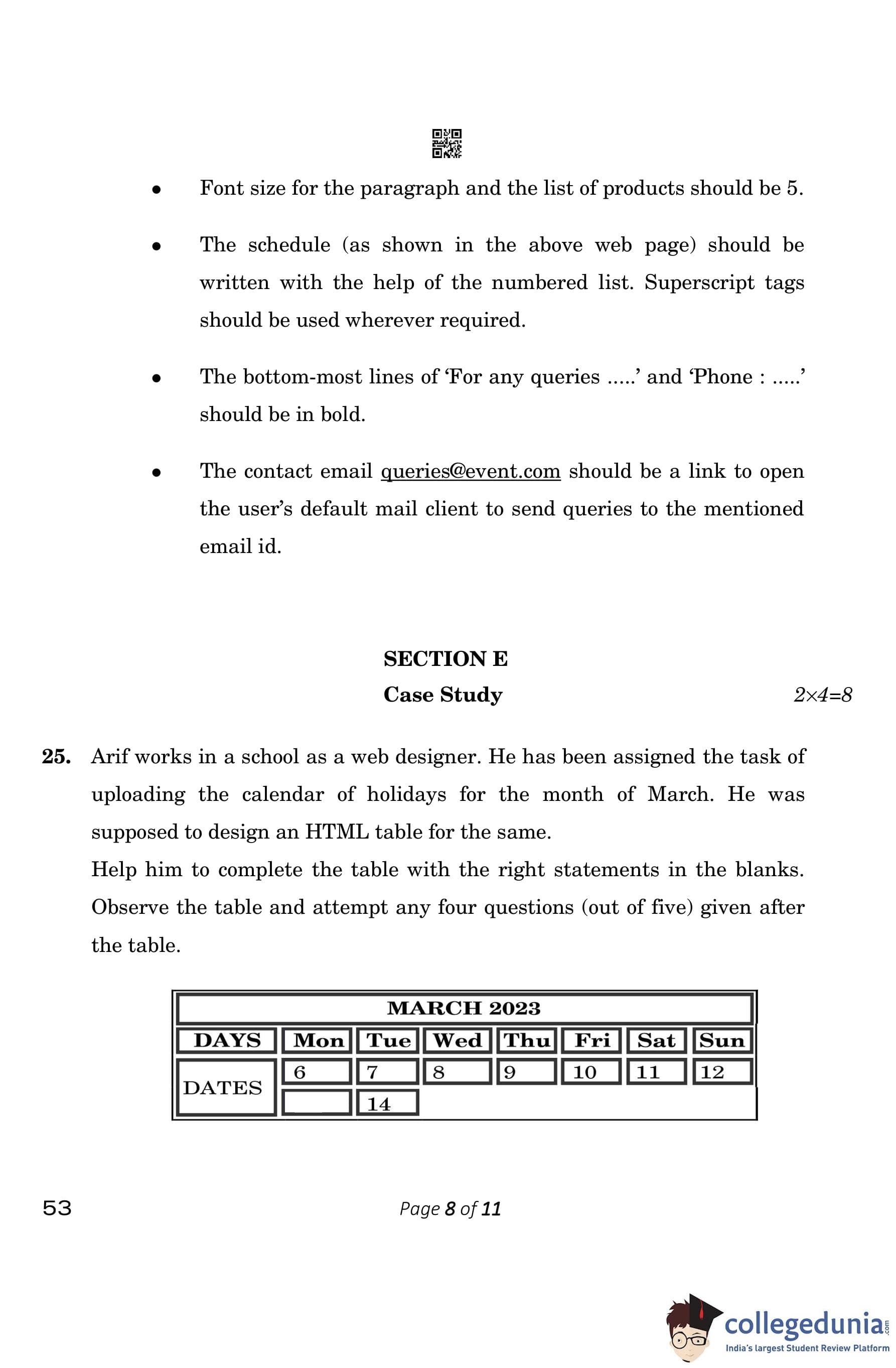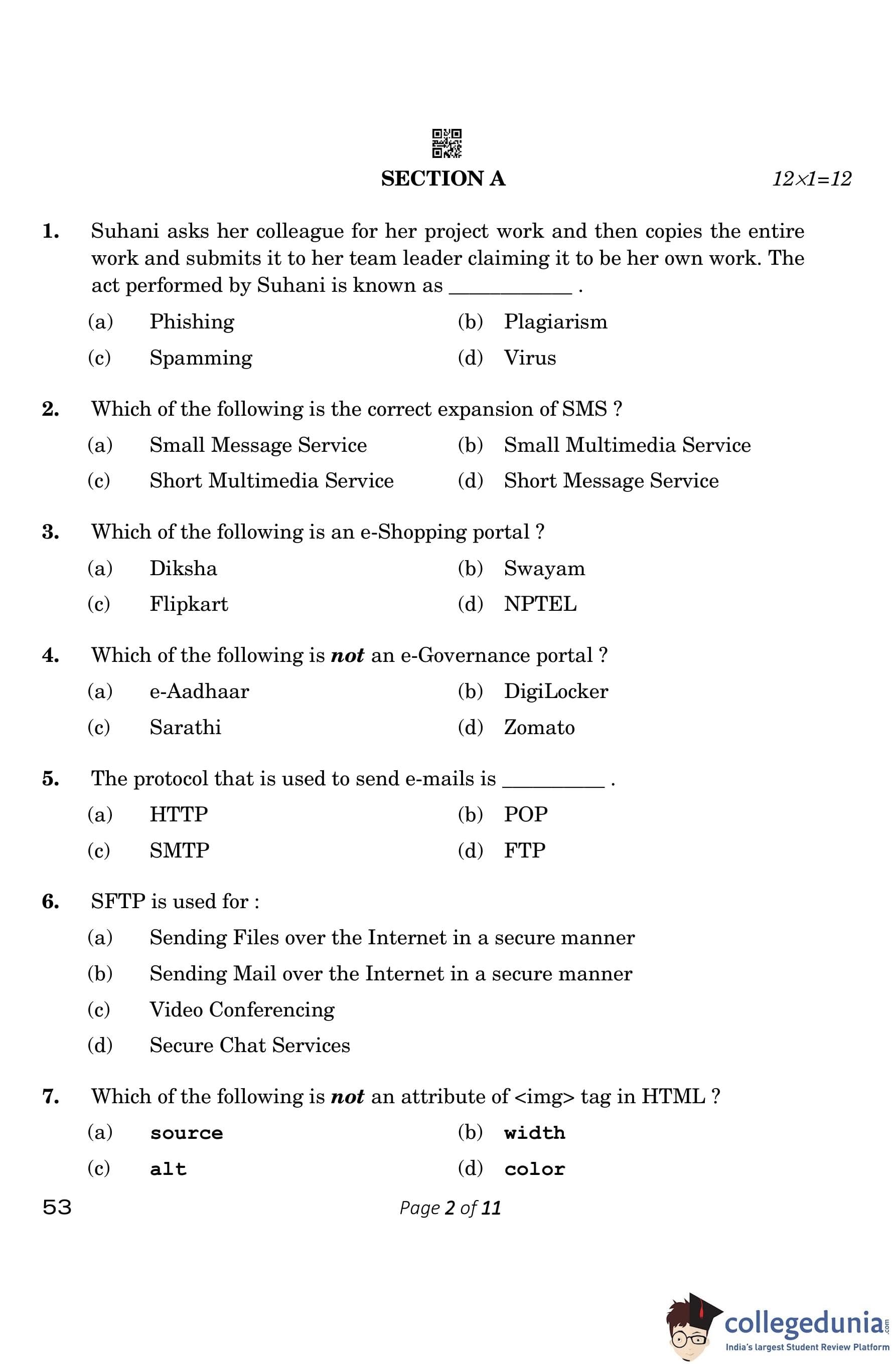 CBSE Class 10 Computer Application Question Paper 2023 (Set 4- 53) with Answer Key pdf is available for download here. The exam was conducted by Central Board of Secondary Education on March 13, 2023. The question paper comprised a total of 26 questions divided among 5 sections.