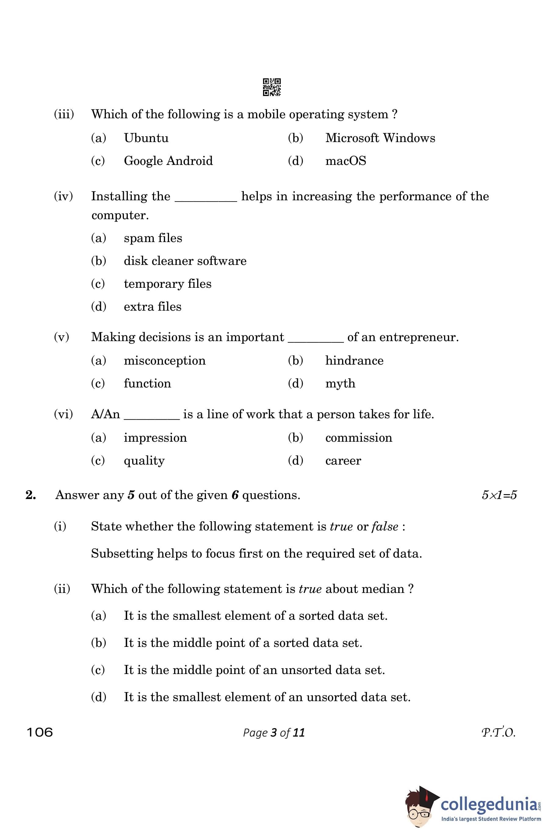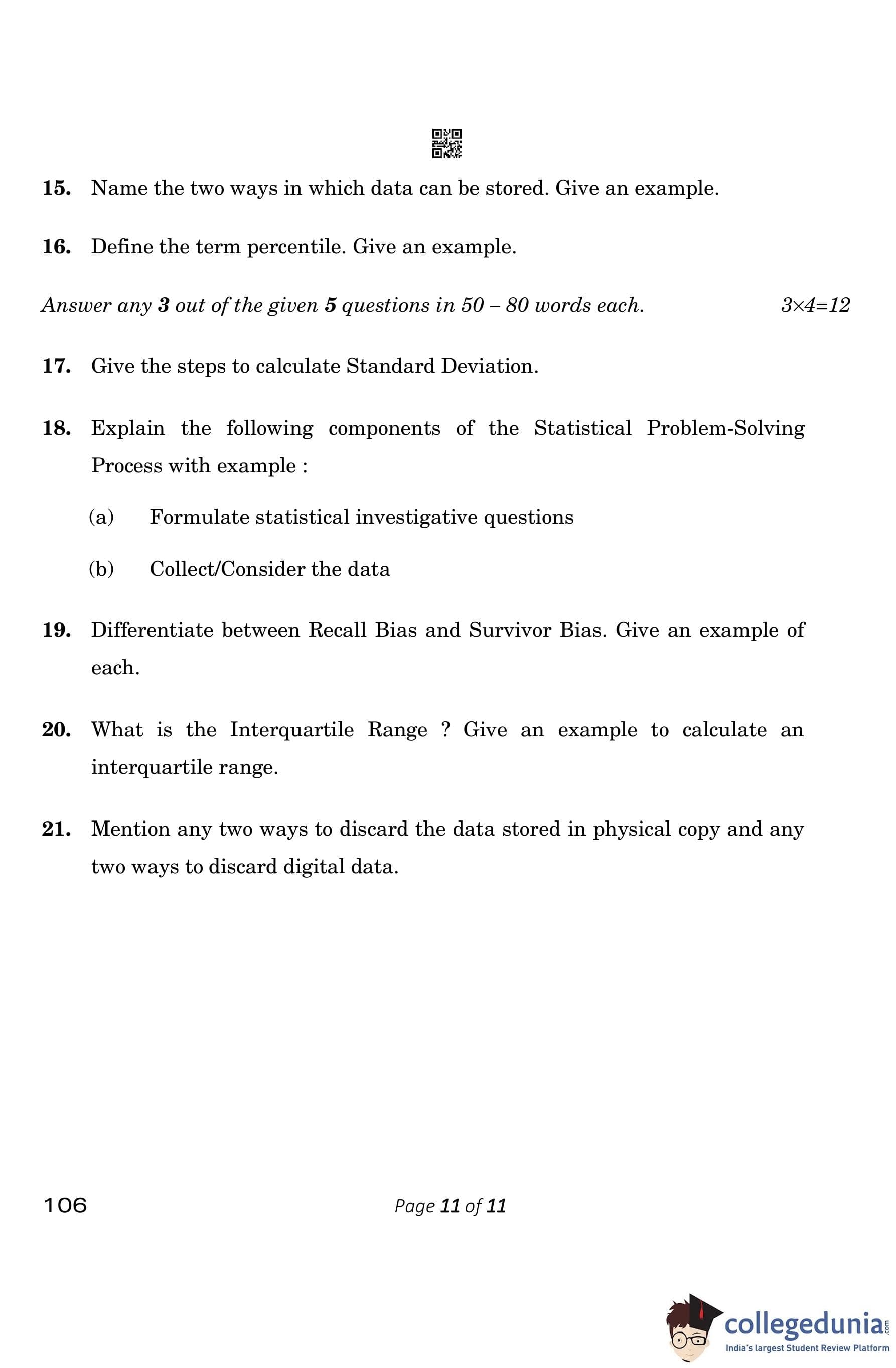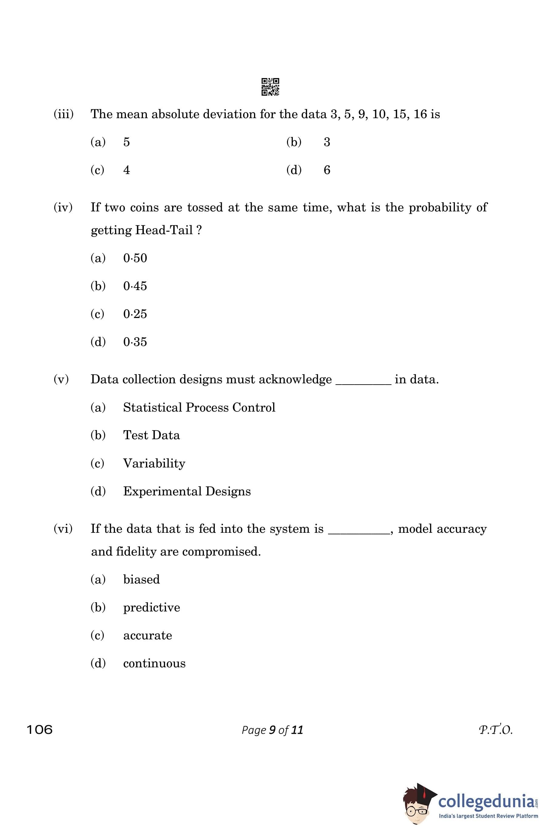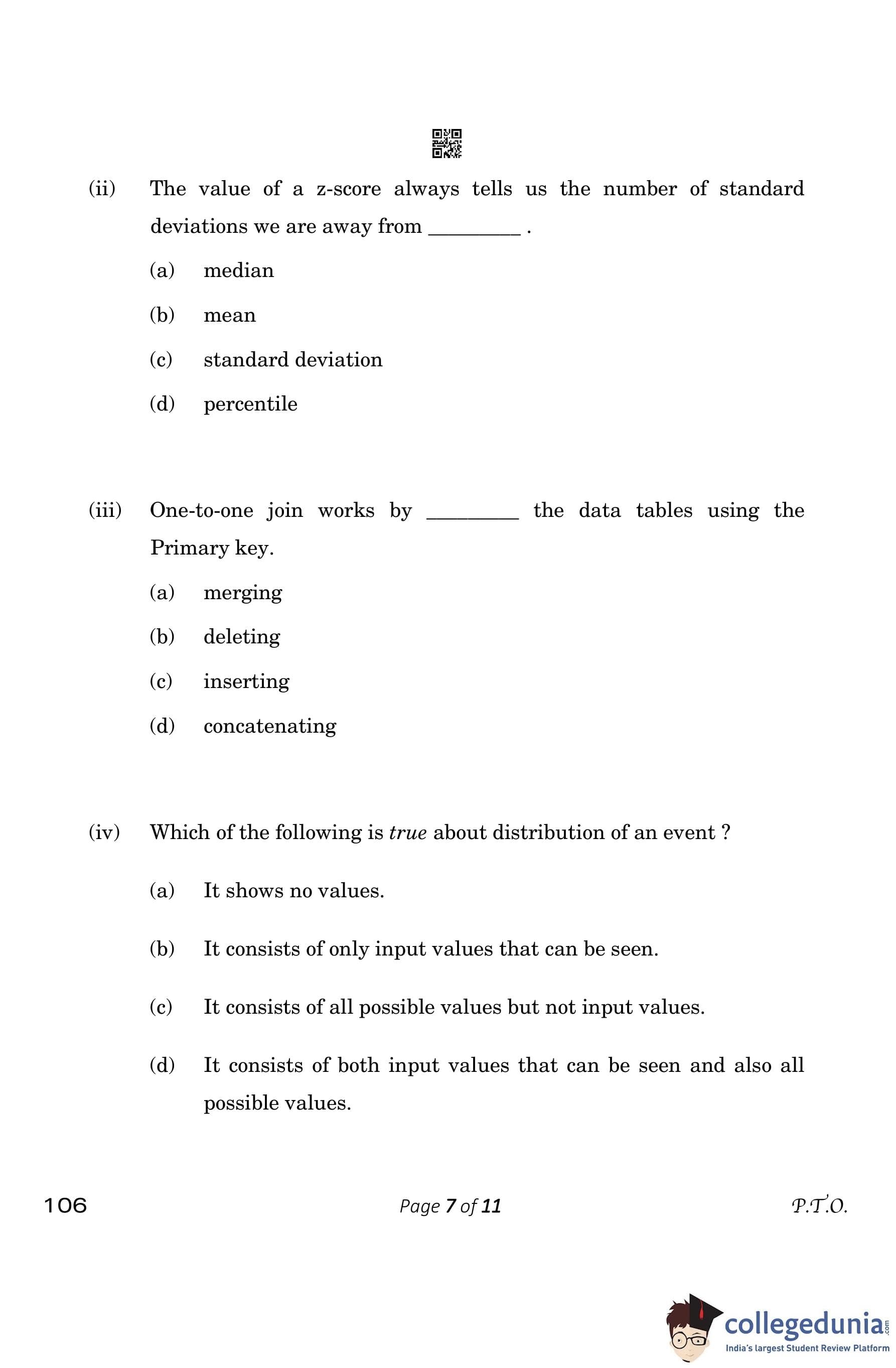 CBSE Class 10 Data Science Question Paper 2023 (Set 4- 106) with Answer Key pdf is available for download here. The exam was conducted by Central Board of Secondary Education on February 16, 2023. The question paper comprised a total of 21 questions divided among 2 sections.