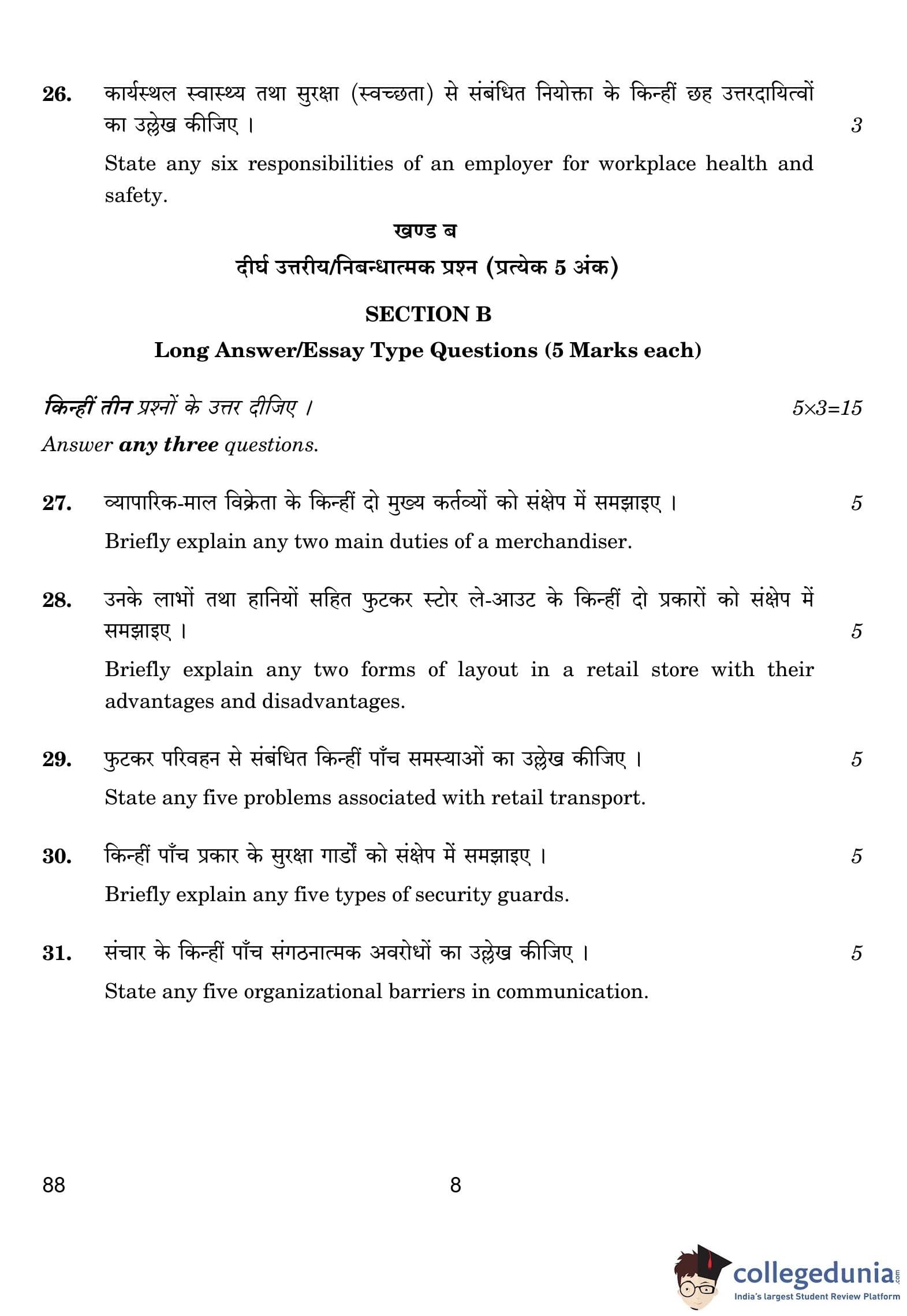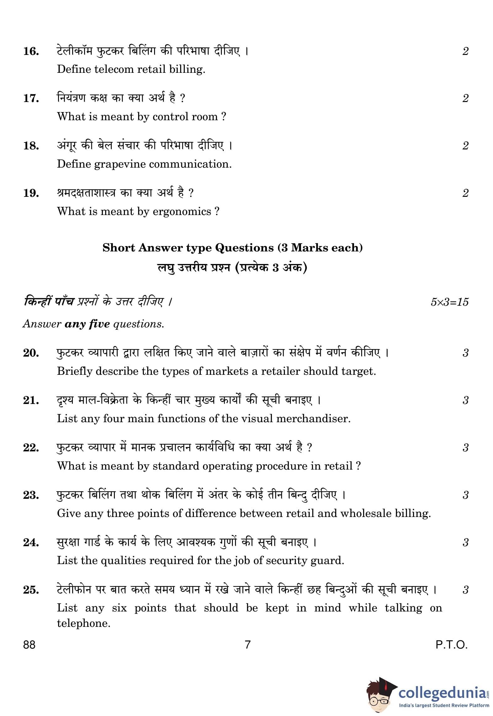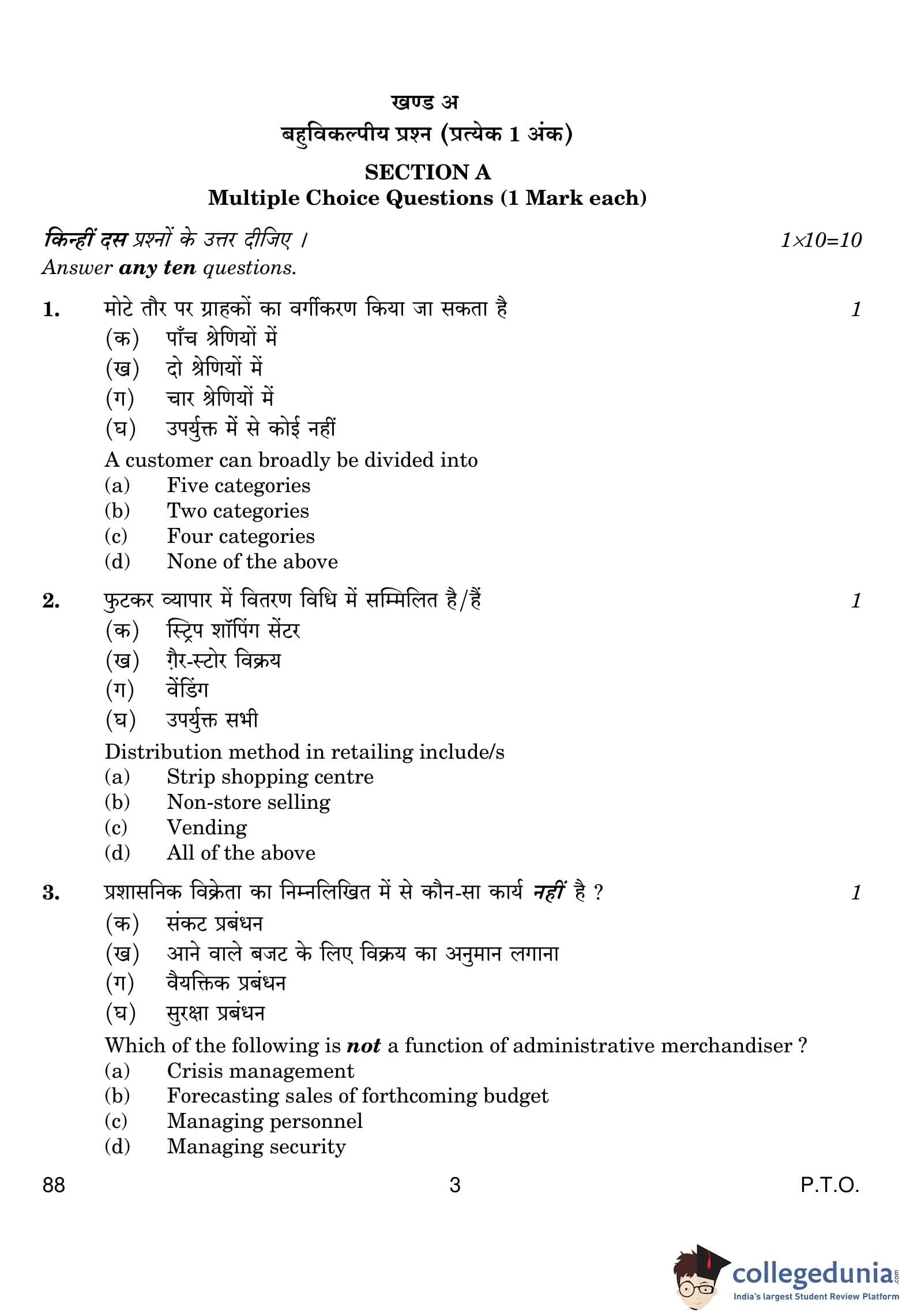 CBSE Class 10 Dynamics Of Retailing Question Paper 2019 with Answer Key (February 27)