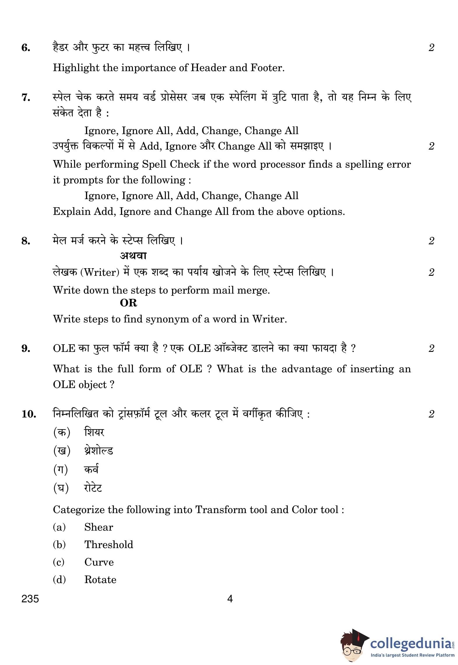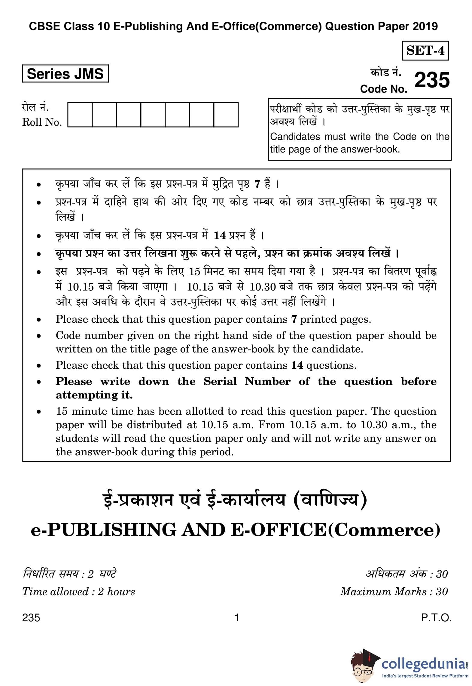 CBSE Class 10 E-Publishing And E-Office(Commerce) Question Paper 2019 with Answer Key (February 21)