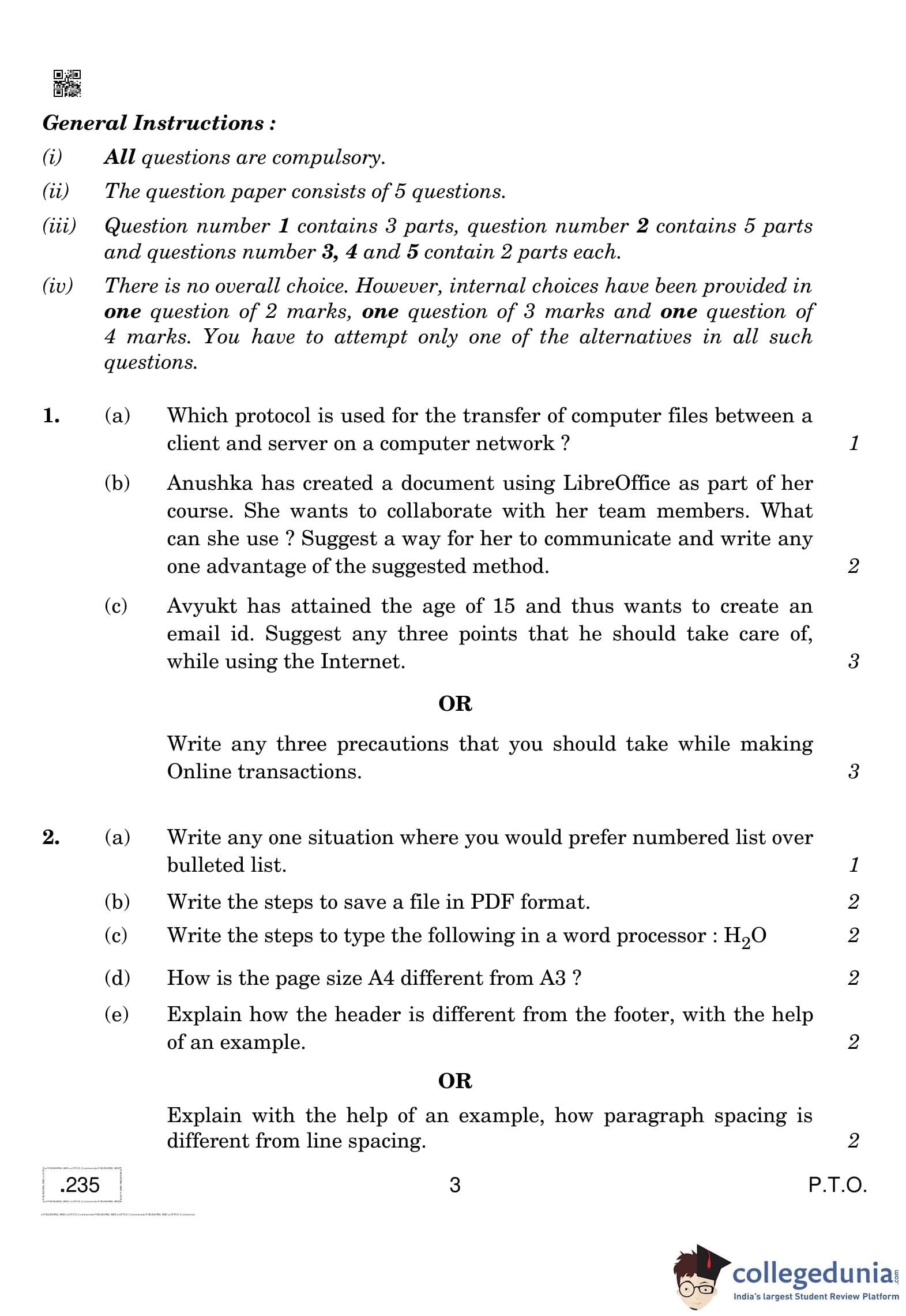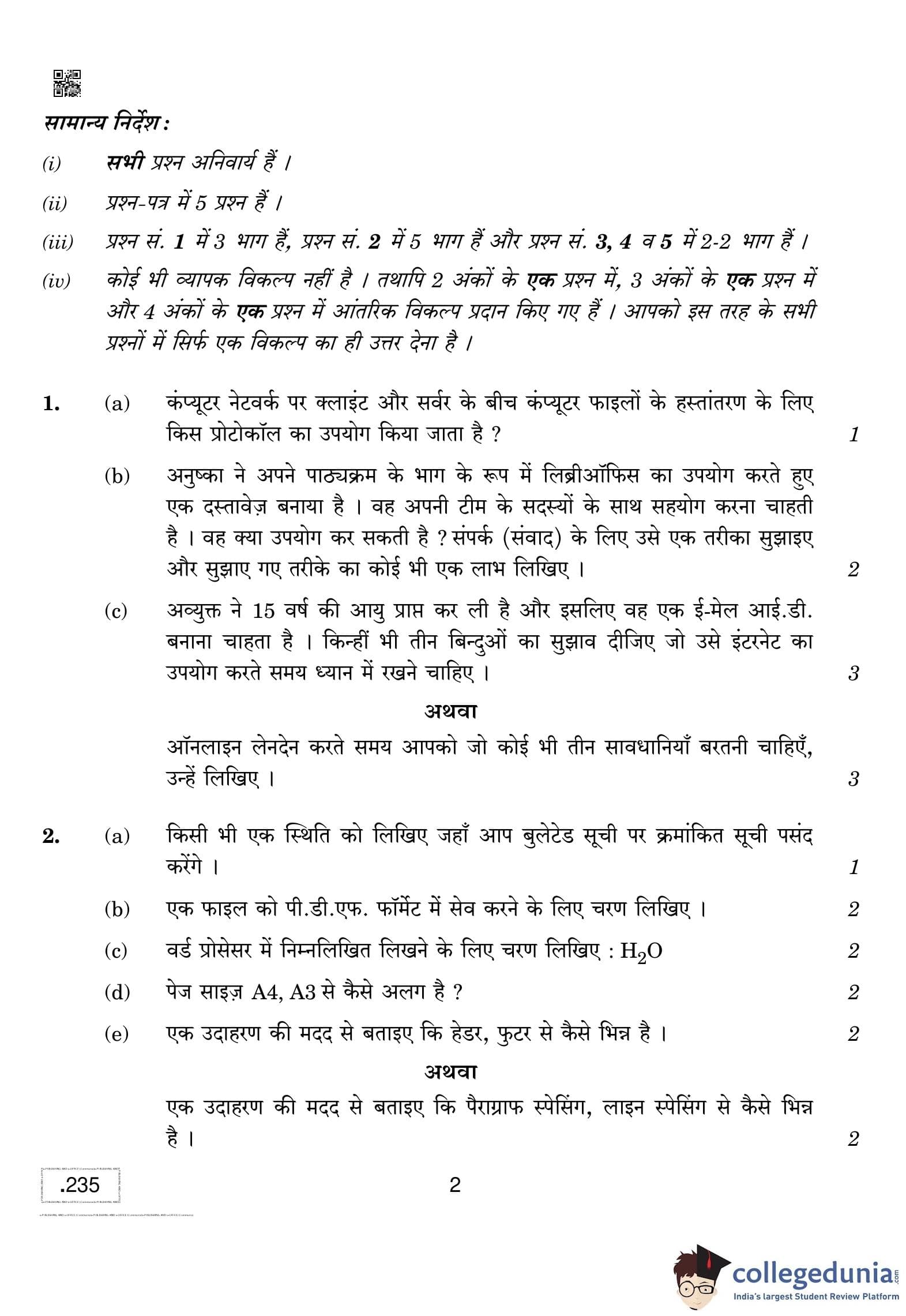 CBSE Class 10 E-Publishing And E-Office Question Paper 2020 with Answer Key (February 17)