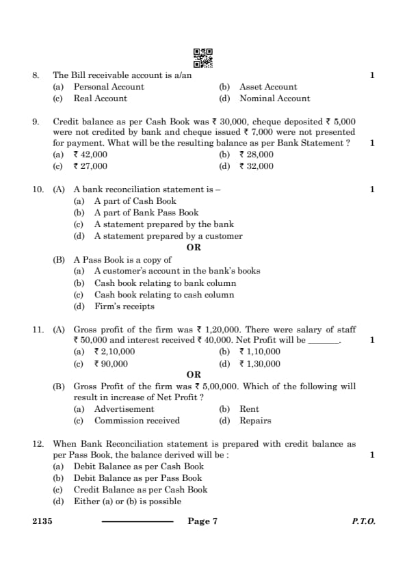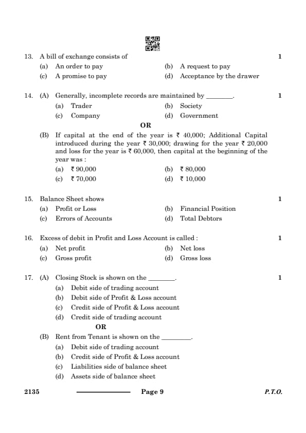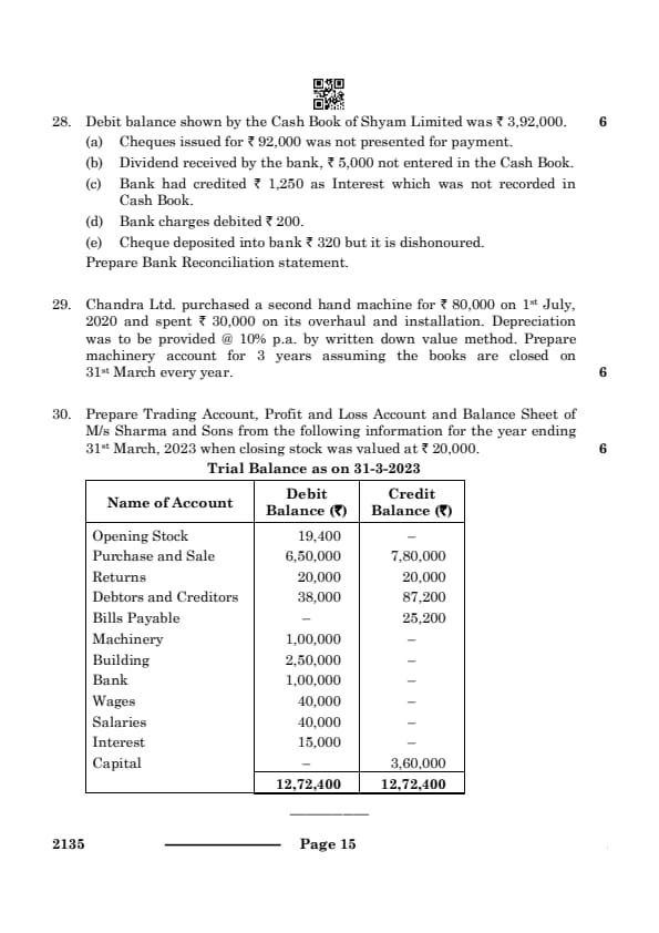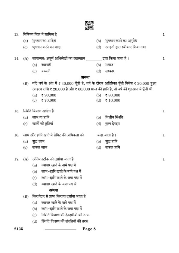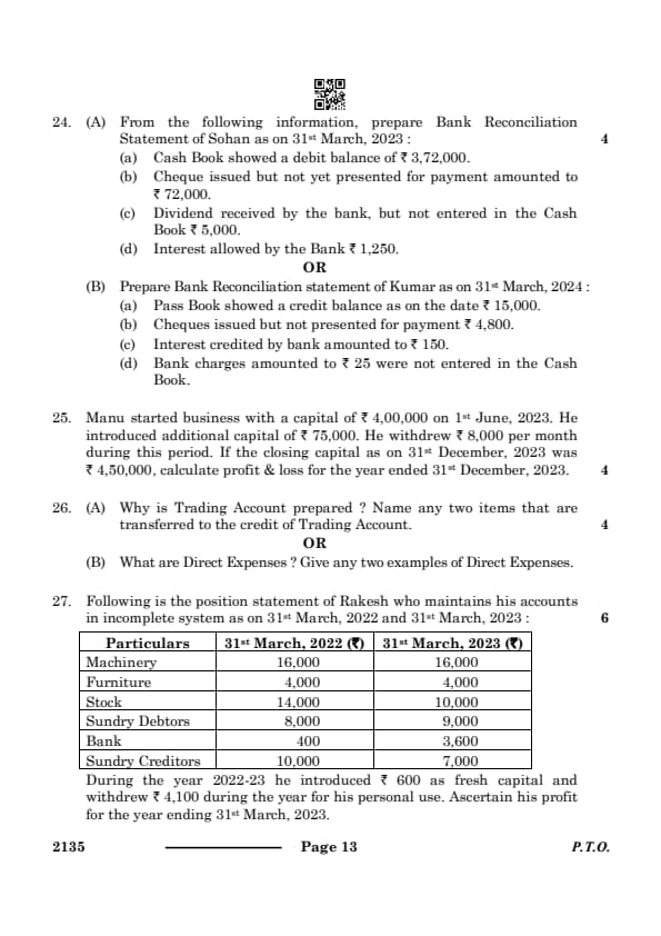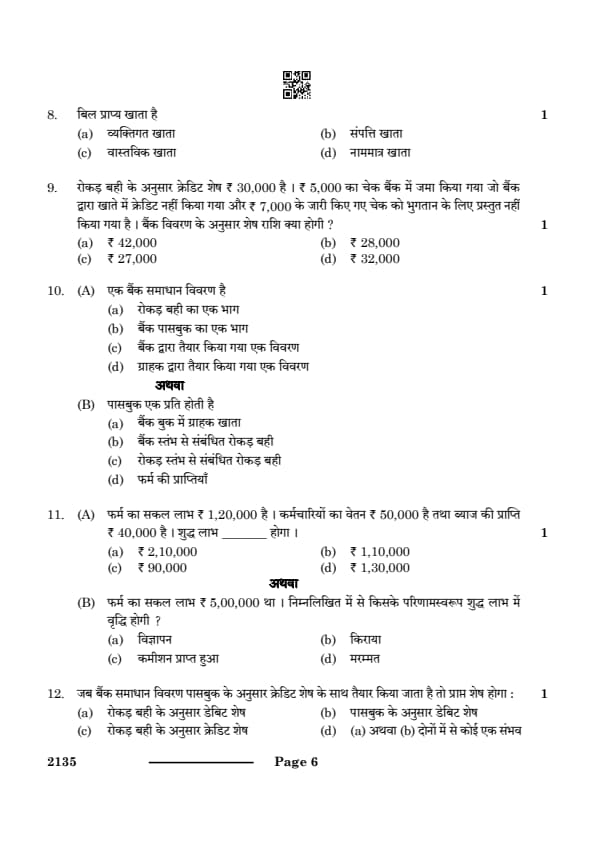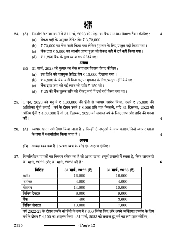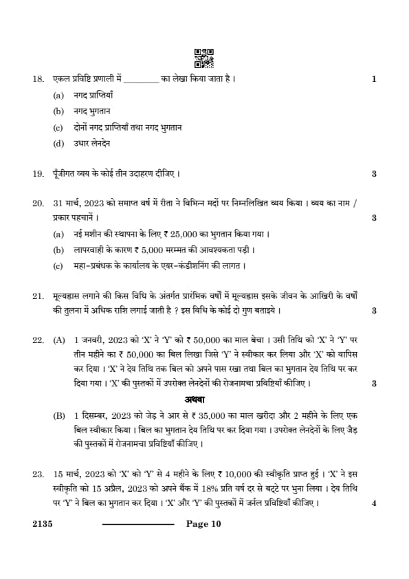 CBSE Class 10 ELEMENTS OF BOOK-KEEPING & ACCOUNTANCY Question Paper 2024 Set 4 (135) with Answer Key