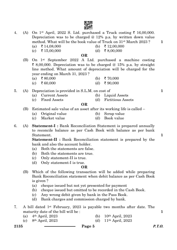 Capital, current assets, and liquid assets, on the other hand, are not depreciated. Capital refers to the funds invested in the business, while current and liquid assets are assets that are expected to be consumed or converted into cash within one year. These assets do not experience depreciation because they are not subject to the same wear and tear as fixed assets. Therefore, depreciation is only applicable to fixed assets, making option (a) the correct choice. Quick Tip: Depreciation is a non-cash expense that applies only to tangible fixed assets that have a limited useful life, such as buildings, machinery, or vehicles.