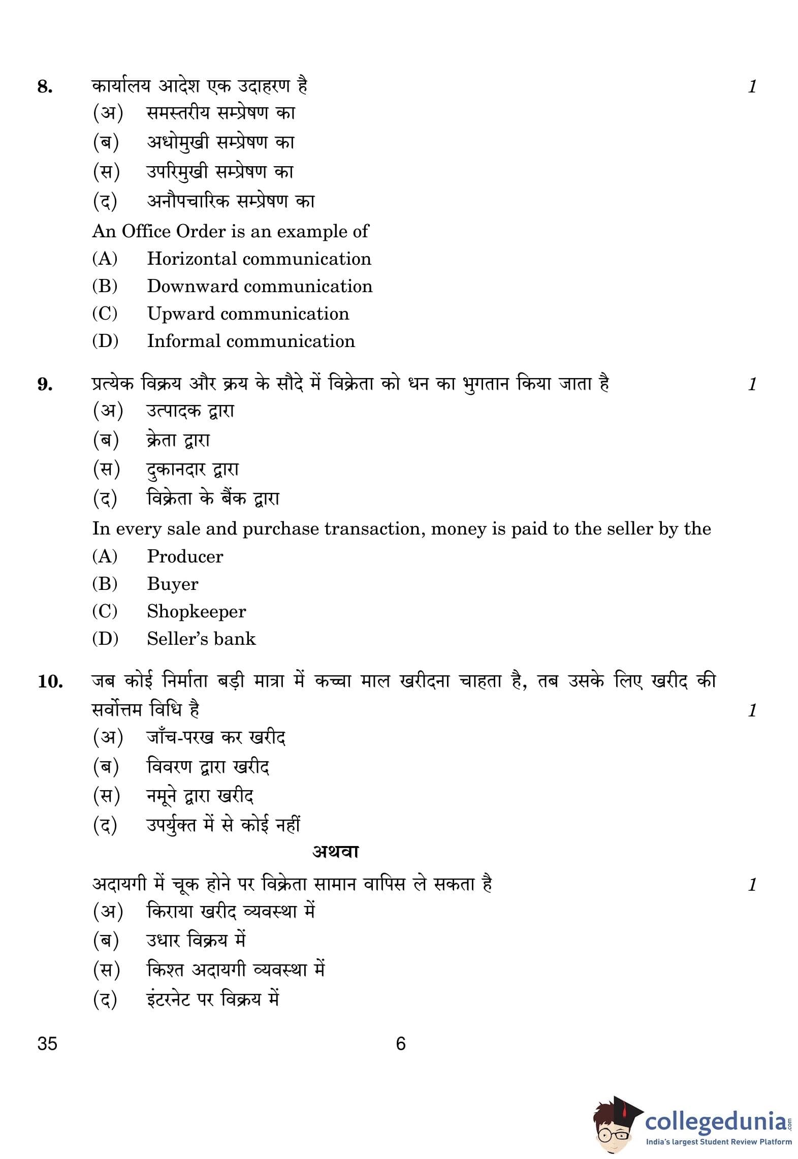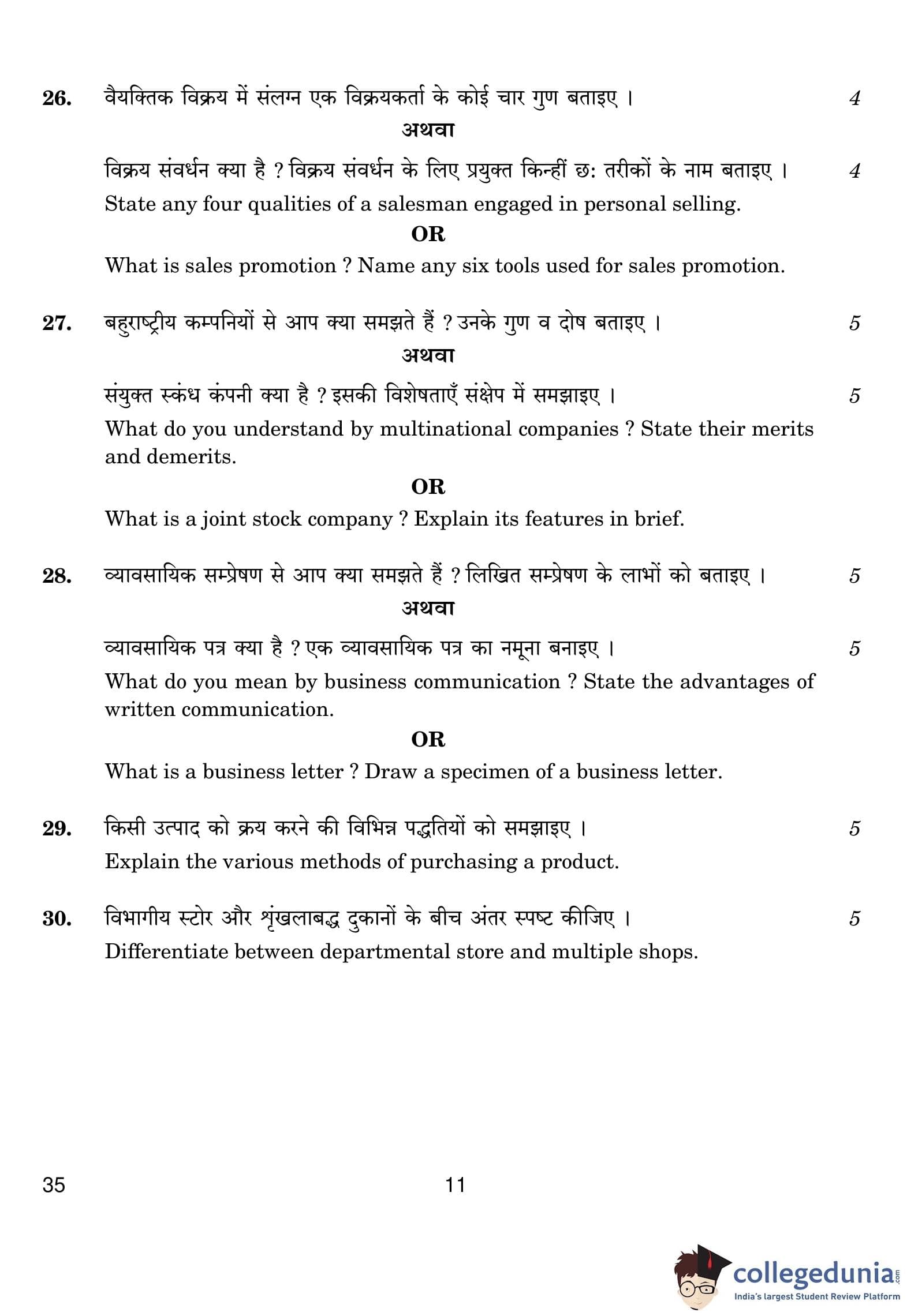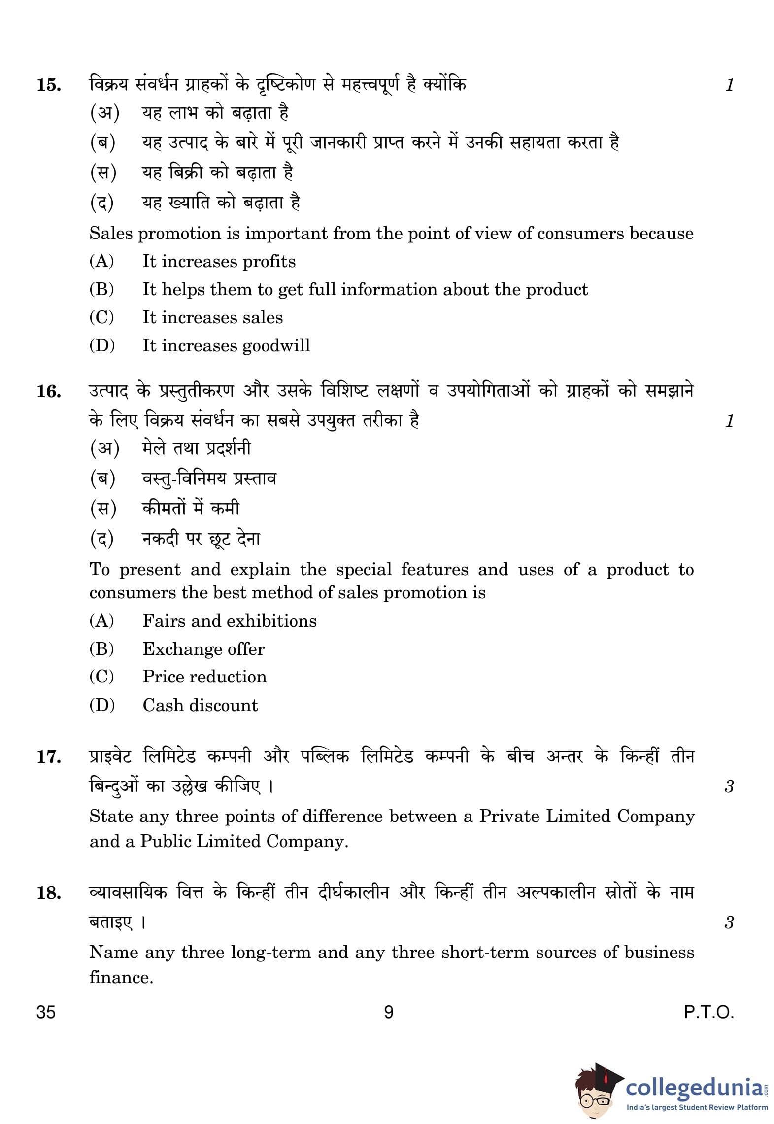 CBSE Class 10 Elements Of Business (Commerce) Question Paper 2019 with Answer Key (February 27)