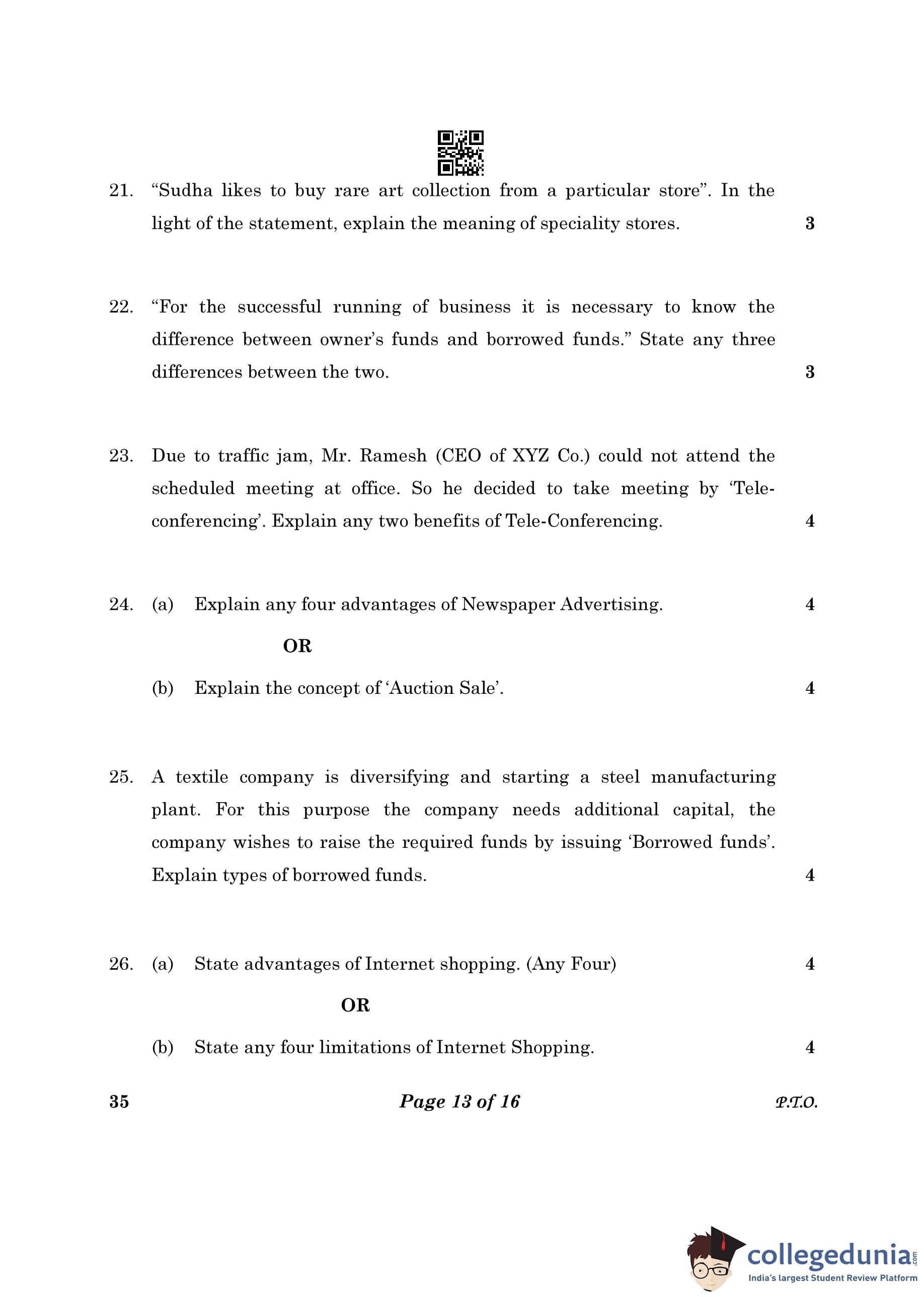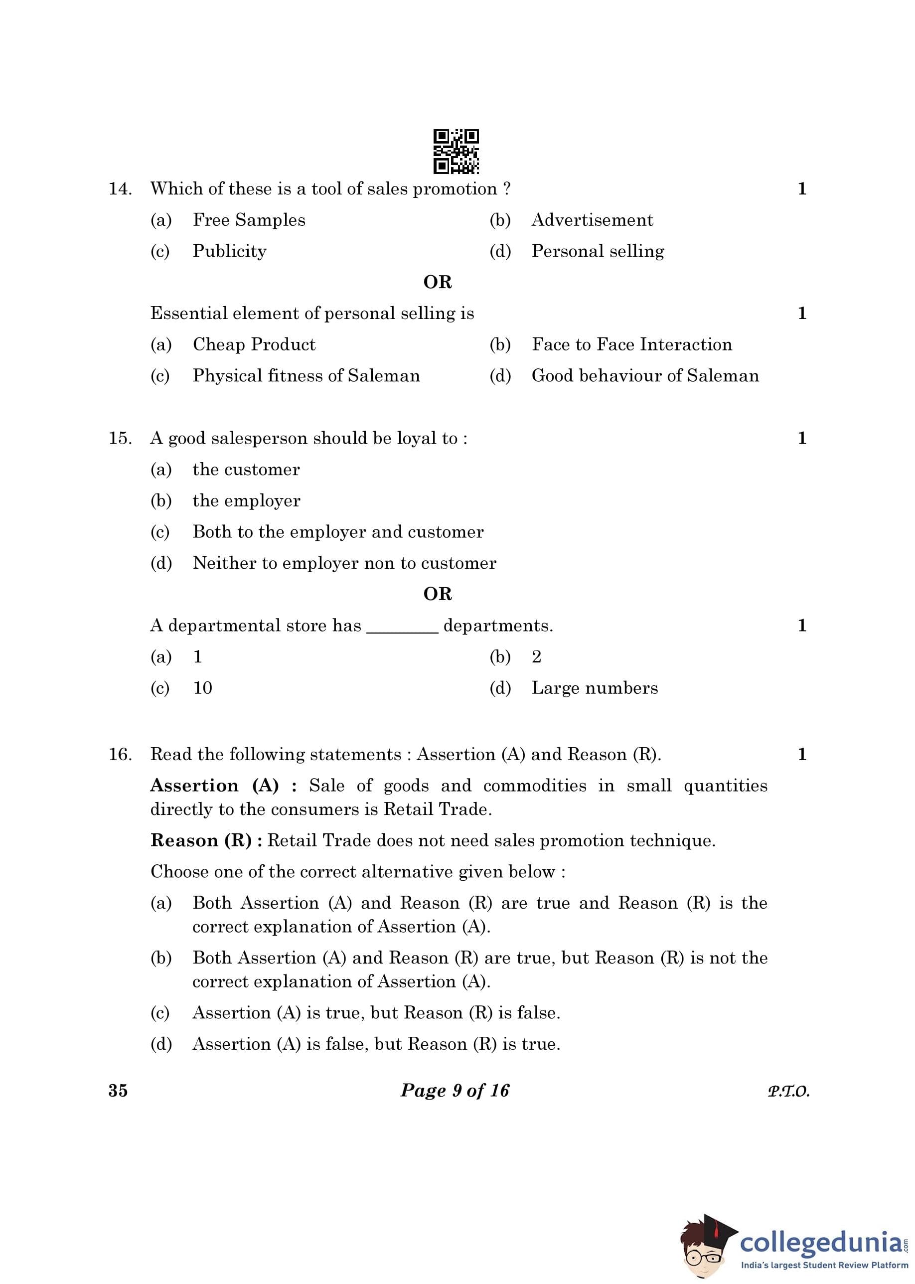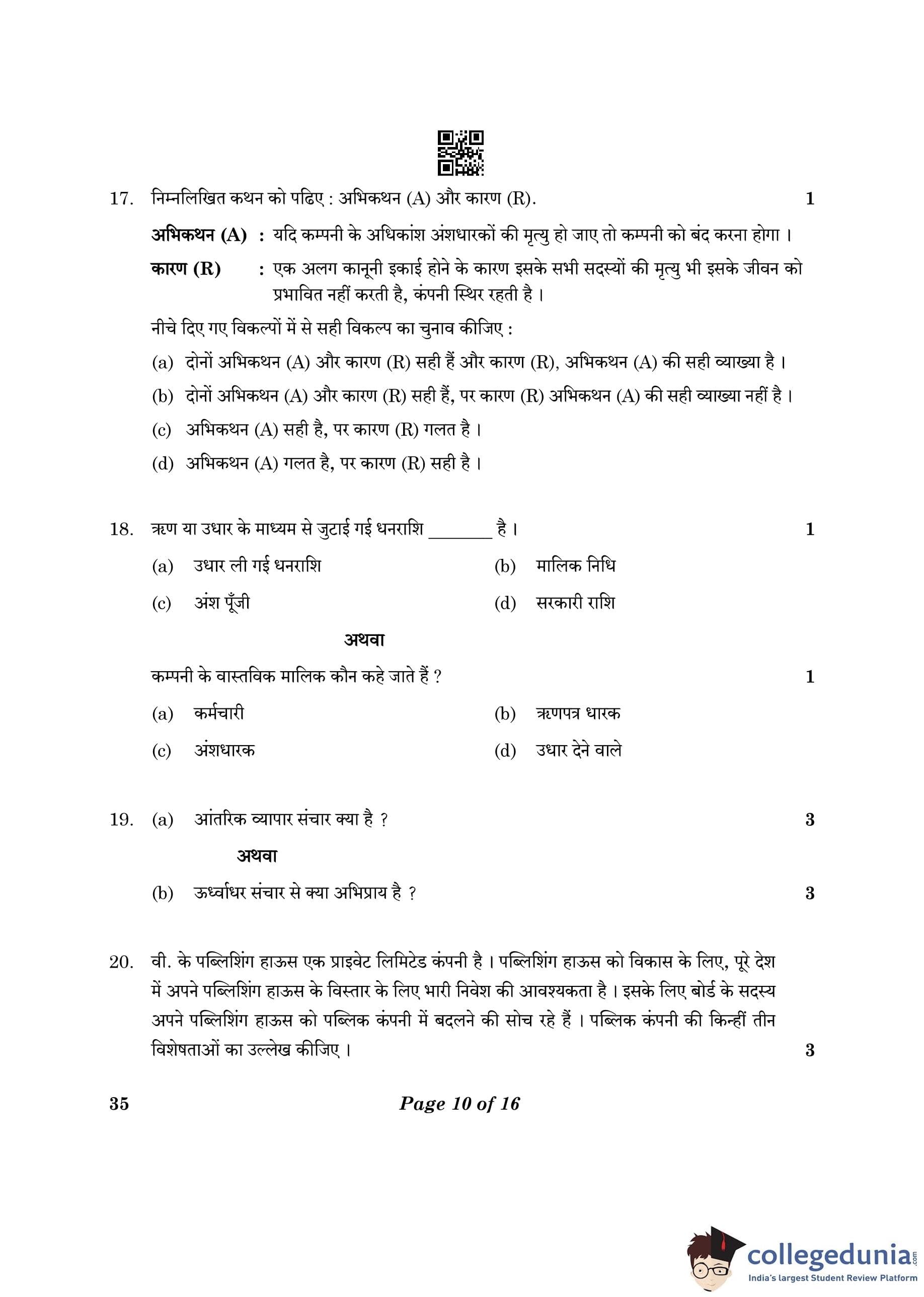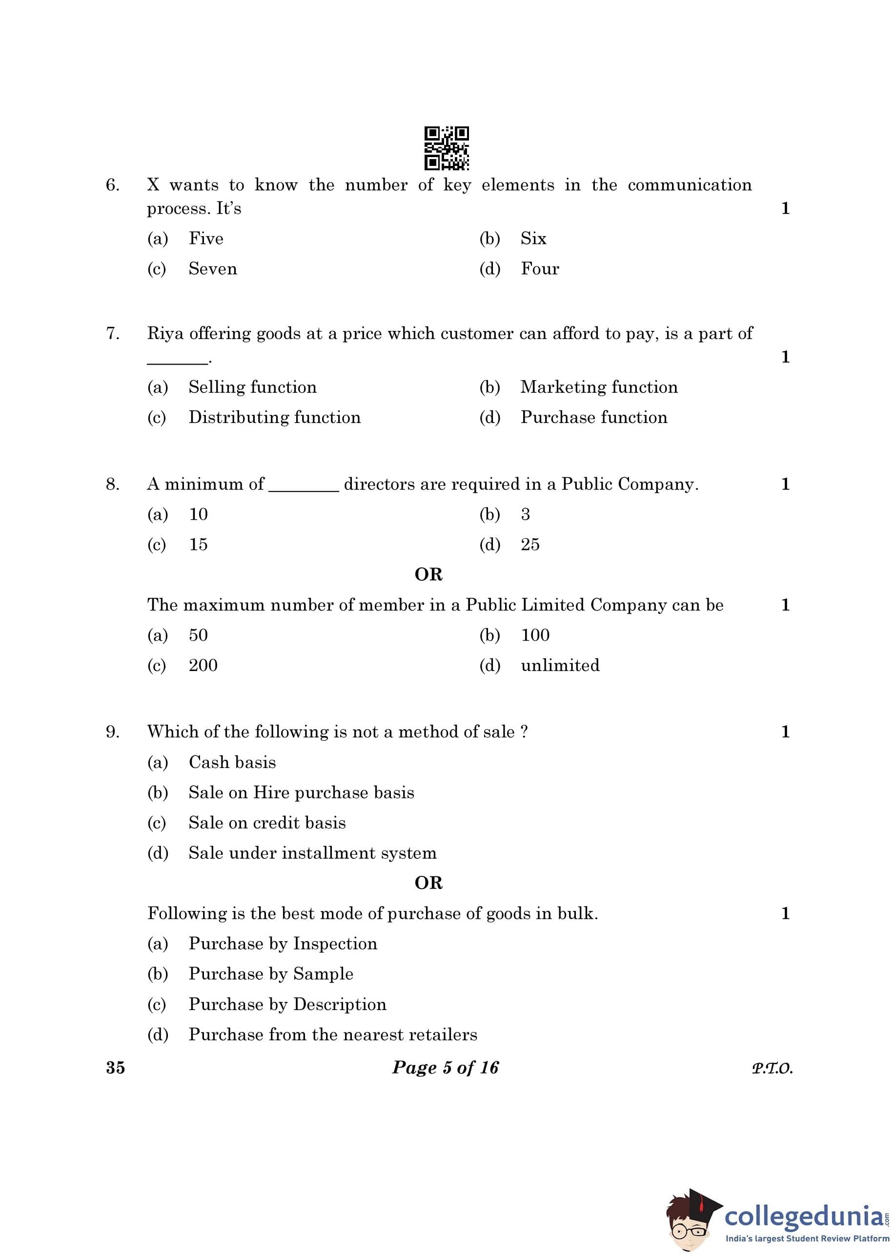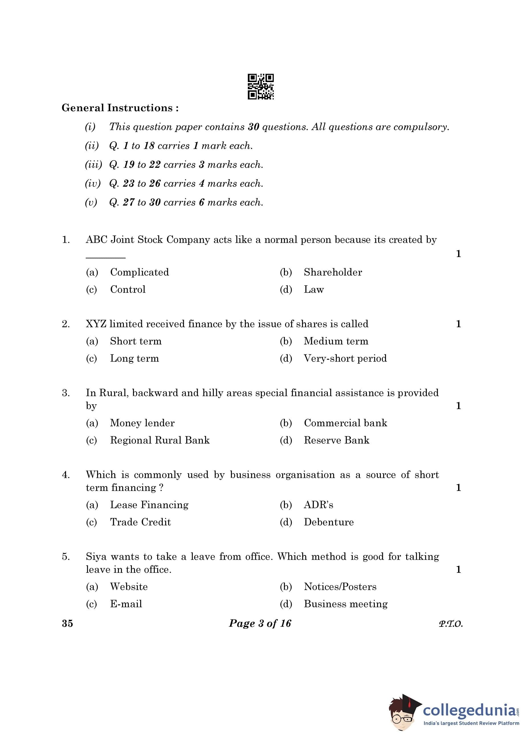 CBSE Class 10 Elements Of Business Question Paper 2023 (Set 4- 35) with Answer Key pdf is available for download here. The exam was conducted by Central Board of Secondary Education on March 9, 2023. The question paper comprised a total of 30 questions.