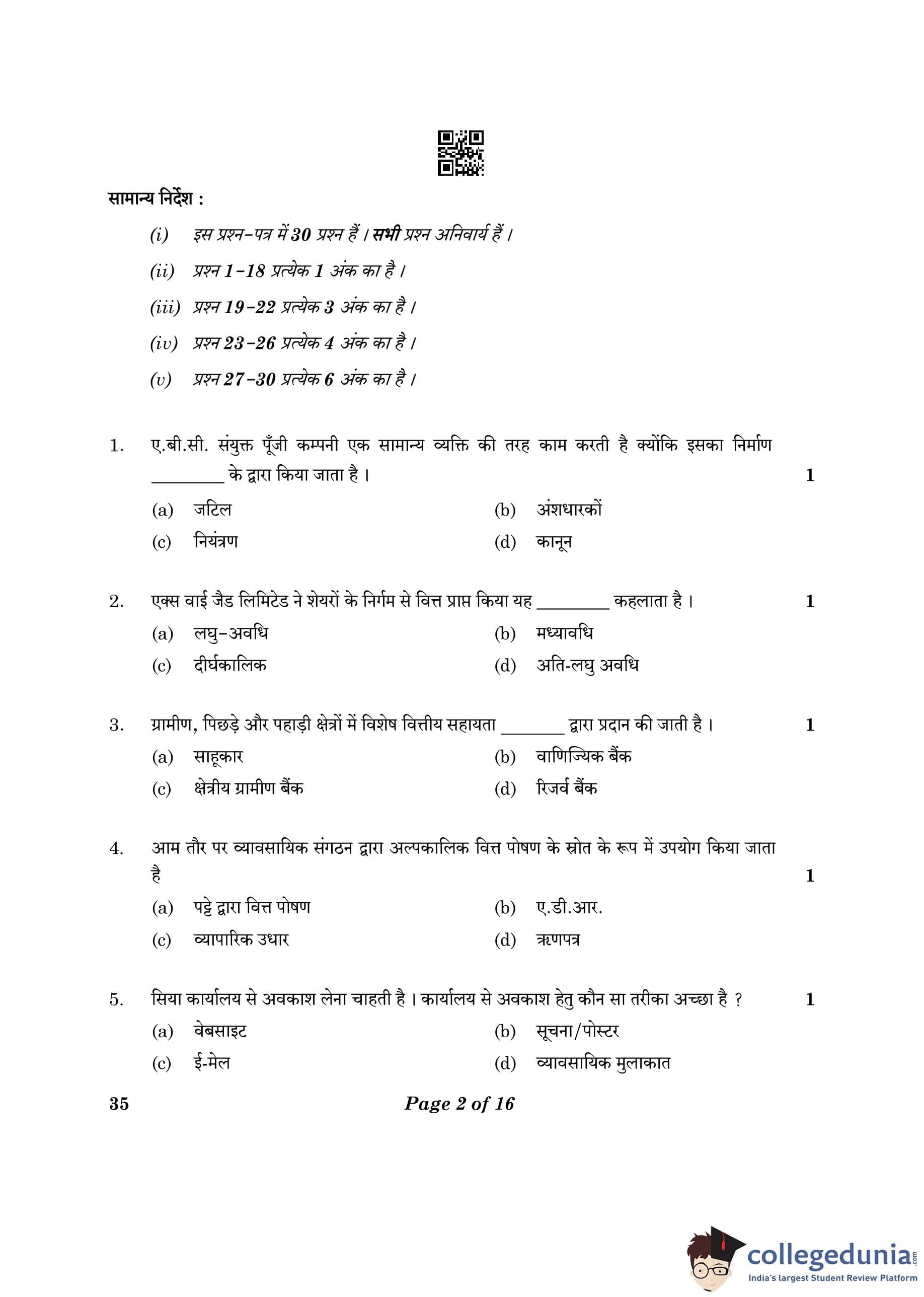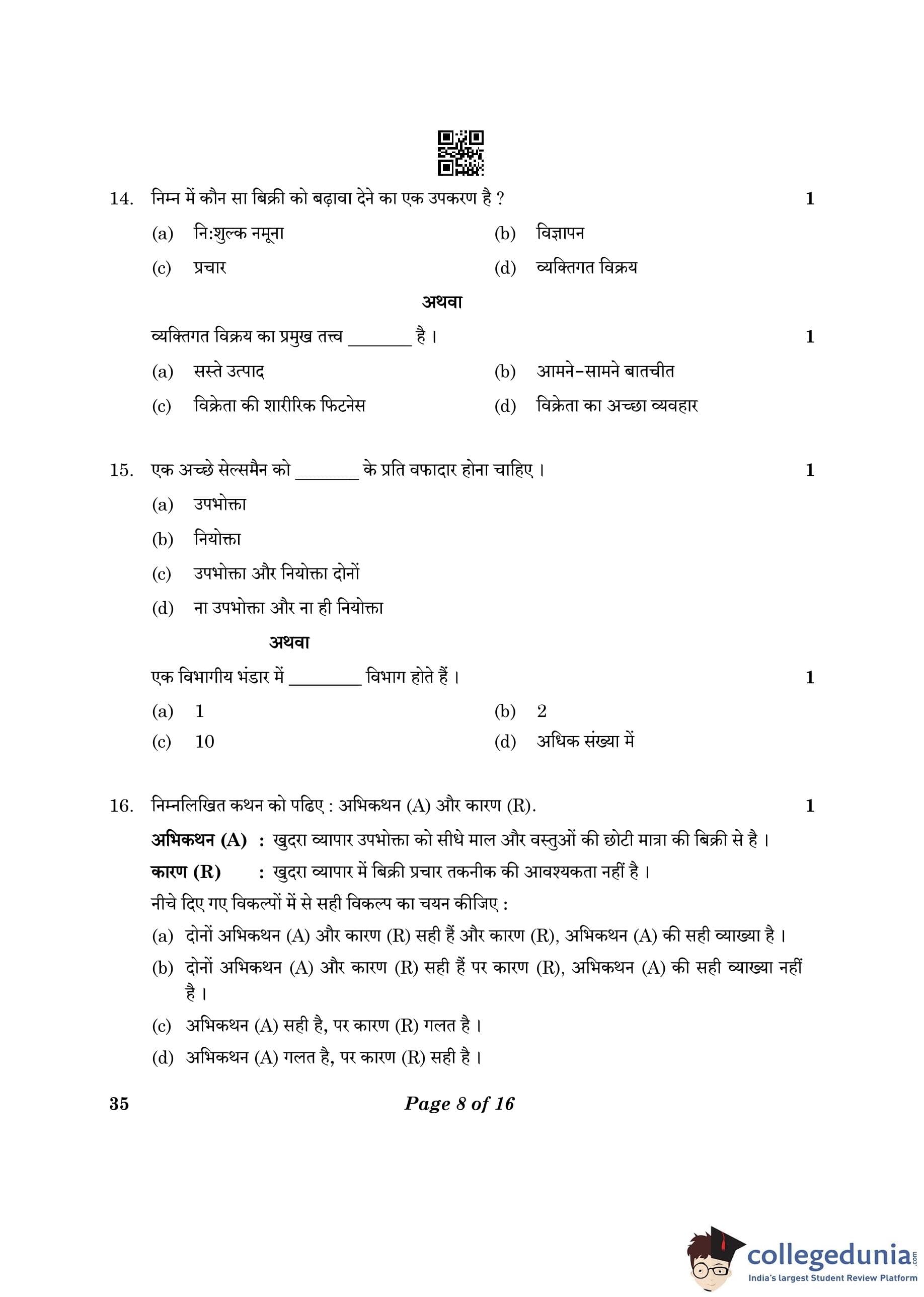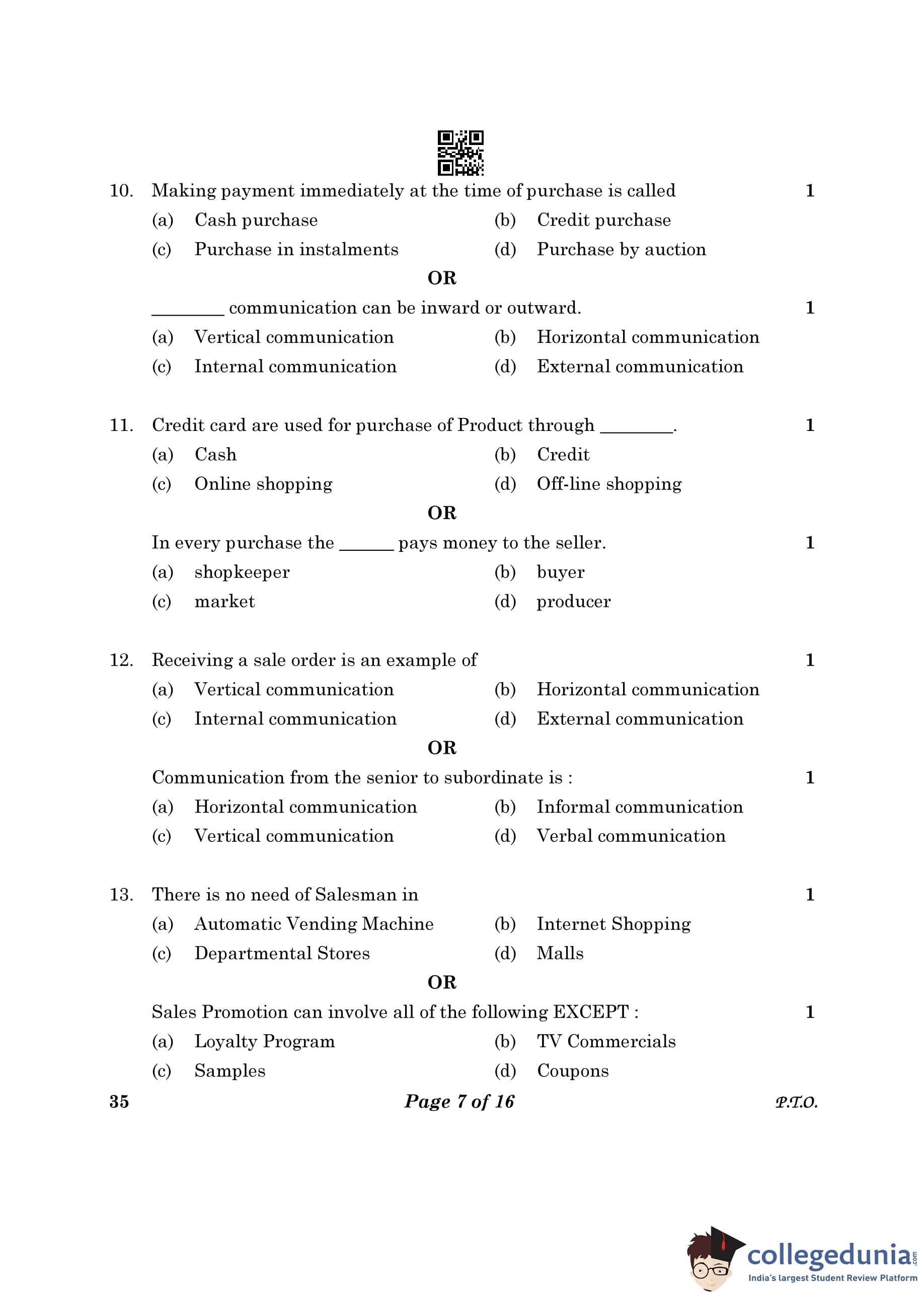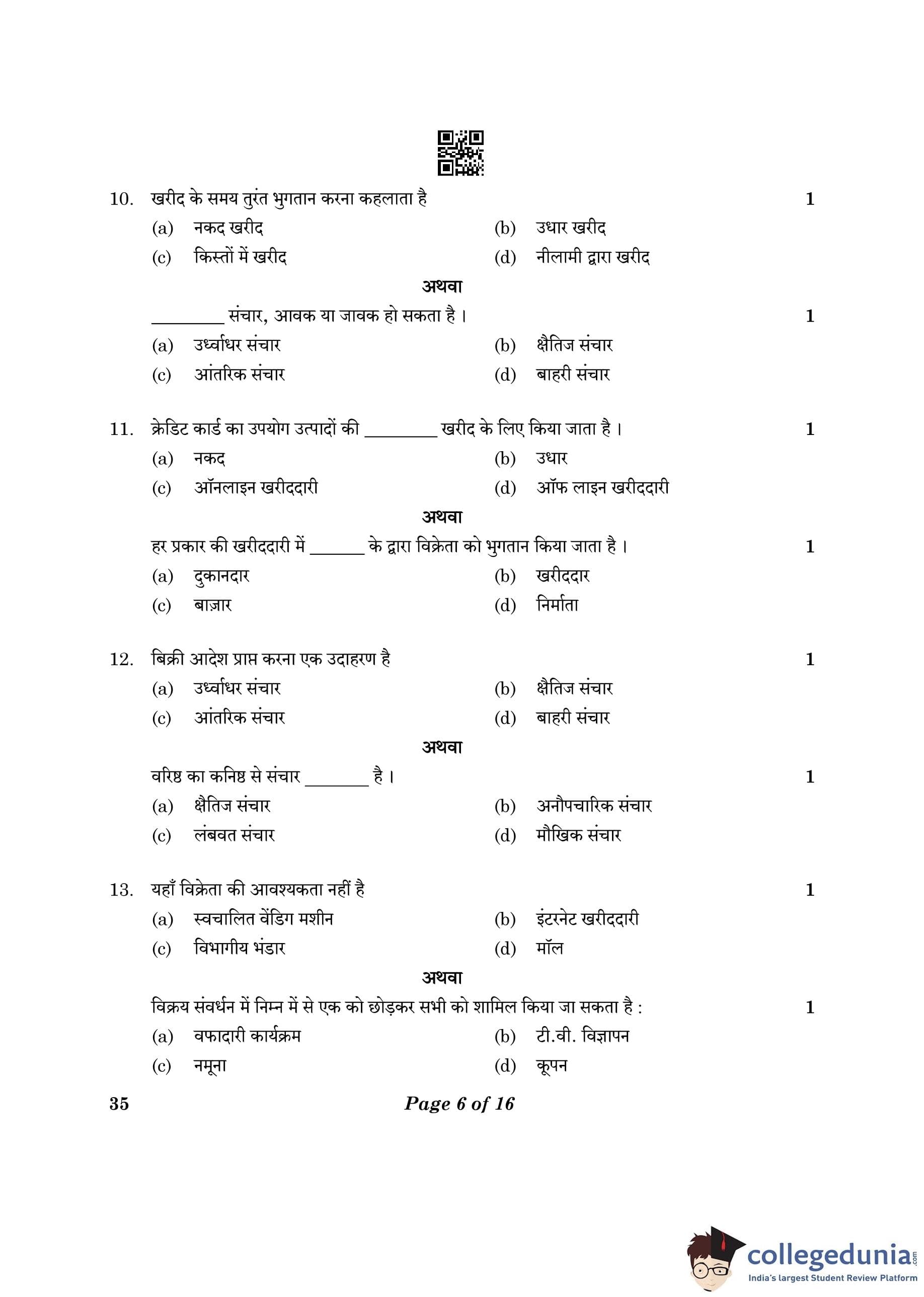 CBSE Class 10 Elements Of Business Question Paper 2023 (Set 4- 35) with Answer Key pdf is available for download here. The exam was conducted by Central Board of Secondary Education on March 9, 2023. The question paper comprised a total of 30 questions.