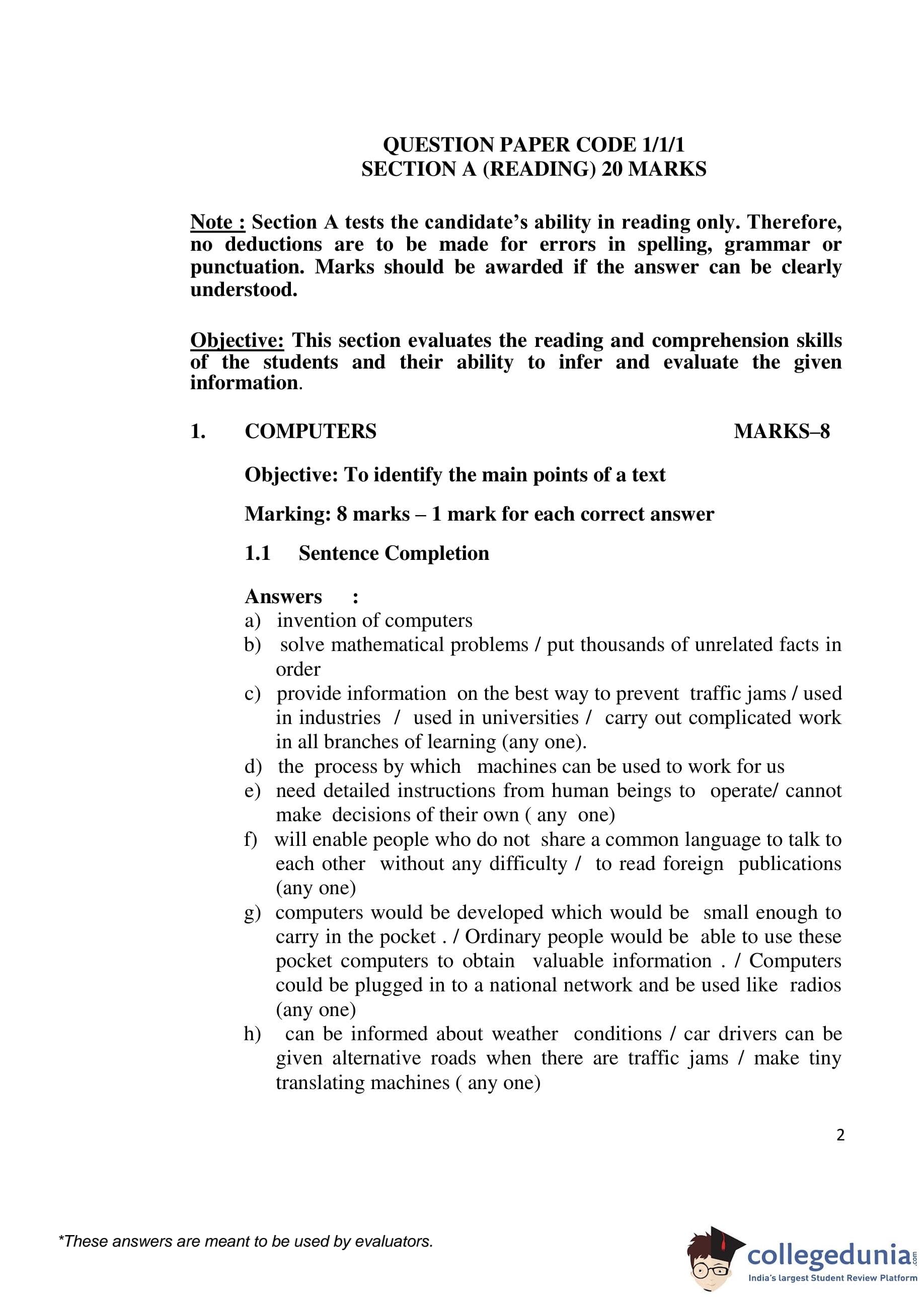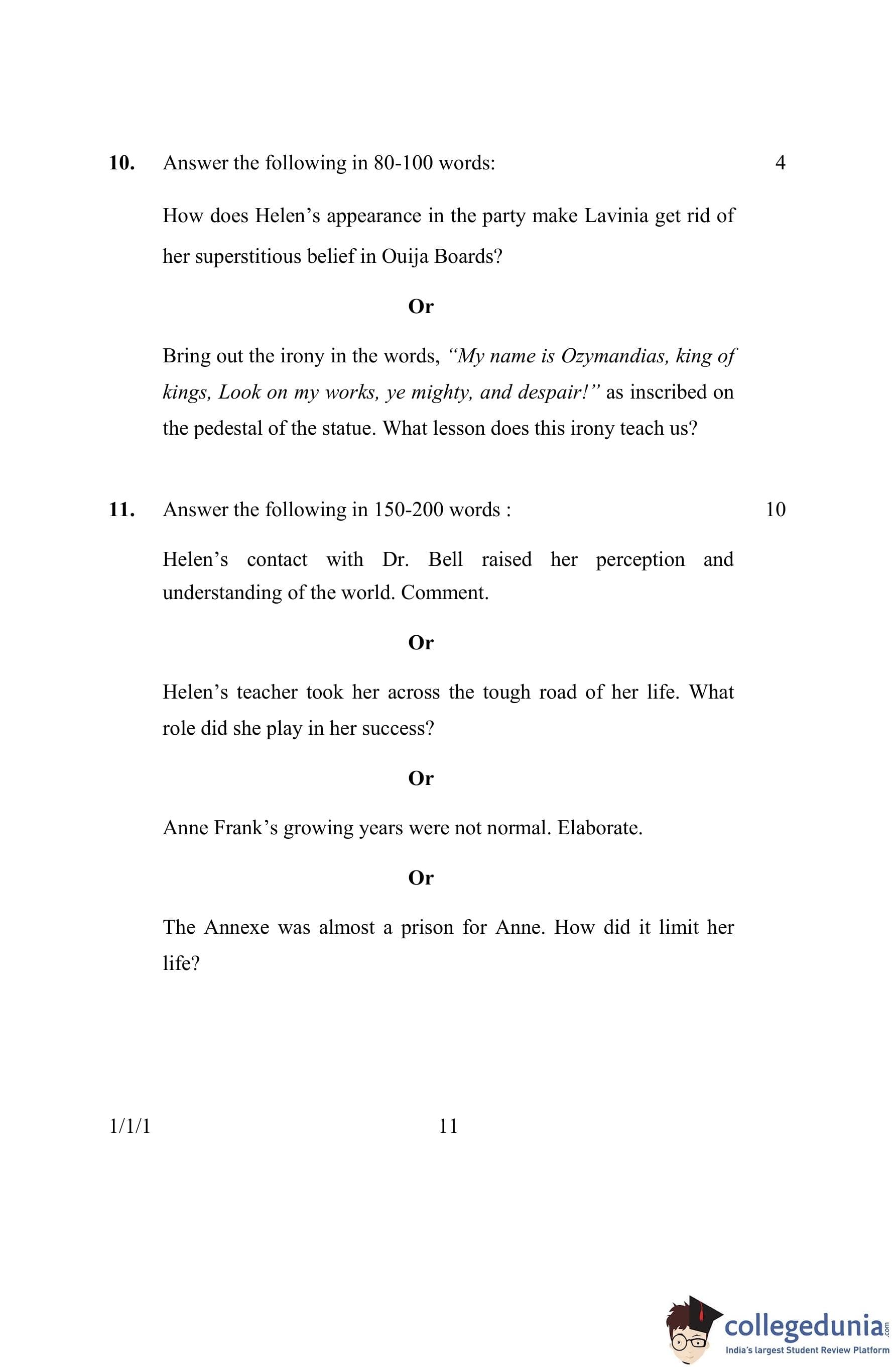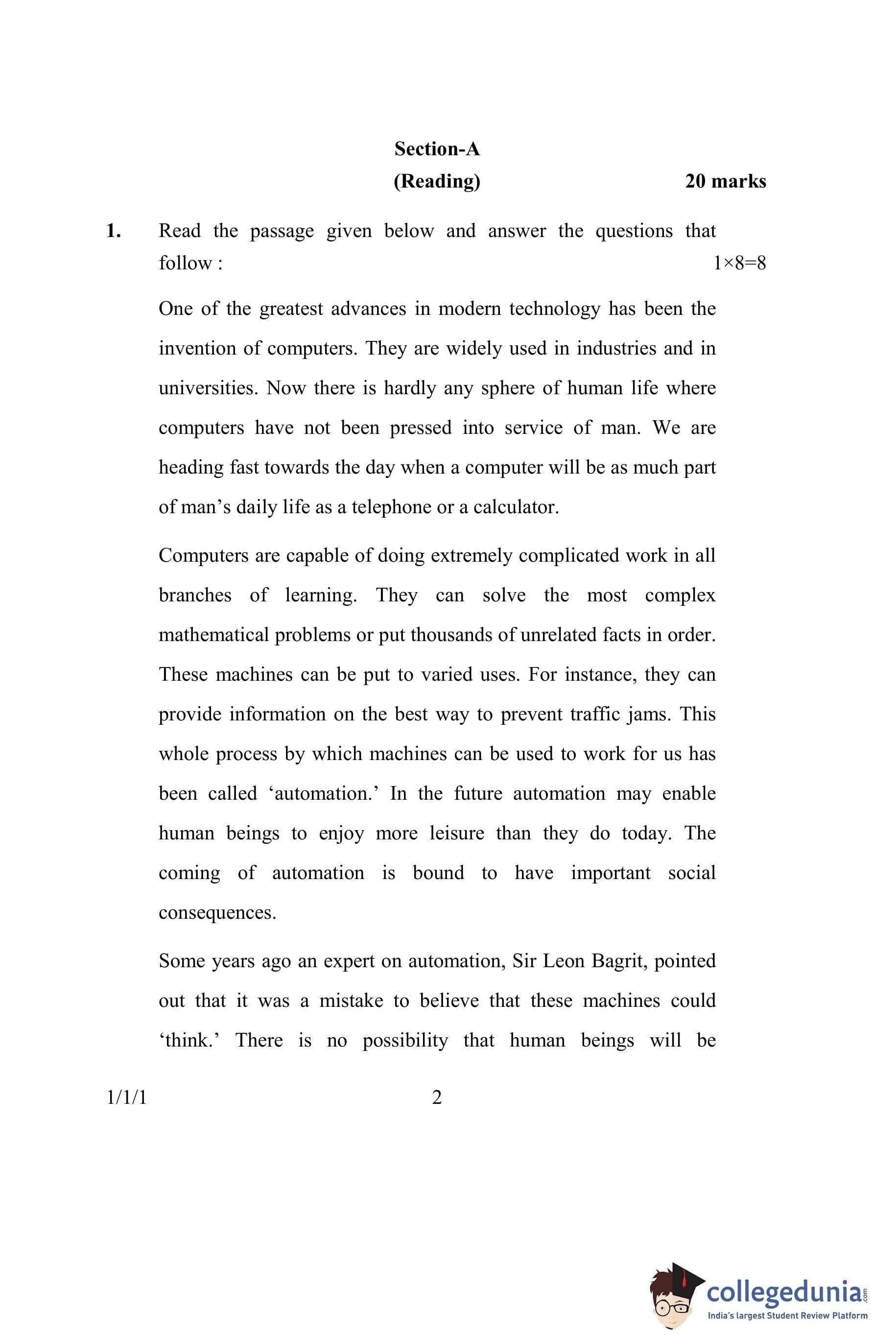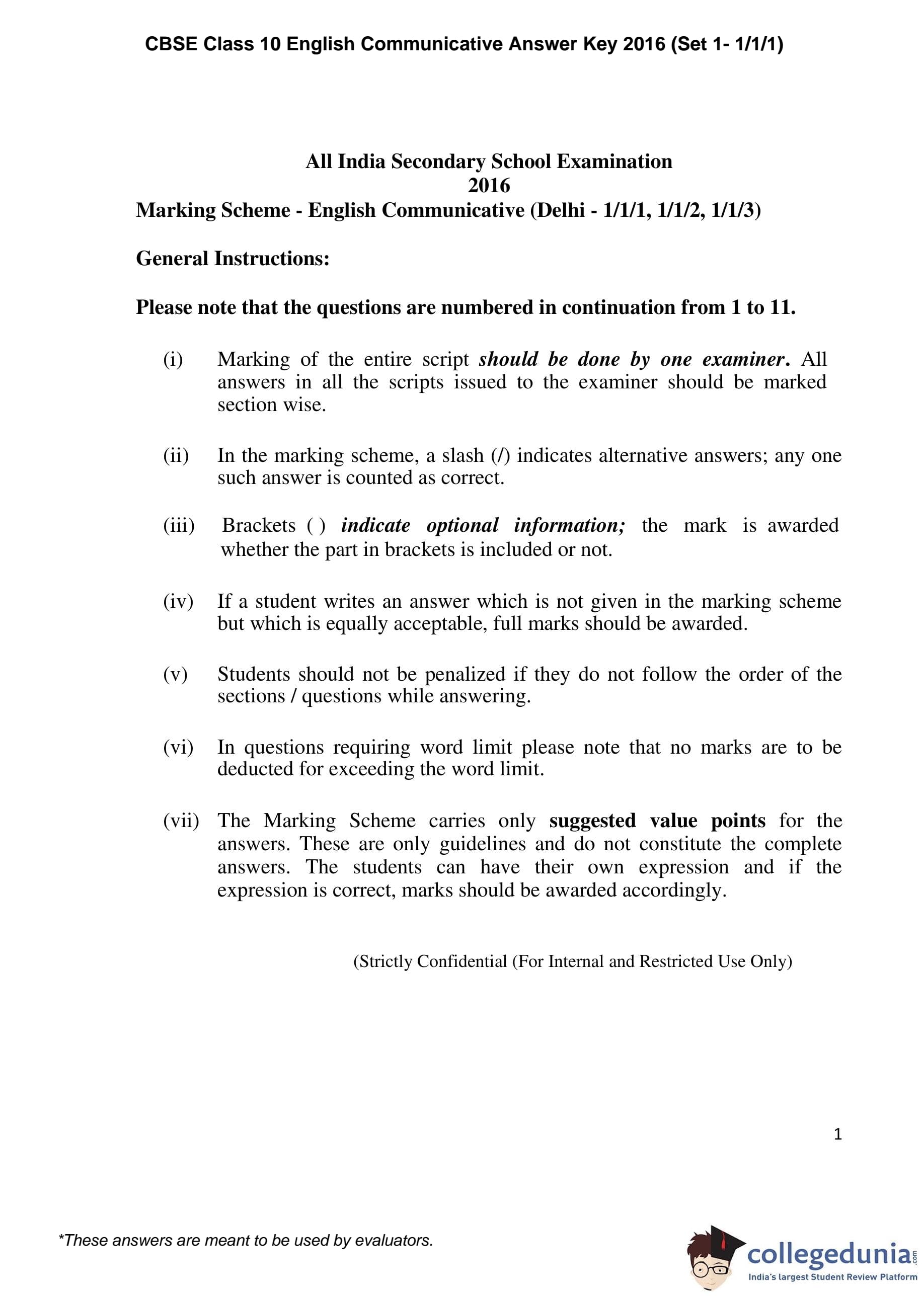 CBSE Class 10 English Communicative Set 1- 1/1/1 Question Paper 2016 with Answer Key (March 15)