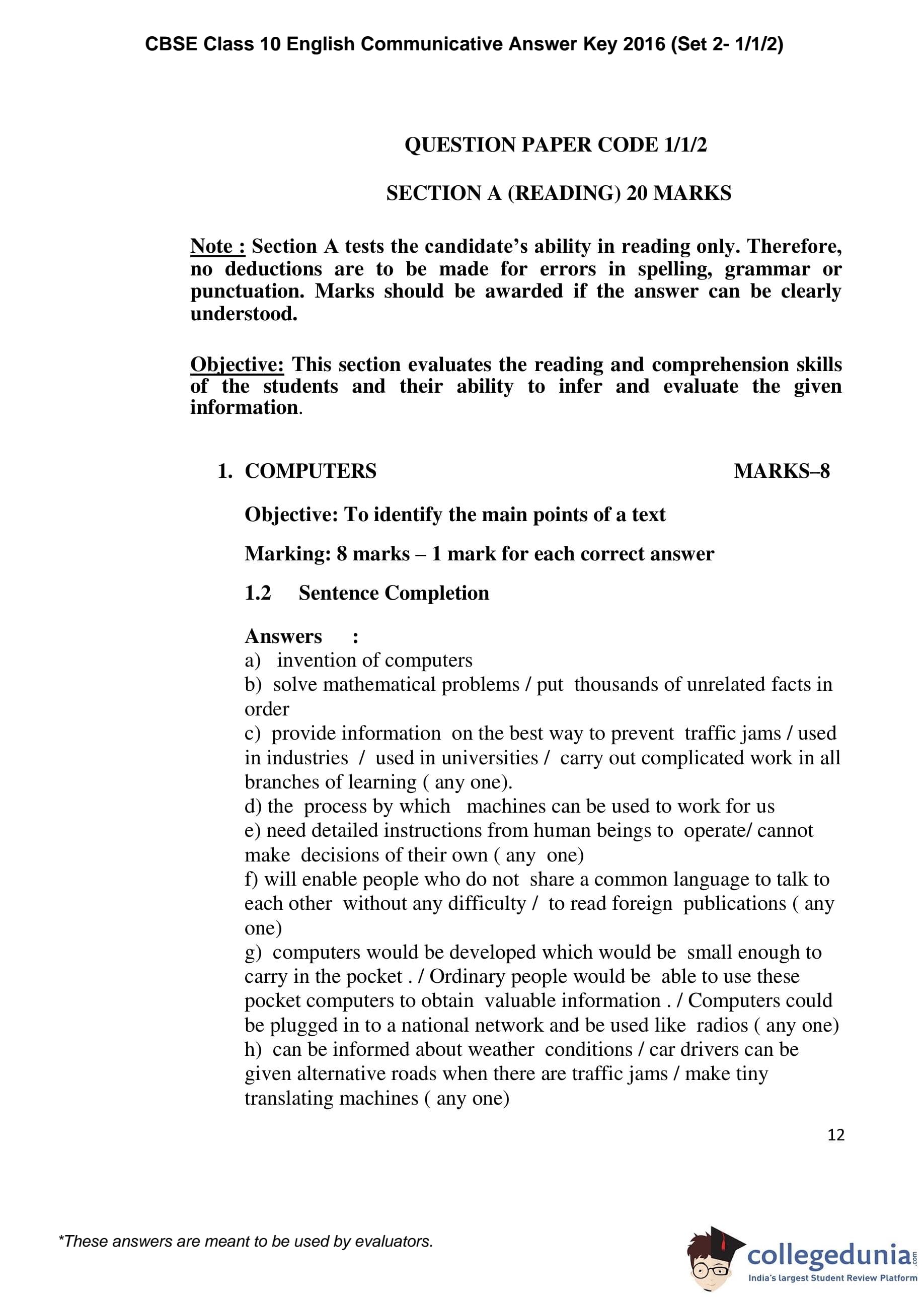| CBSE Class 10 English Communicative Question Paper 2016 PDF | CBSE Class 10 English Communicative Answer Key 2016 PDF | Detailed Solutions |