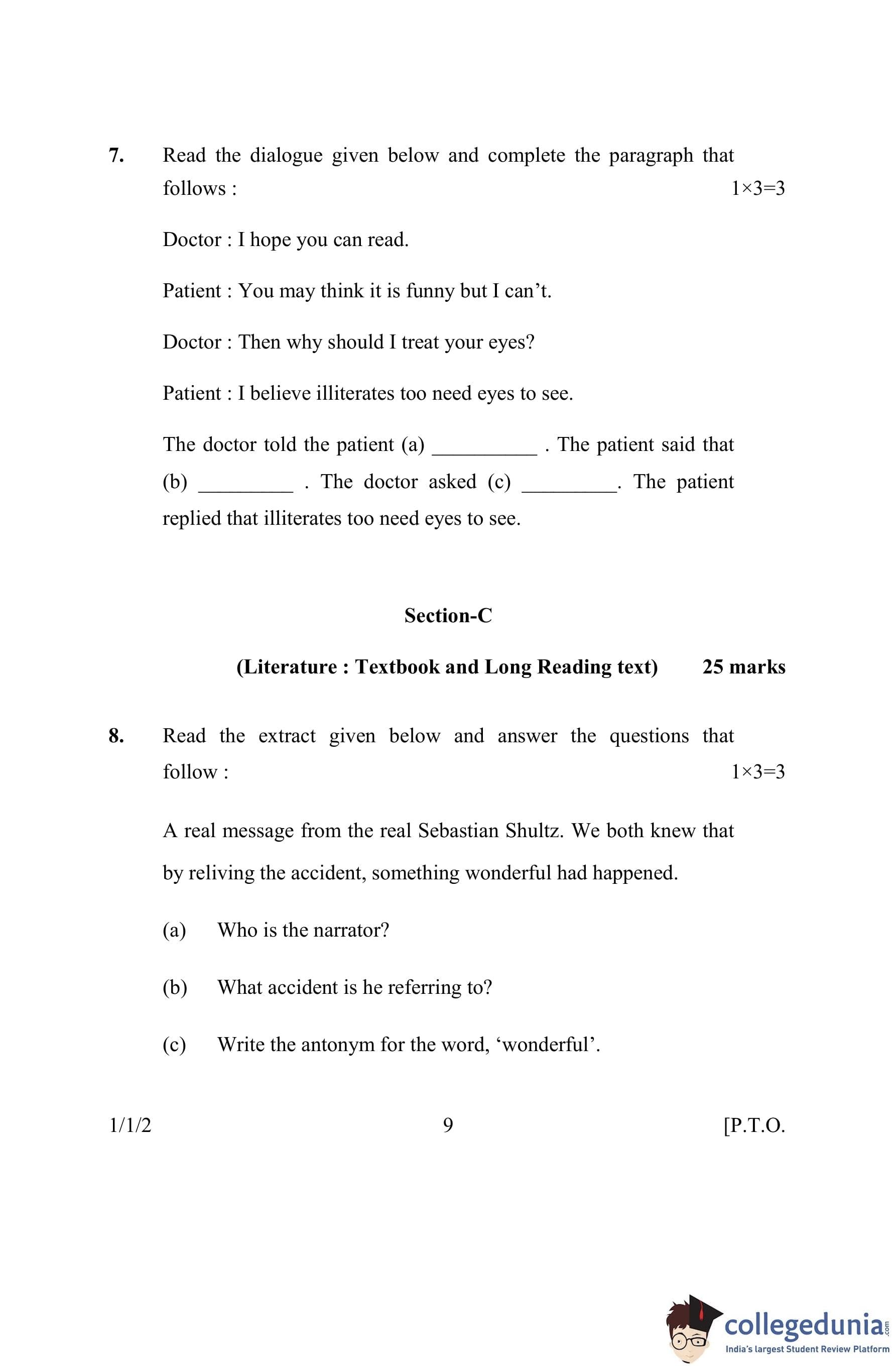 CBSE Class 10 English Communicative Question Paper 2016 with Answer Key Set 2- 1/1/2 is available for download. The exam was conducted by the Central Board of Secondary Education on March 15, 2016 in the Morning Session 10:30 AM to 1:30 PM. The medium of paper was English. The question paper comprised a total of 11 questions divided among 3 sections.