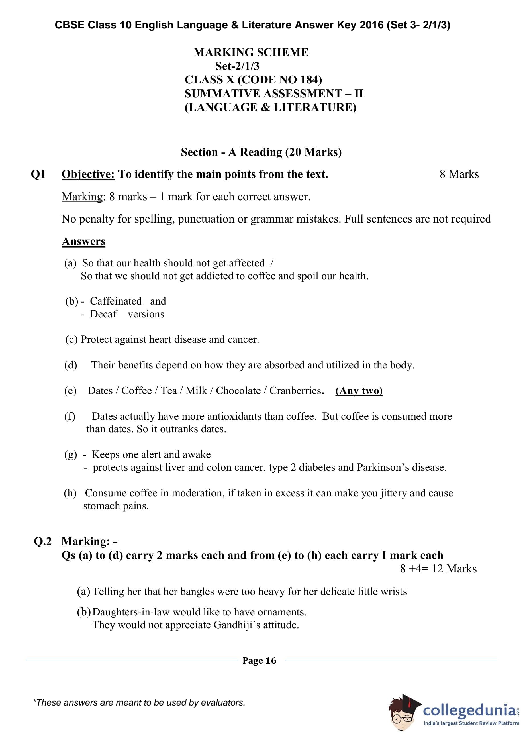 | CBSE Class 10 English Language & Literature Question Paper 2016 PDF | CBSE Class 10 English Language & Literature Answer Key 2016 PDF | Detailed Solutions |