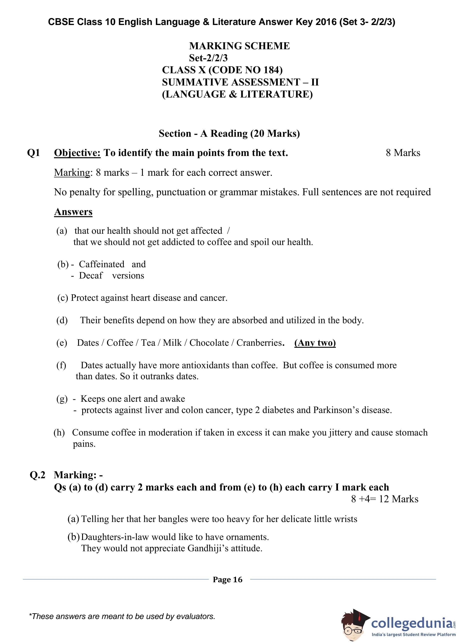 | CBSE Class 10 English Language & Literature Question Paper 2016 PDF | CBSE Class 10 English Language & Literature Answer Key 2016 PDF | Detailed Solutions |