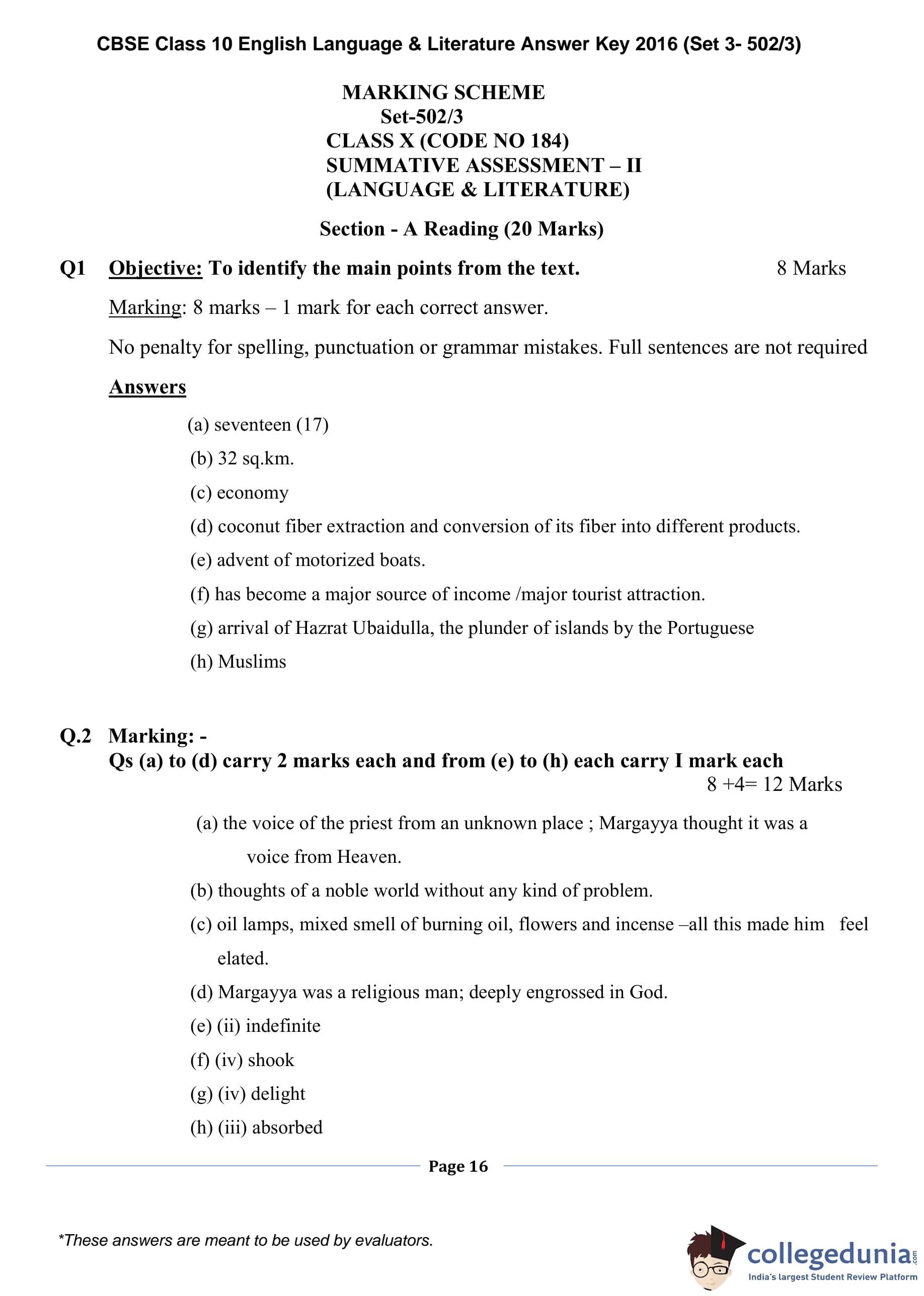 | CBSE Class 10 English Language & Literature Question Paper 2016 PDF | CBSE Class 10 English Language & Literature Answer Key 2016 PDF | Detailed Solutions |
