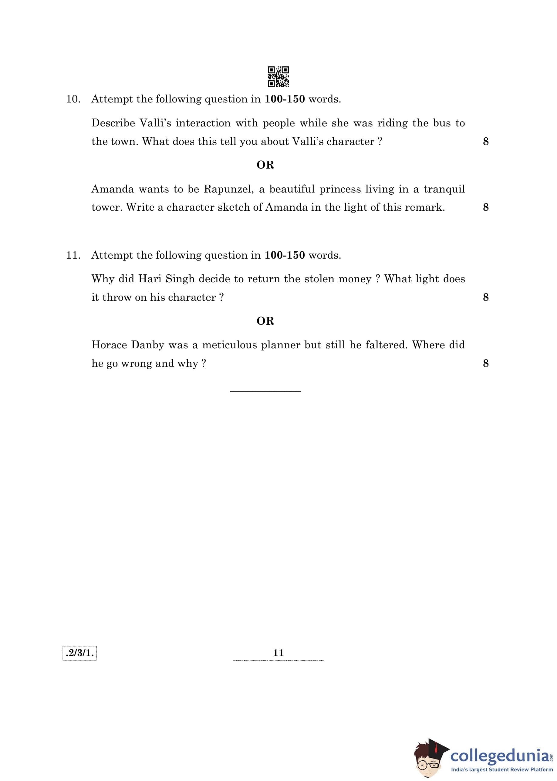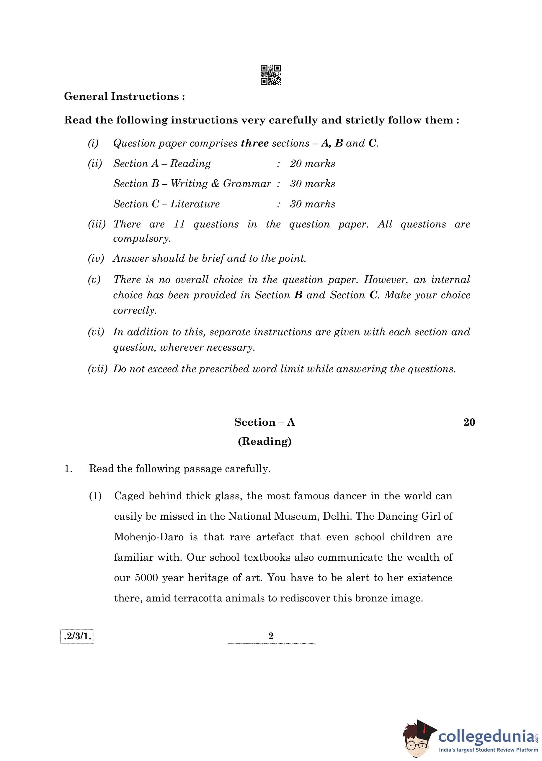 CBSE Class 10 English Language & Literature Question Paper 2020 with Answer Key Set 1 - 2/3/1 is available for download. The exam was conducted by the Central Board of Secondary Education on February 26, 2020 in the Morning Session 10:30 AM to 1:30 PM. The medium of paper was English. The question paper comprised a total of 11 questions divided among 3 sections.