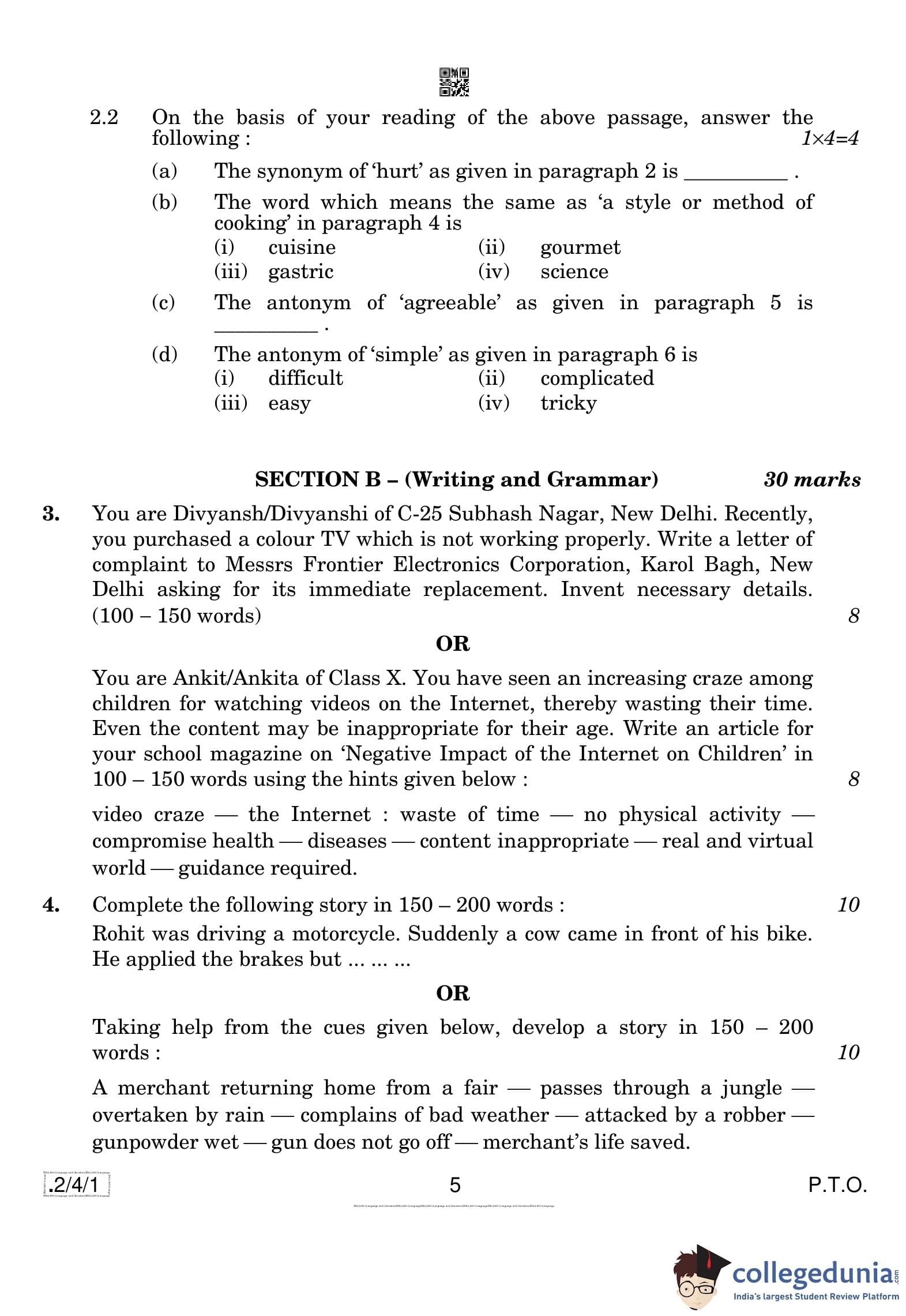 CBSE Class 10 English Language & Literature Set 1 - 2/4/1 Question Paper 2020 with Answer Key (February 26)