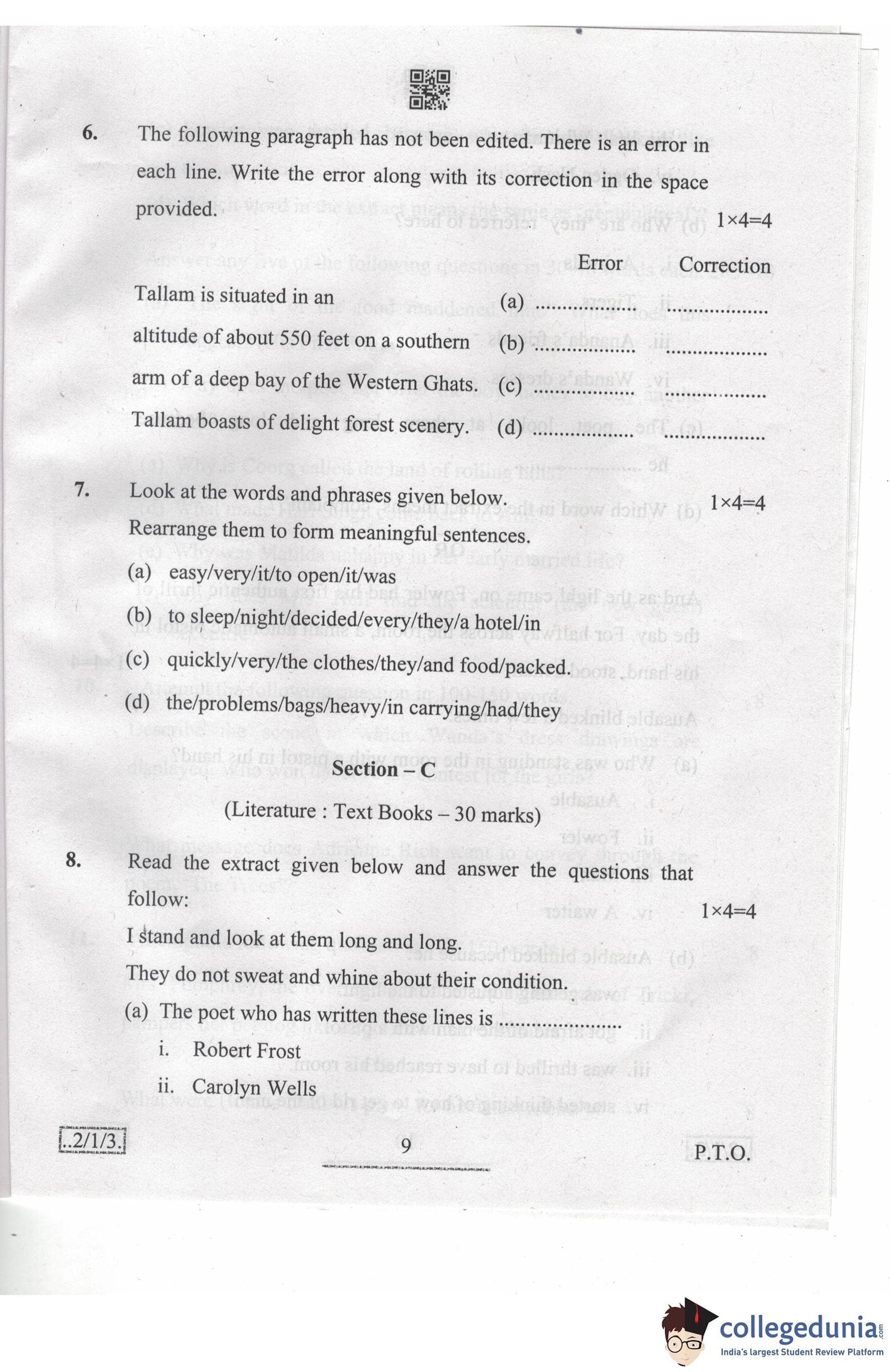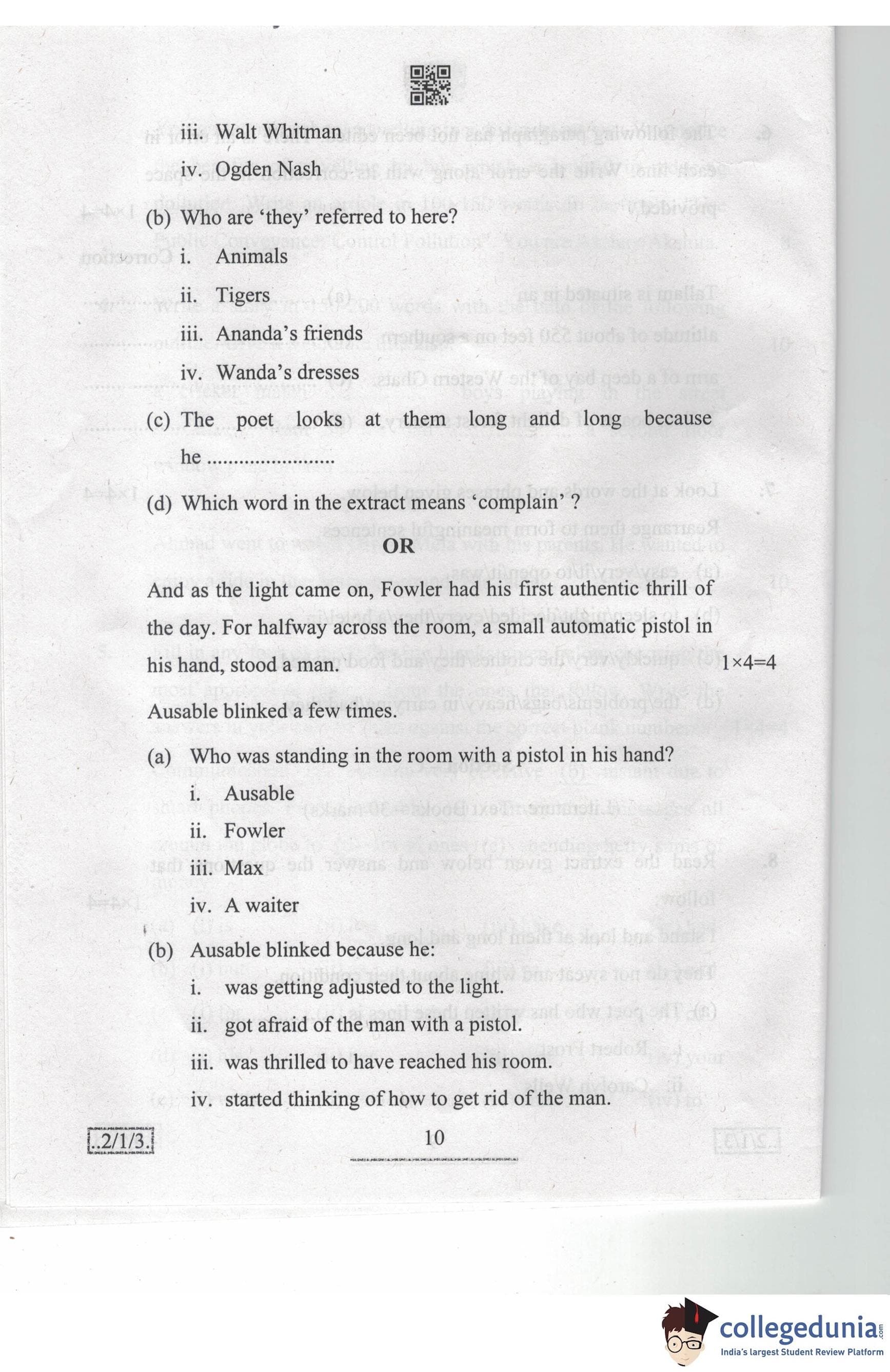 CBSE Class 10 English Language & Literature Set 3 - 2/1/3 Question Paper 2020 with Answer Key (February 26)