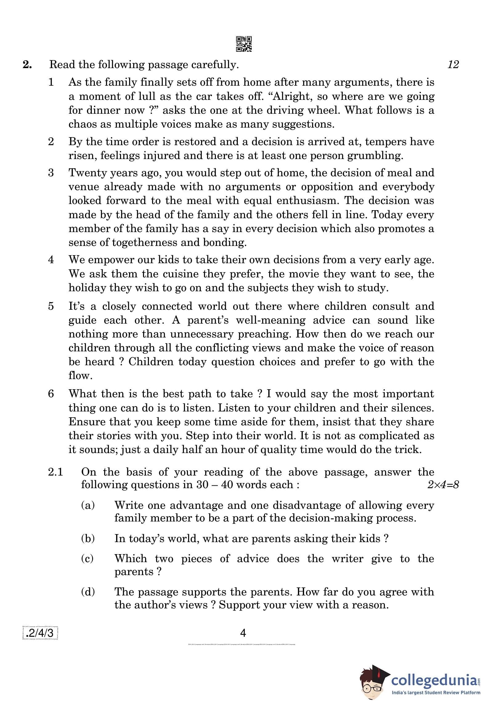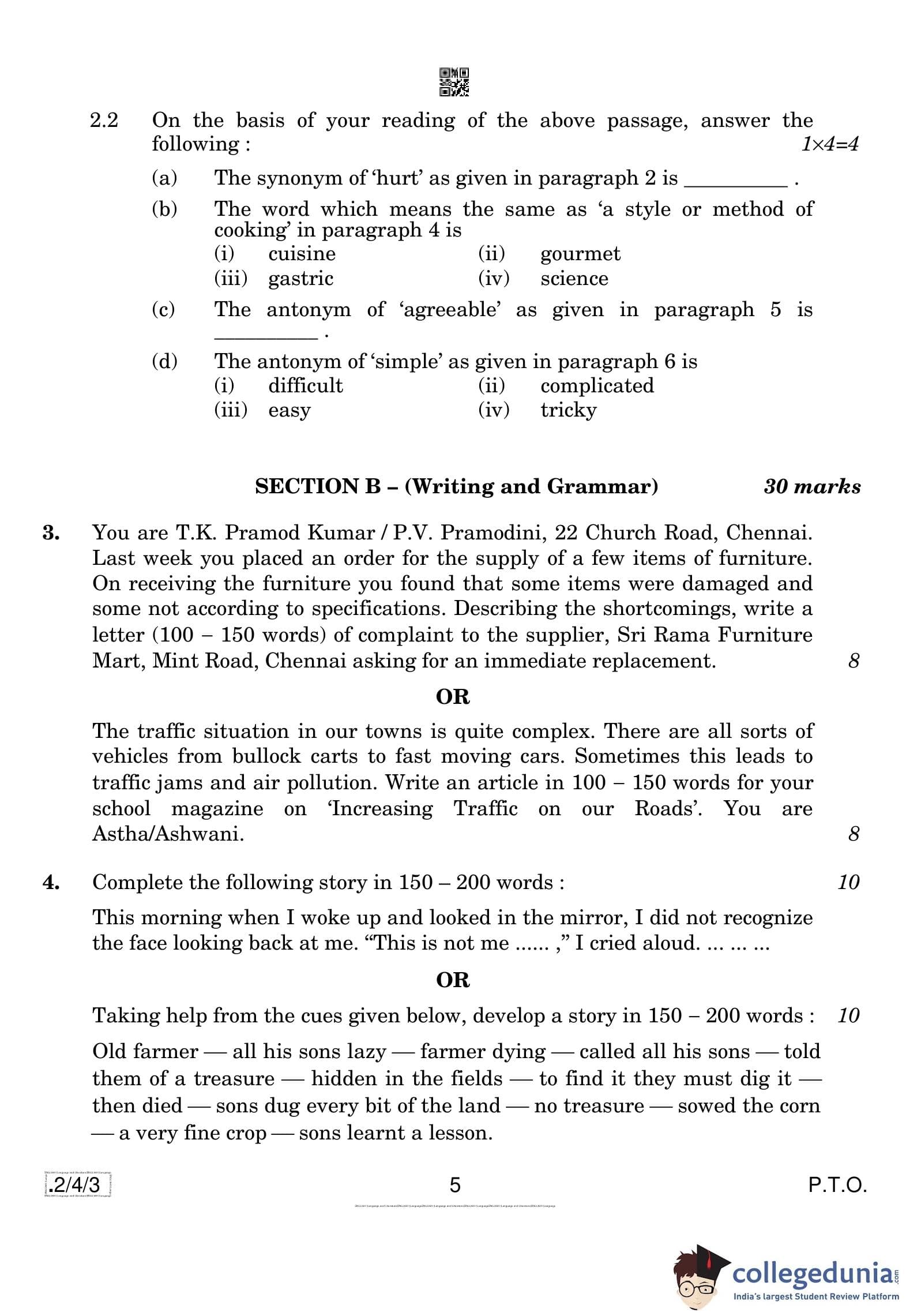 CBSE Class 10 English Language & Literature Question Paper 2020 with Answer Key Set 3 - 2/4/3 is available for download. The exam was conducted by the Central Board of Secondary Education on February 26, 2020 in the Morning Session 10:30 AM to 1:30 PM. The medium of paper was English. The question paper comprised a total of 11 questions divided among 3 sections.