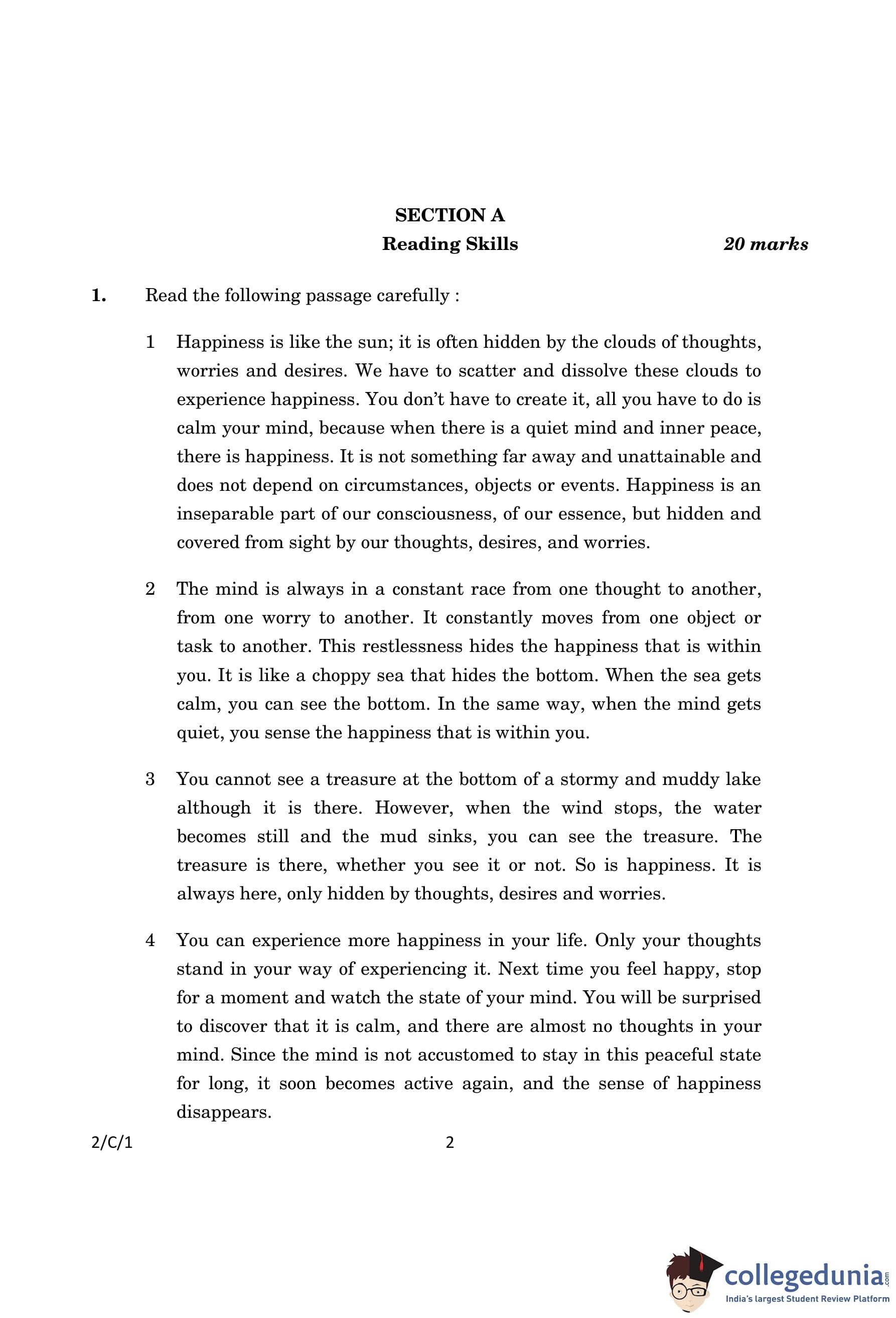CBSE Class 10 English Literature (Set 1- 2/C/1) Compartment Question Paper 2023 with Answer Key