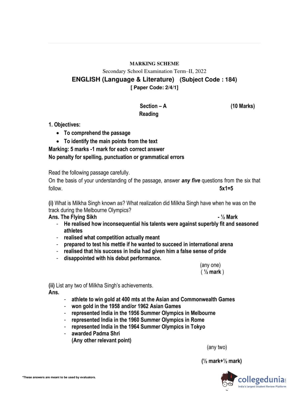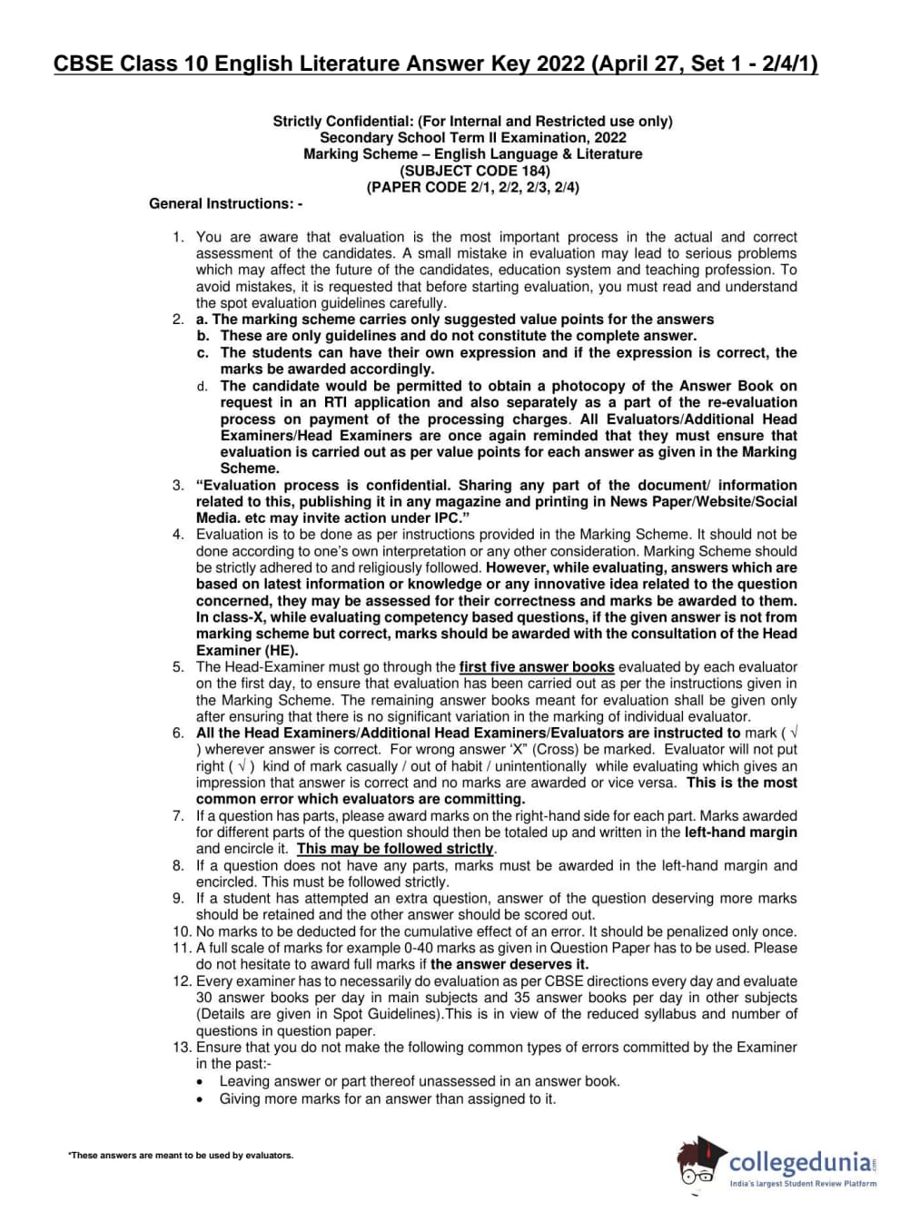 | CBSE Class 10 English Literature Question Paper 2022 PDF | CBSE Class 10 English Literature Answer Key 2022 PDF | Detailed Solutions |